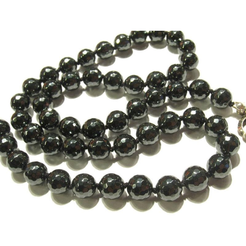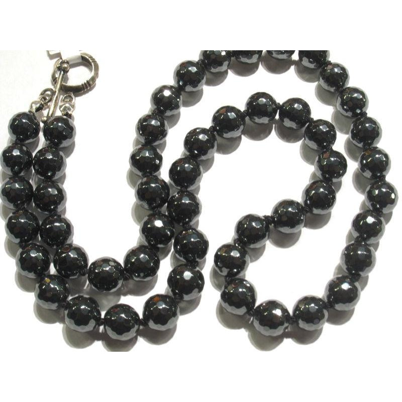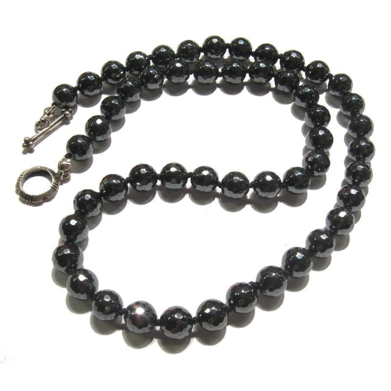 Faceted Hematite Knotted Necklace with Sterling Silver Toggle Clasp