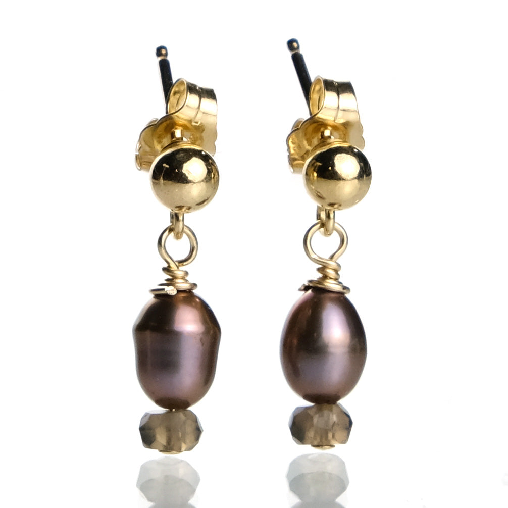 Fresh Water Pearl and Smokey Quartz with Gold Plated Ball Post Earrings