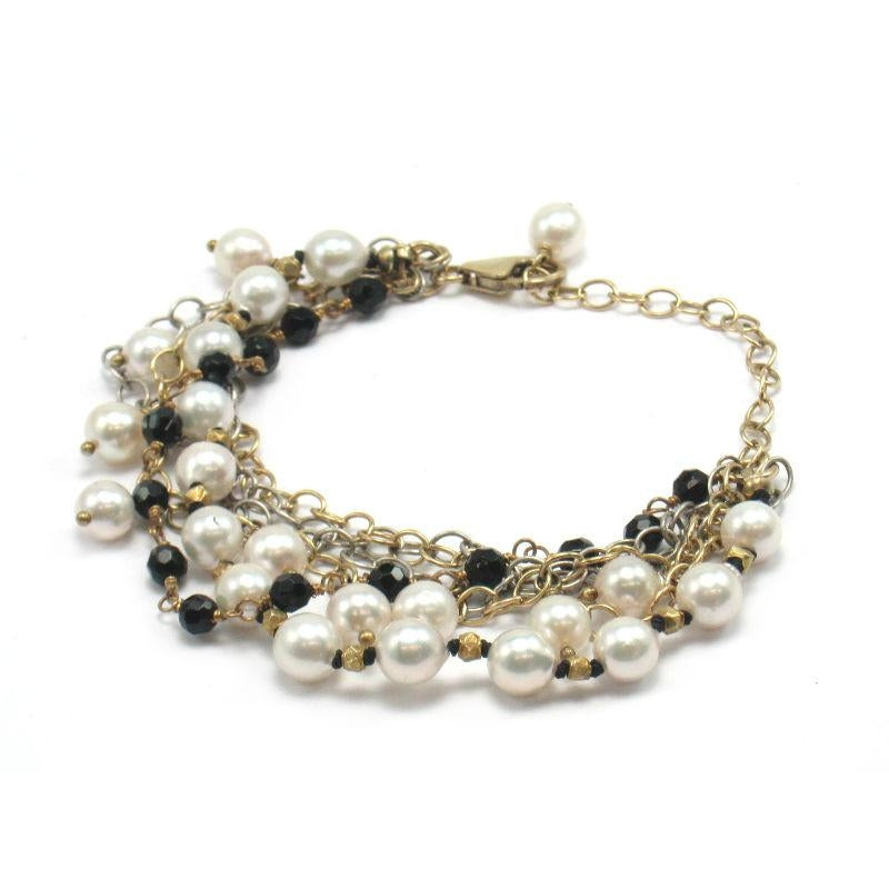 Fresh Water Pearl and Onyx Bracelet with Gold Plate Trigger Clasp