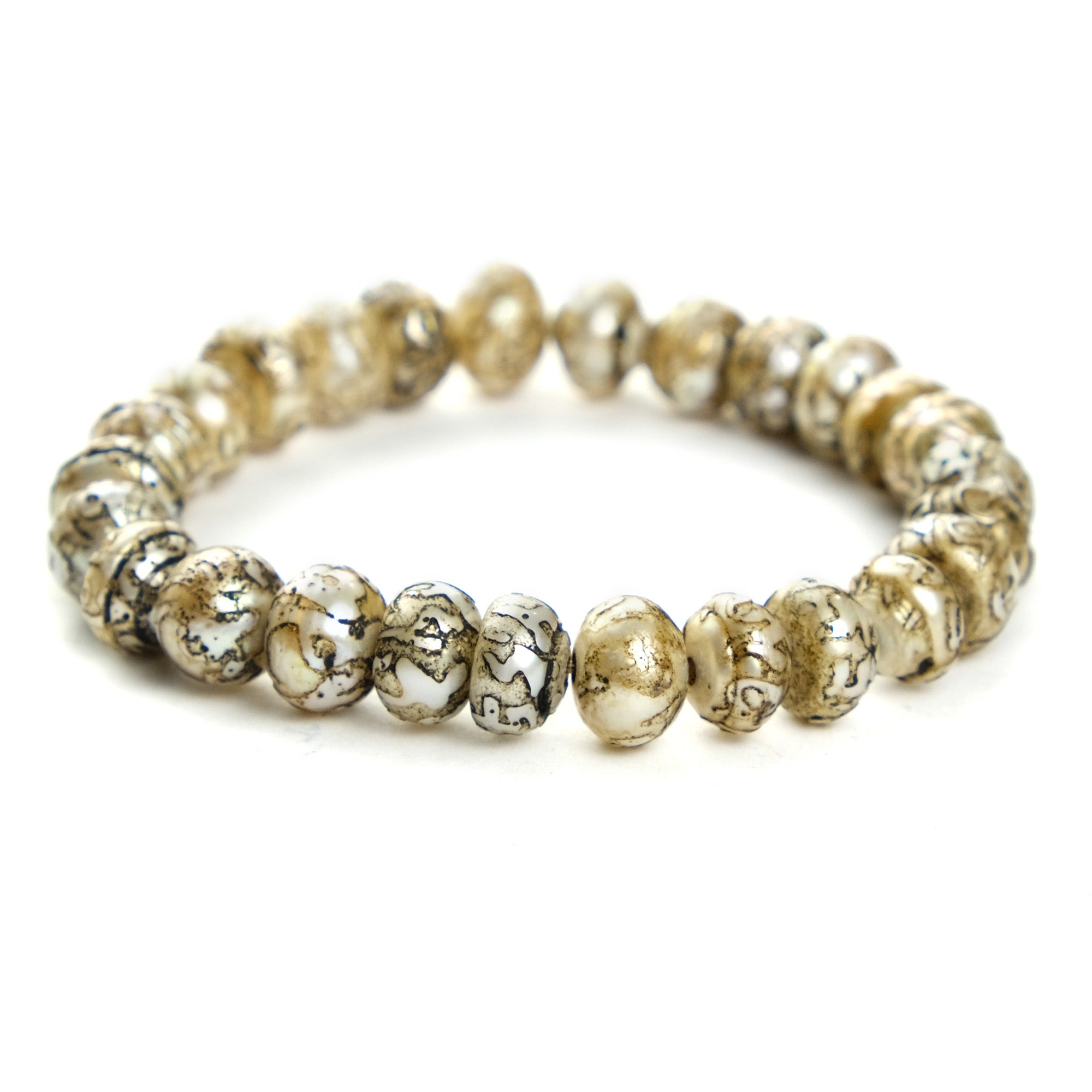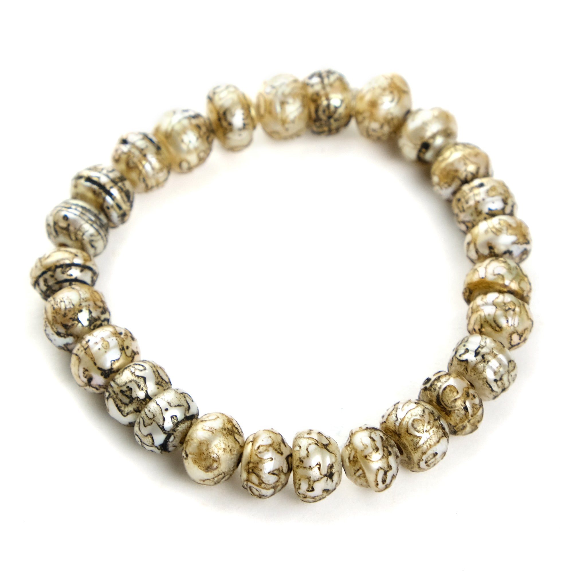 Fresh Water Pearls with Etched Om Mani Padme Om Mantra Stretch Bracelet