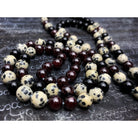 - Garnet & Onyx, 8mm ; Dalmatian Jasper, 8.5mm