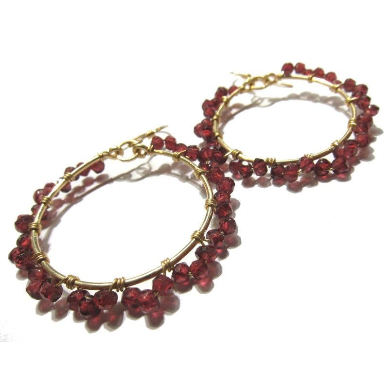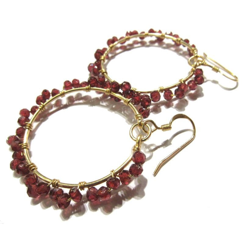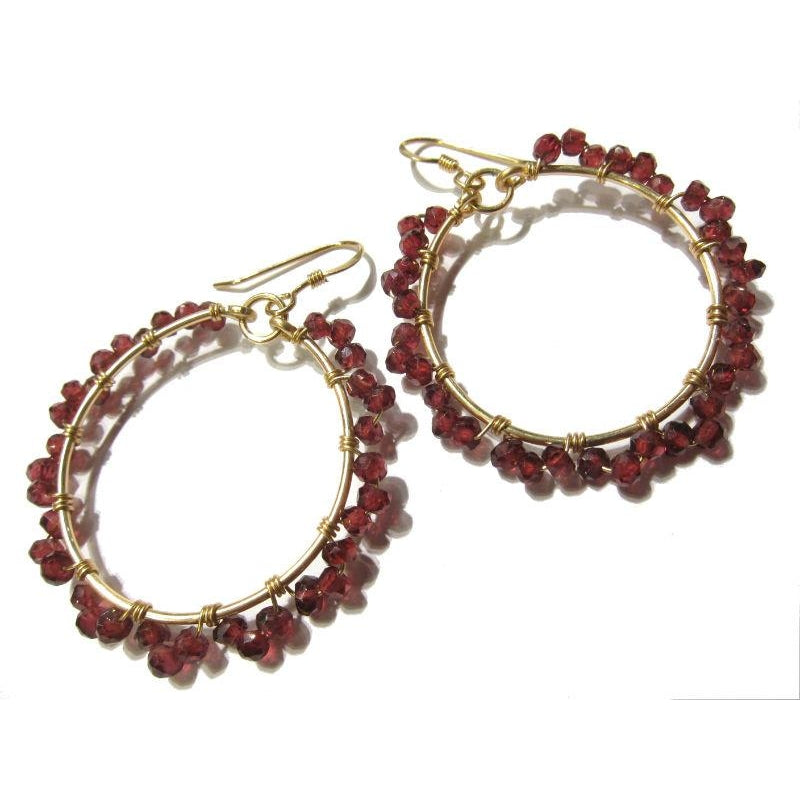 • Faceted Garnet Wrapped Gold Filled Hoops
