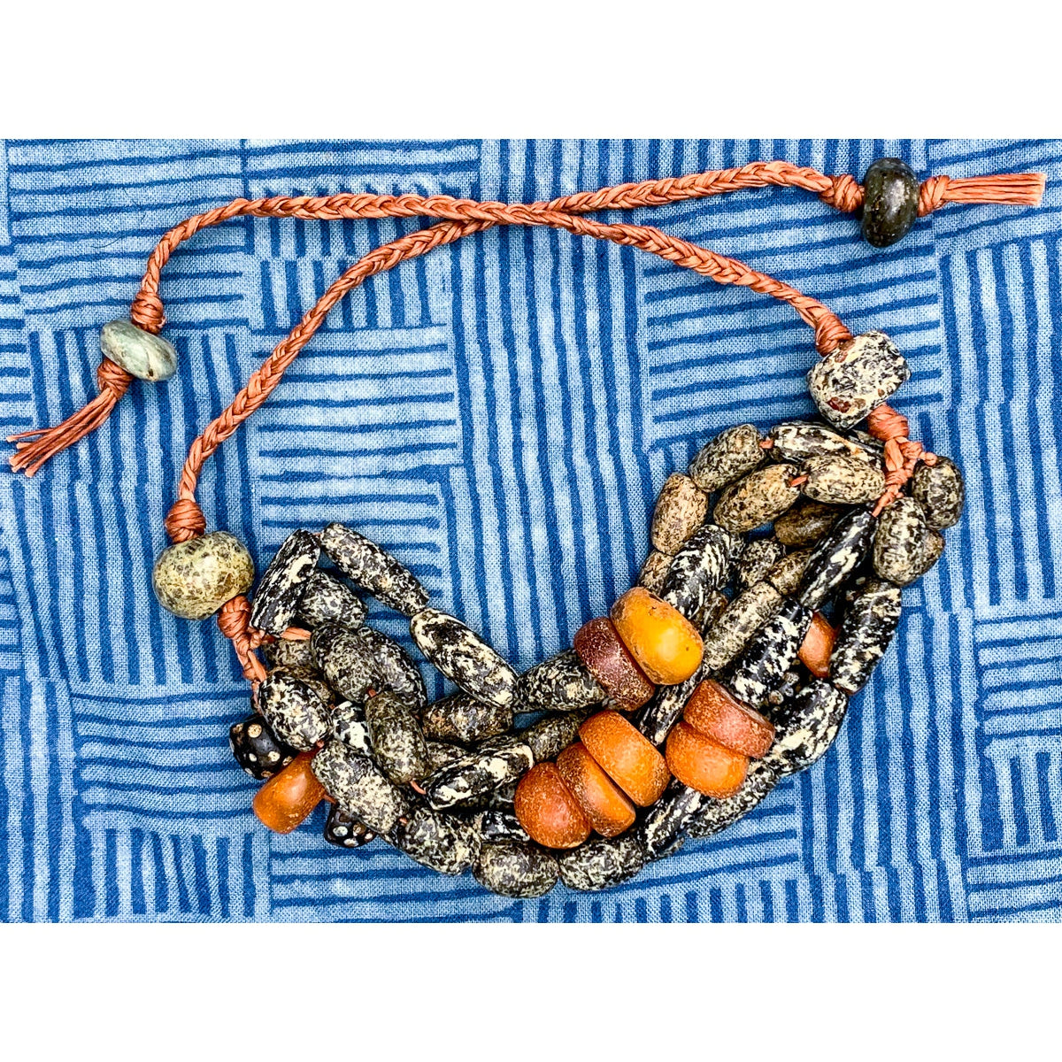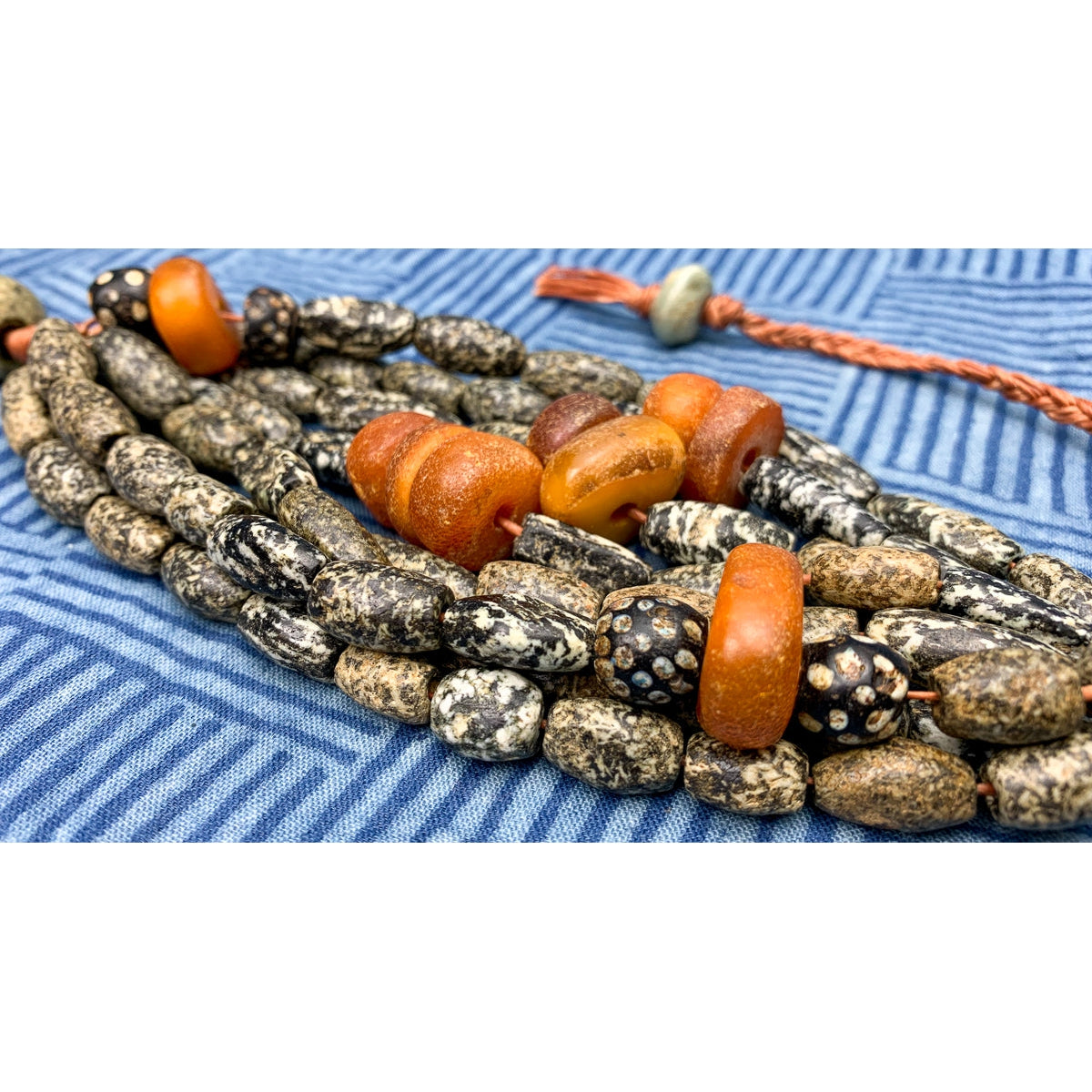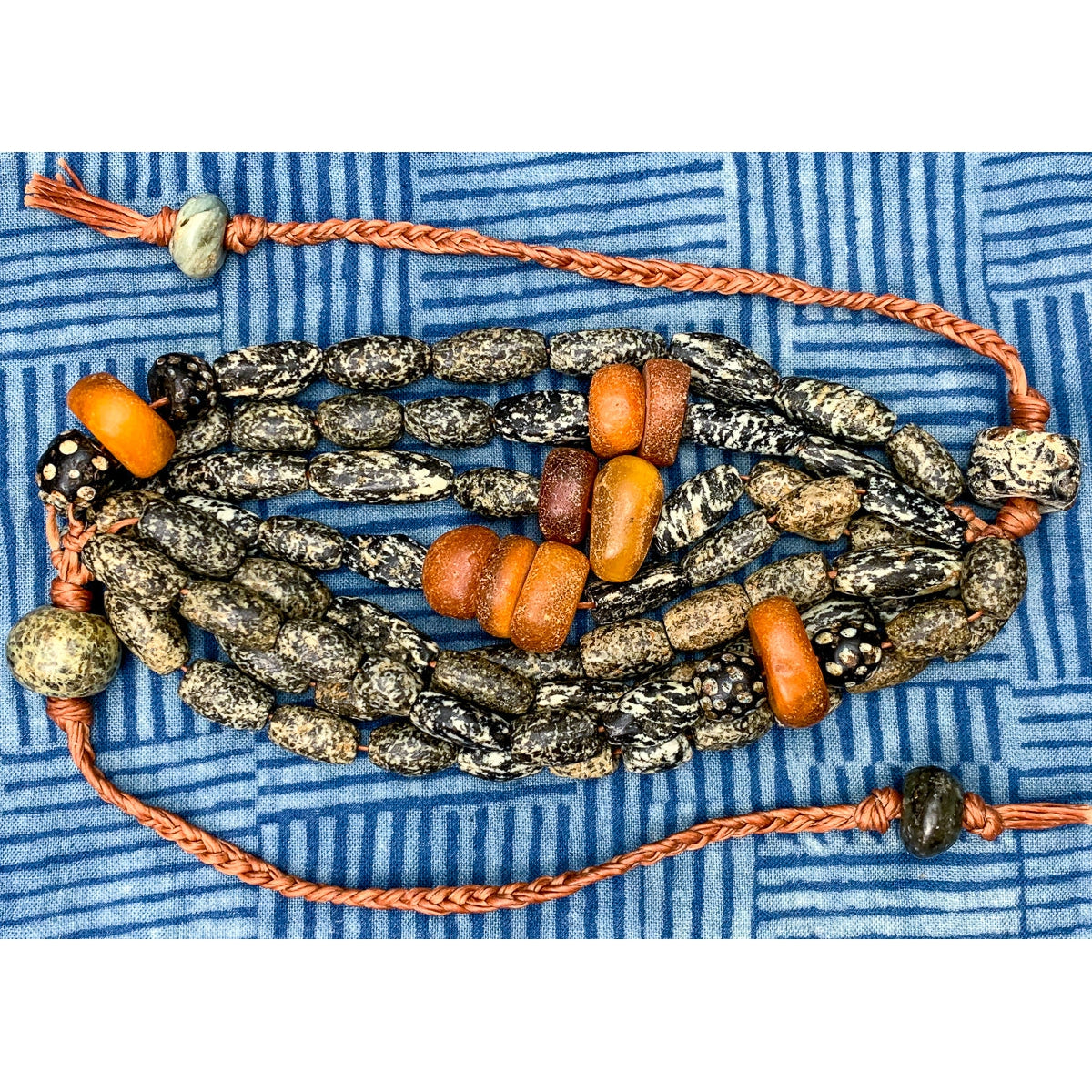 Dogon Gneiss/ Granite with Fulani Dowry Amber 8 Strand Bracelet