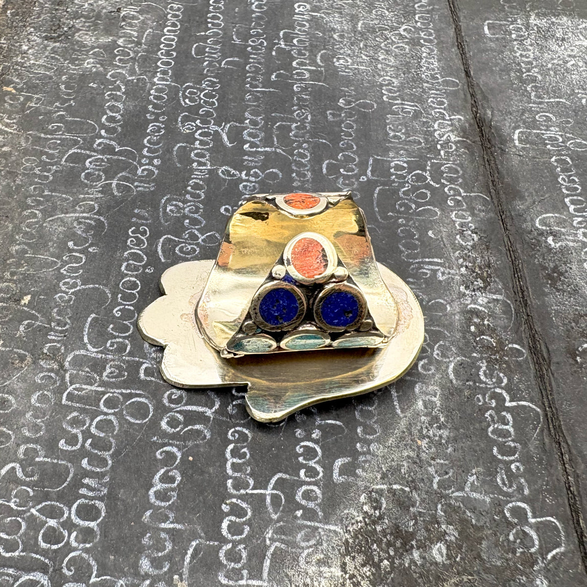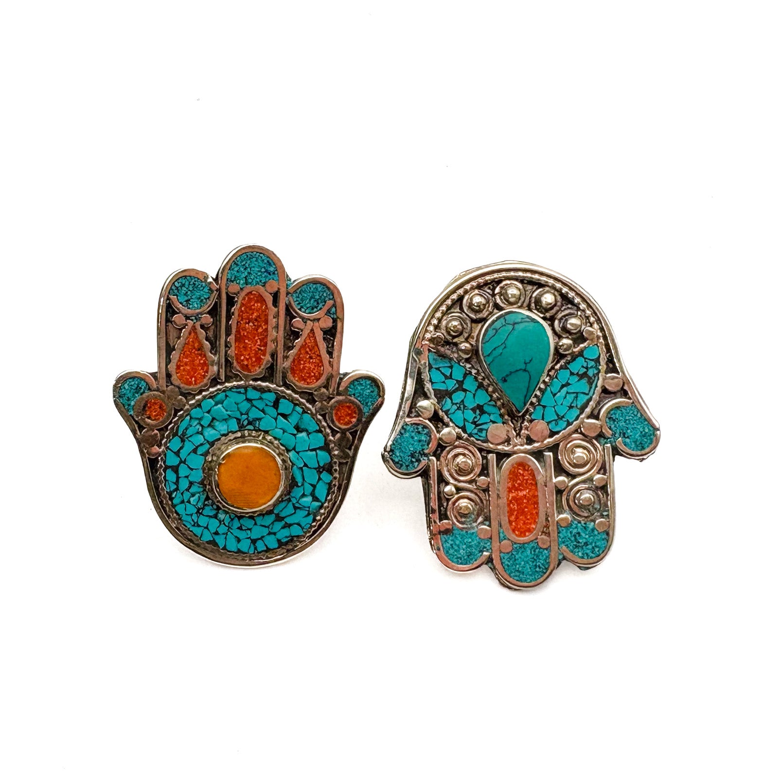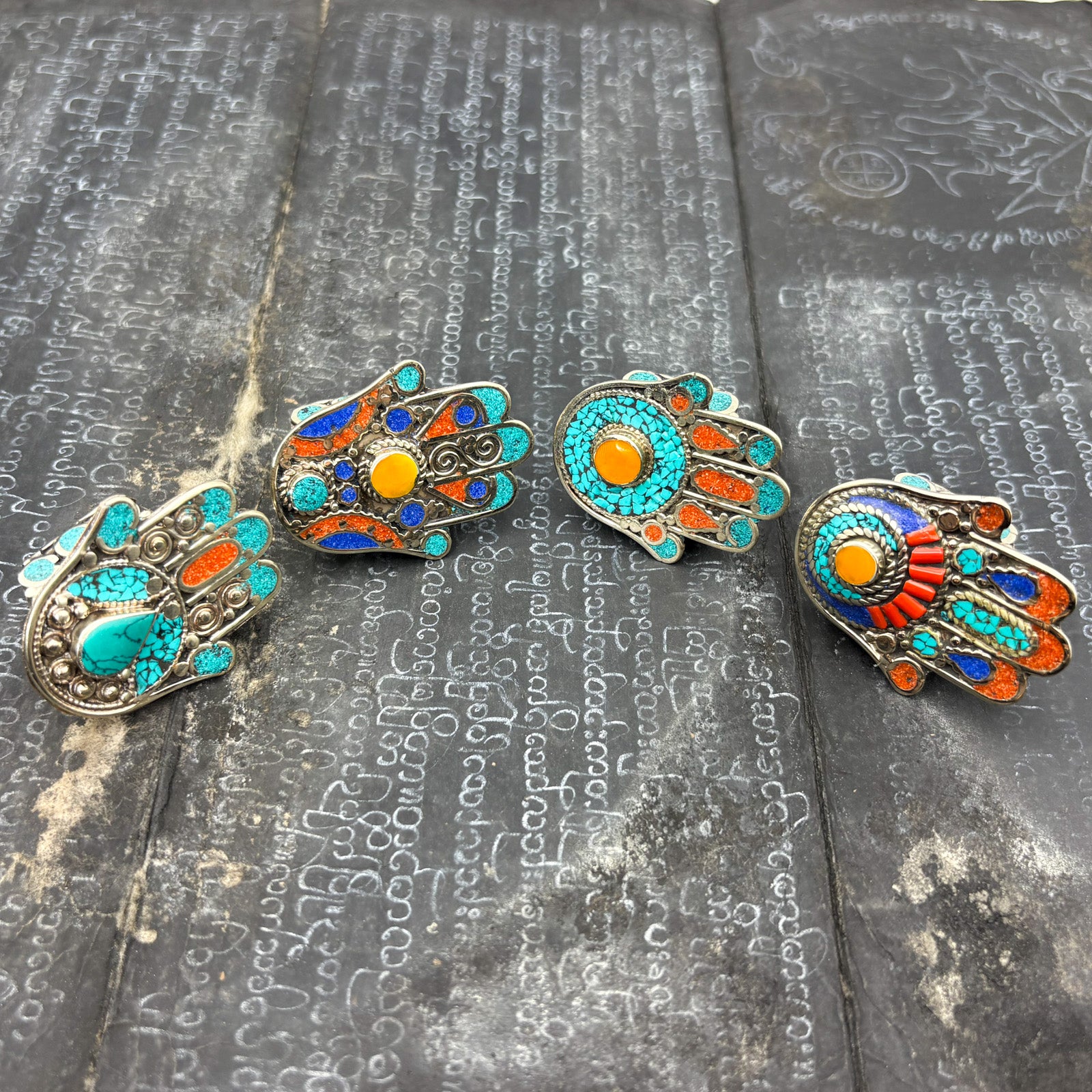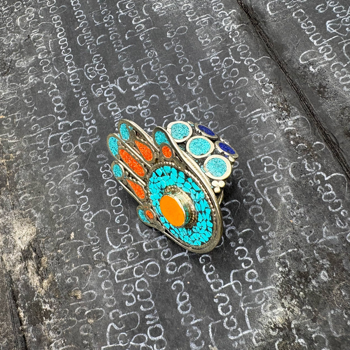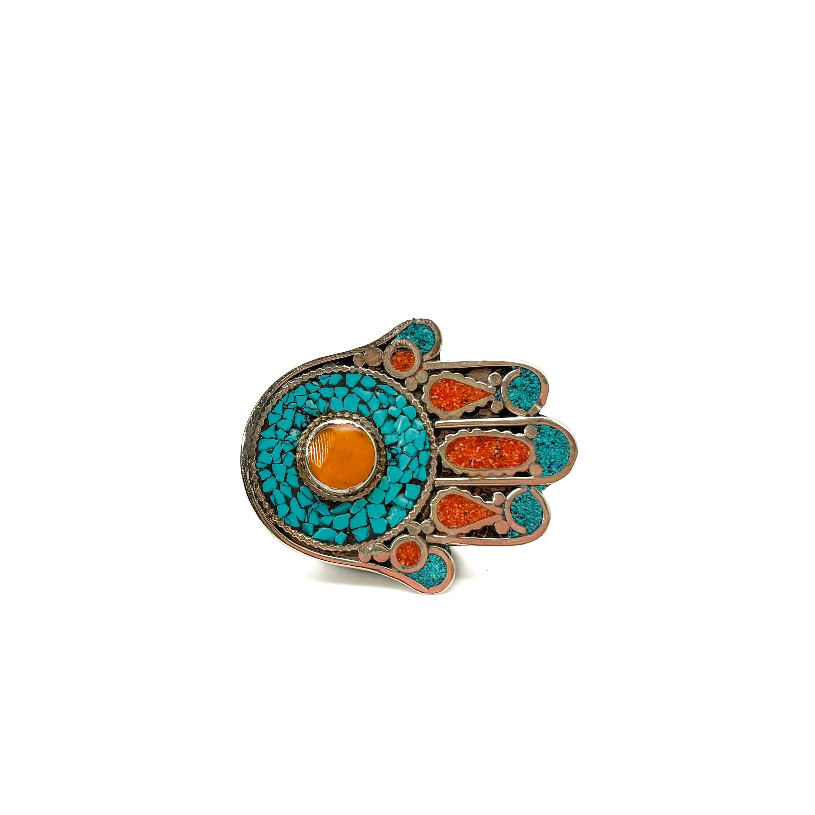 Hamsa Inlaid White Brass Adjustable Ring (D)