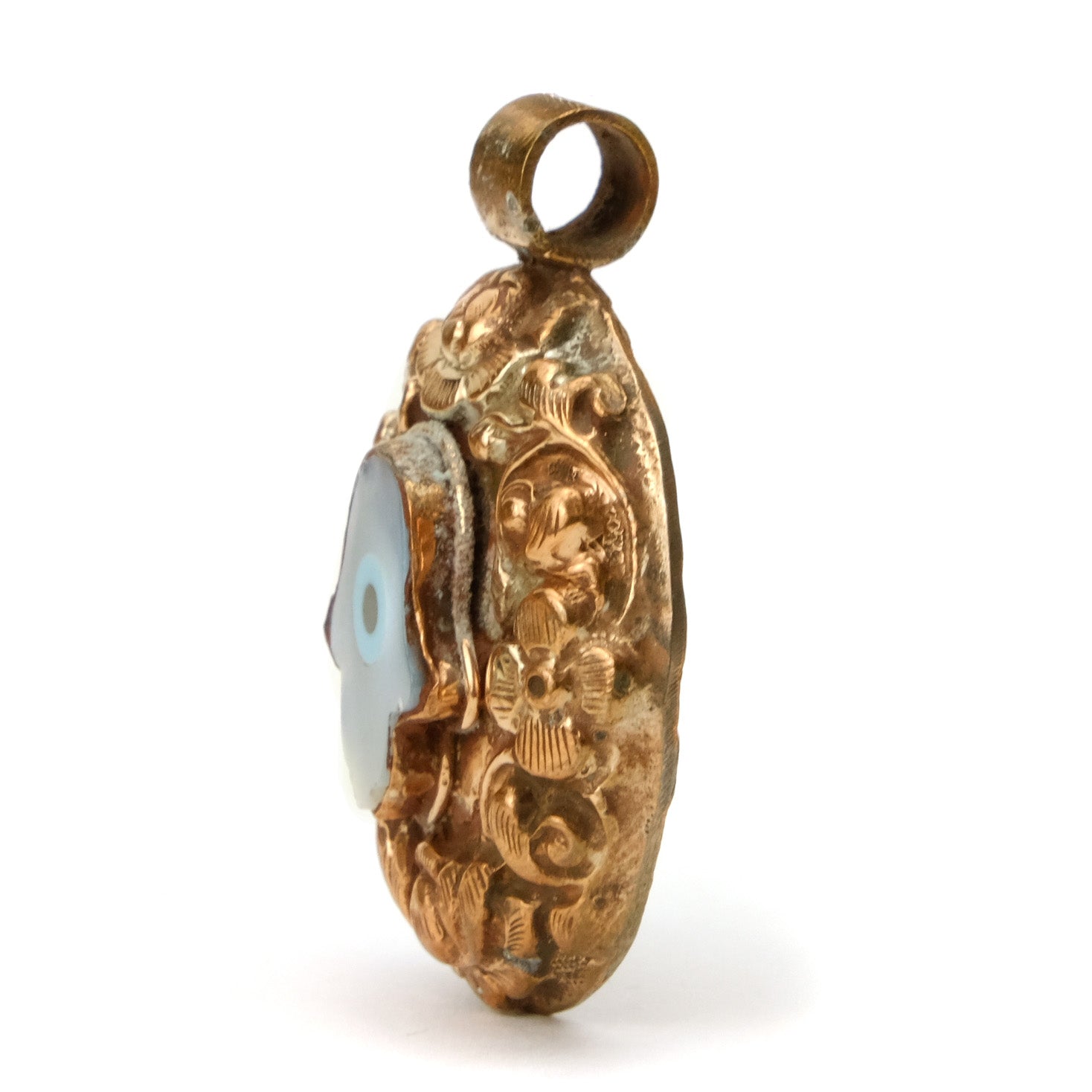 Hamsa with Evil Eye Mother of Pearl Copper Pendant # 55 - 2