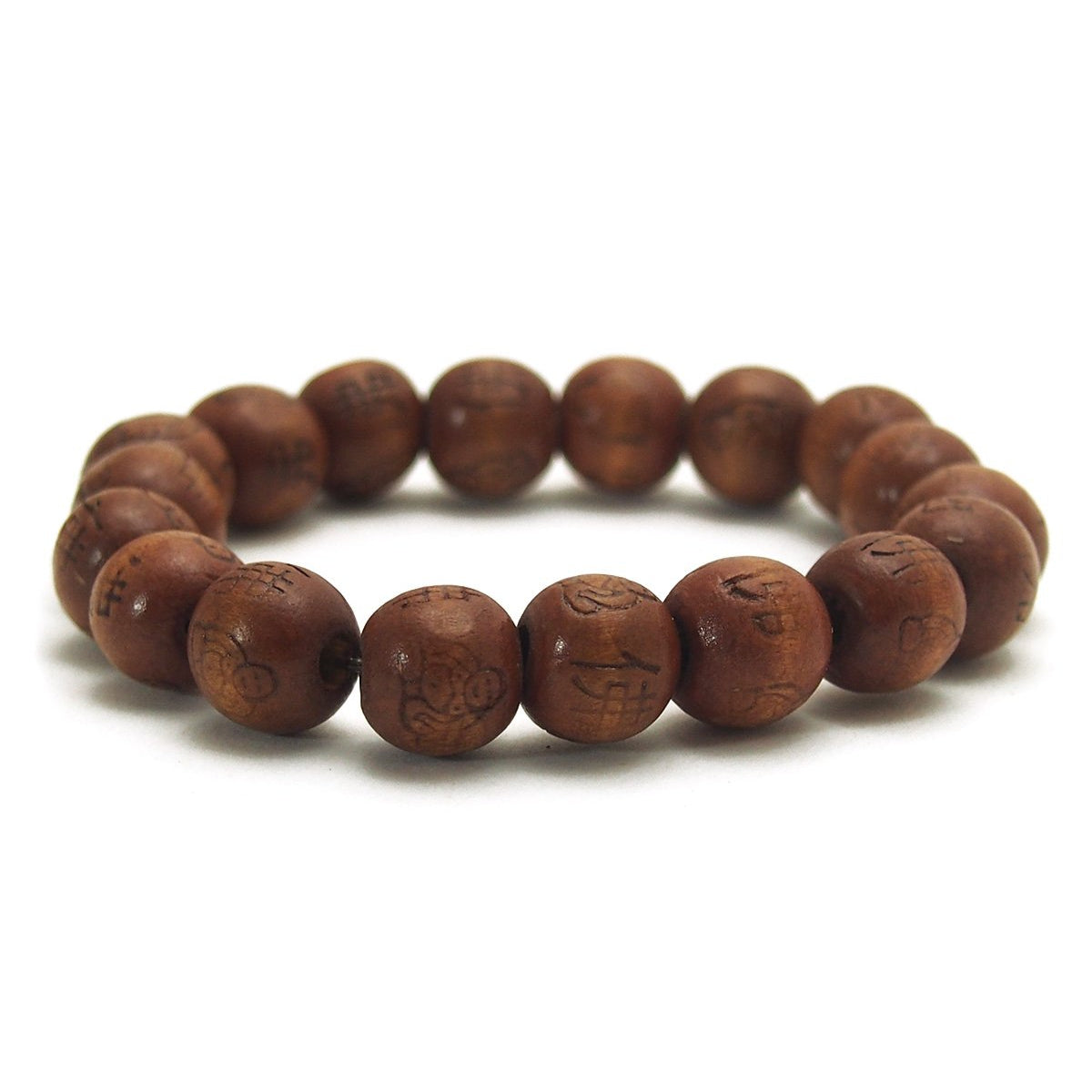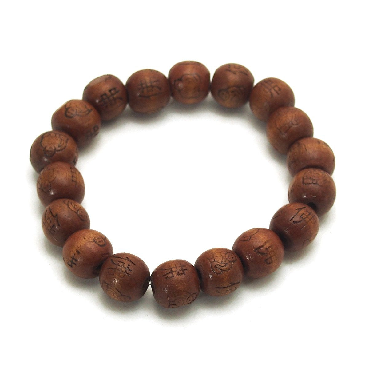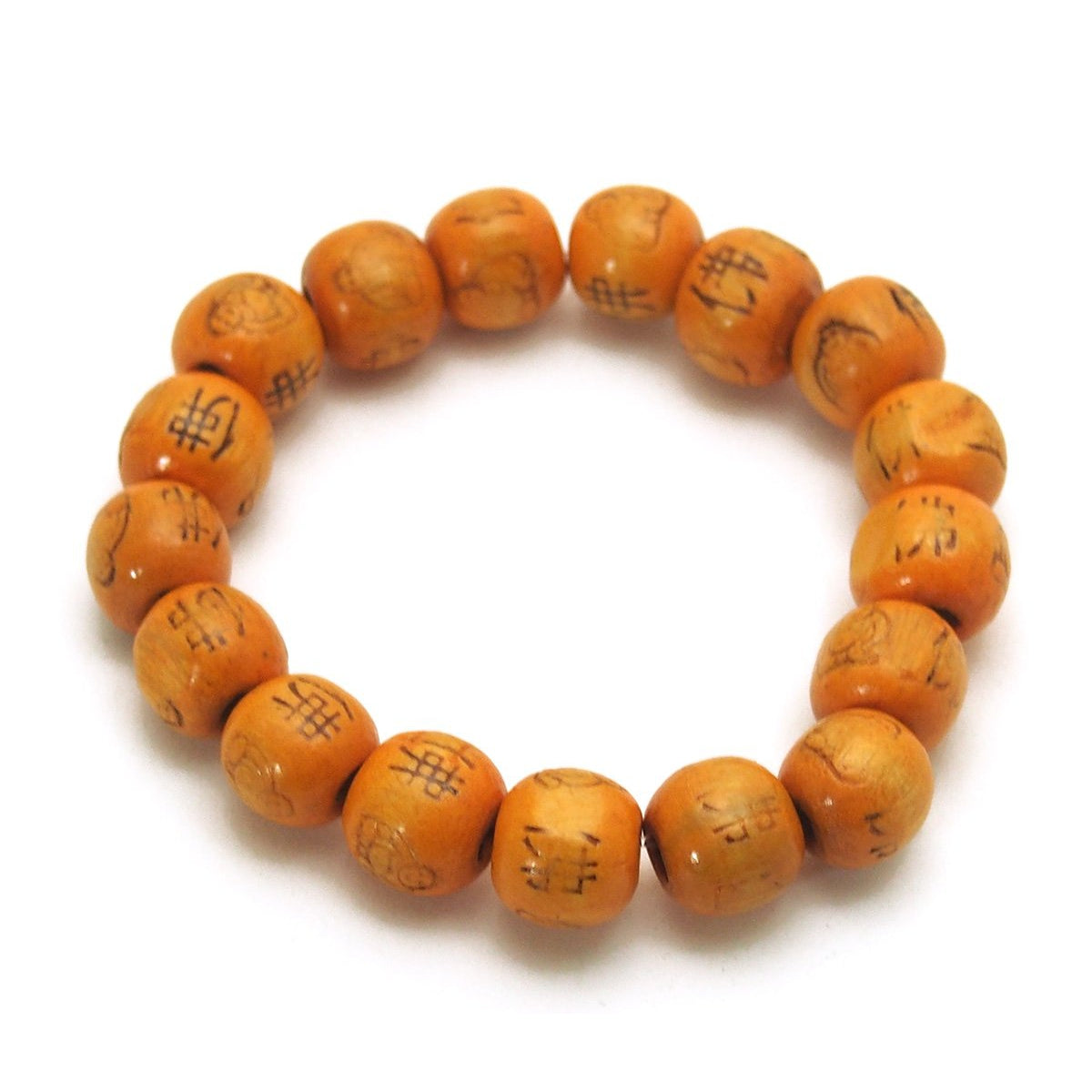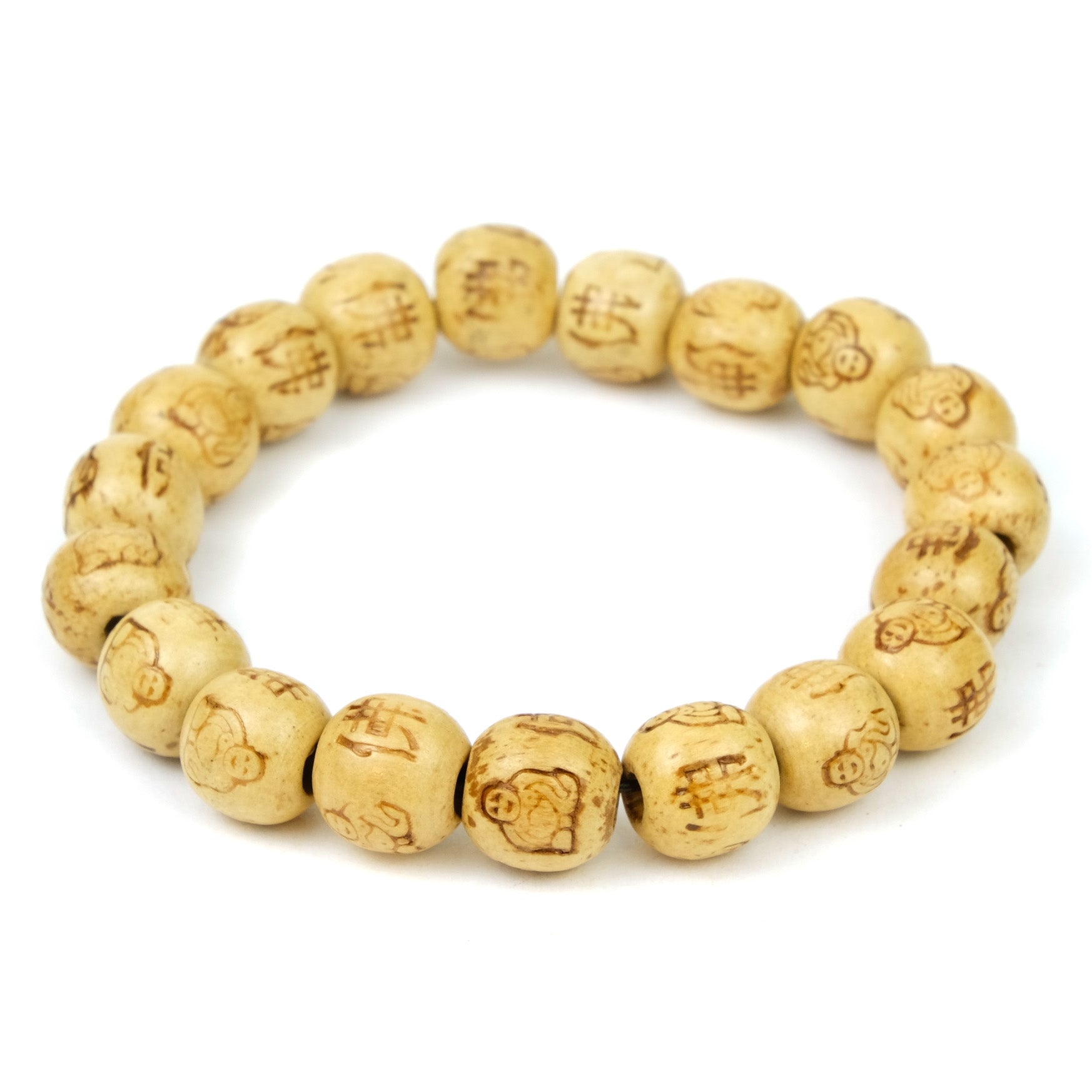 Happy Laughing Buddha Stamped Pine Wood Stretch Bracelet