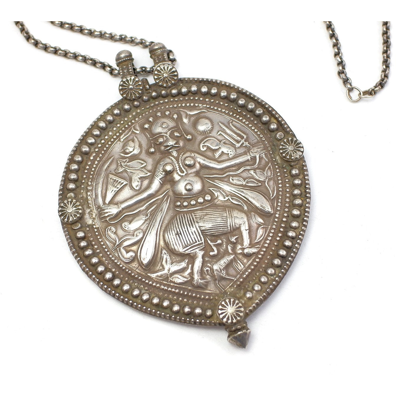 Hindu Goddess Antique High Silver Content Pendant Large Size 2