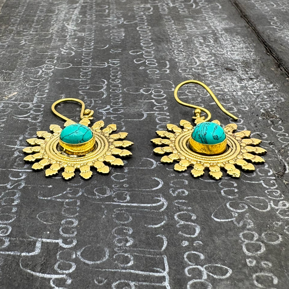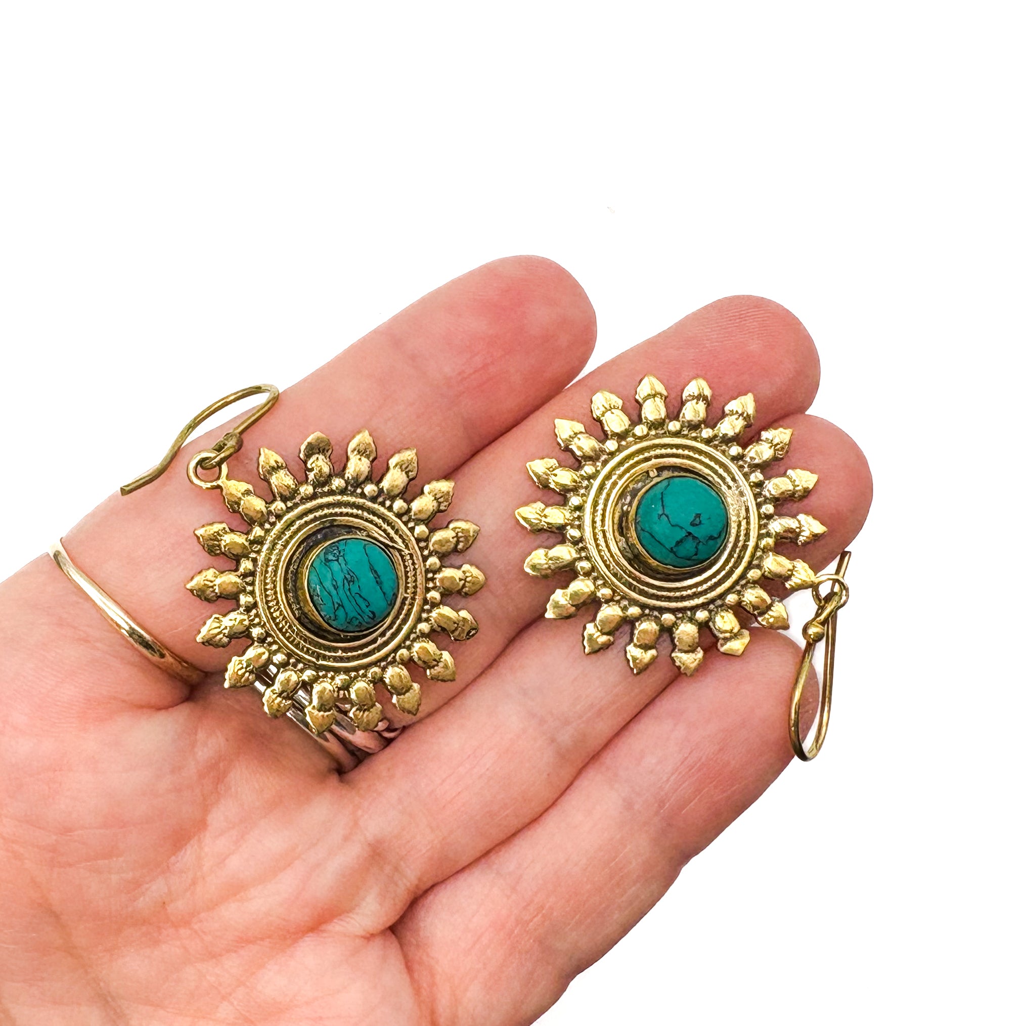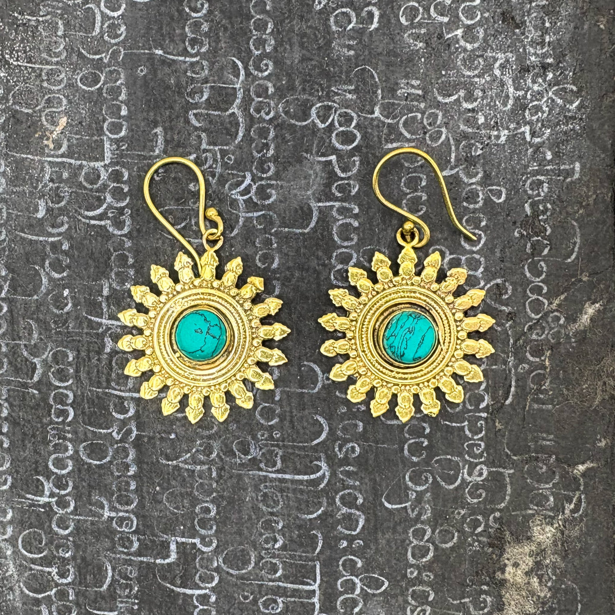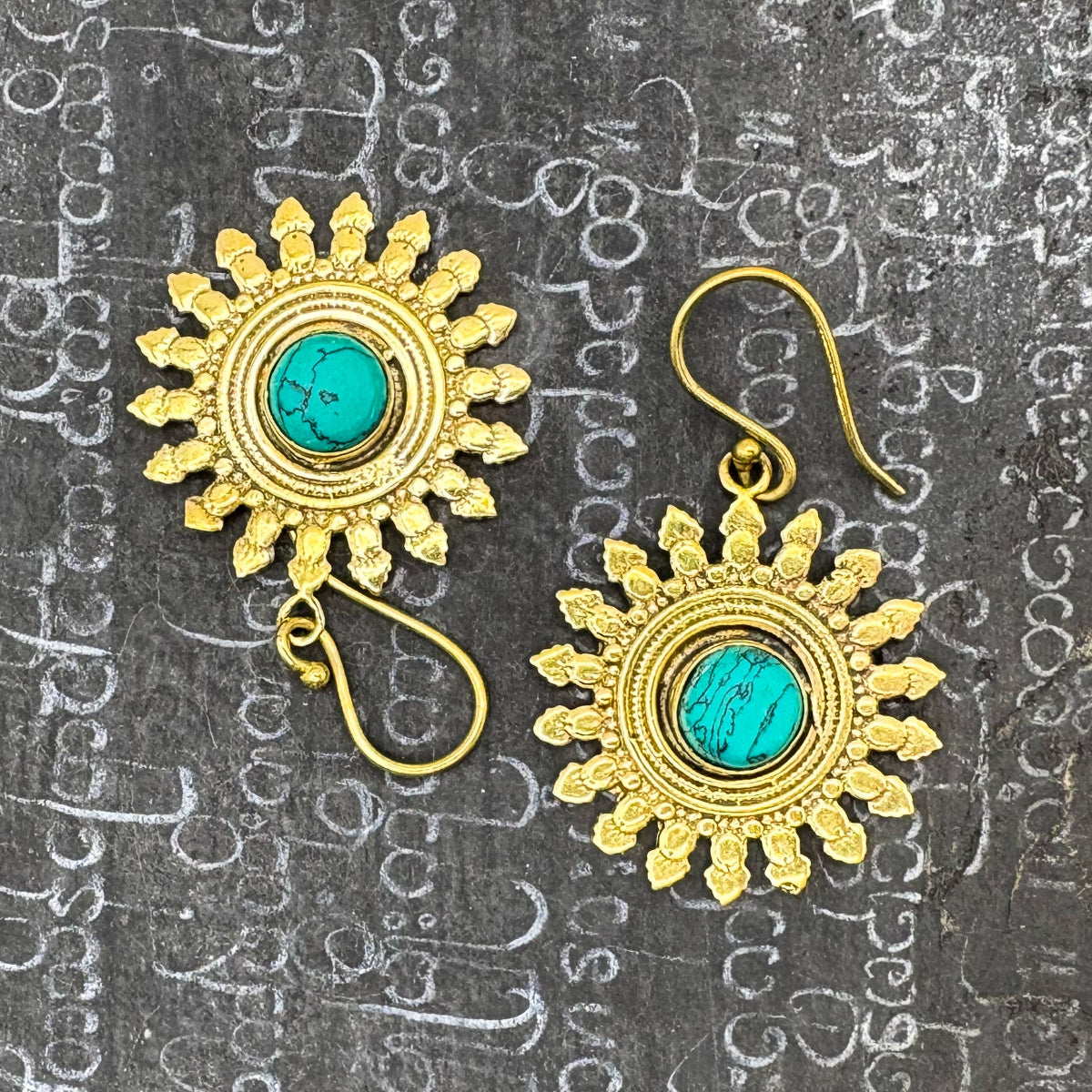 Howlite All The Suns Rays Brass Earrings