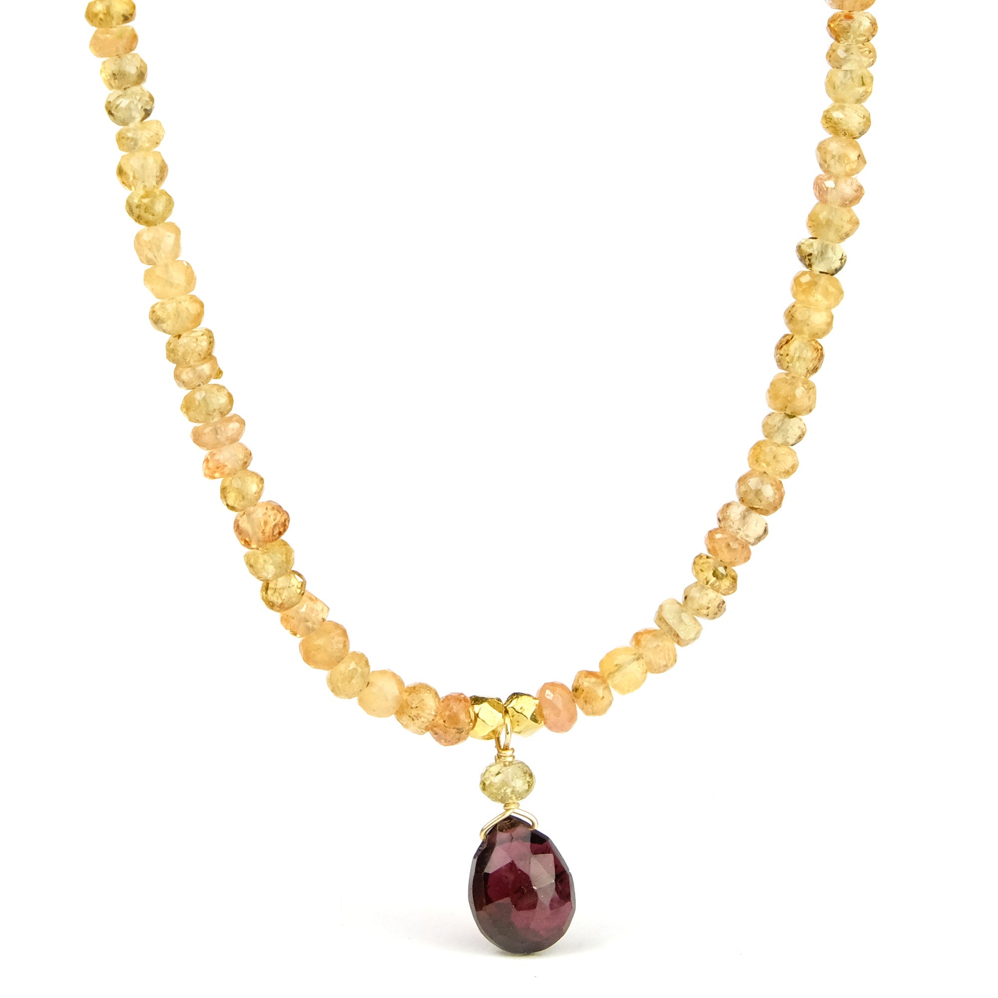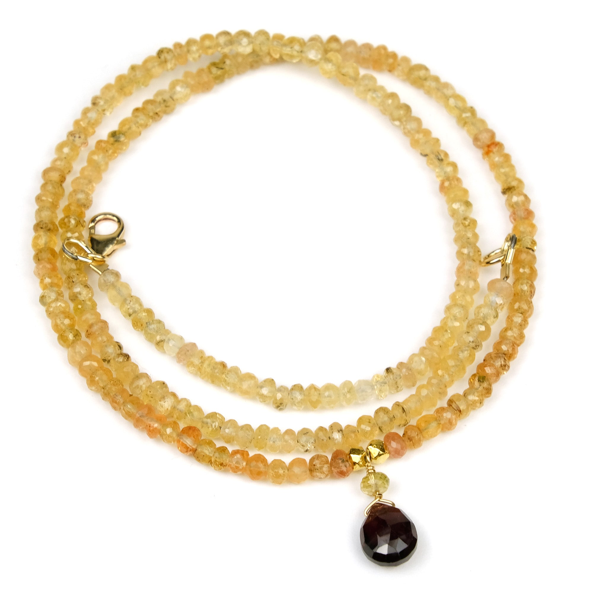 Imperial Golden Topaz 4mm Faceted Rondelles and Garnet Drop Necklace with Gold Filled Trigger Clasp