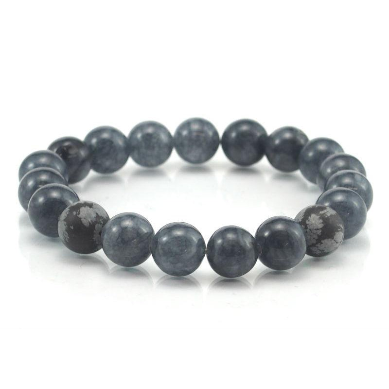 Iolite and Snow Flake Obsidian Stretch Bracelet 10mm