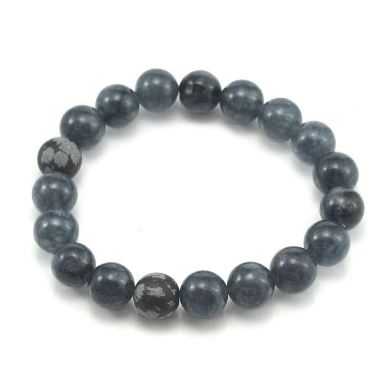 • Iolite and Snow Flake Obsidian Stretch Bracelet 10mm