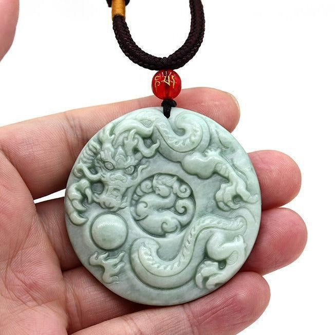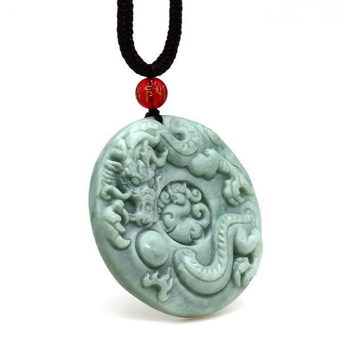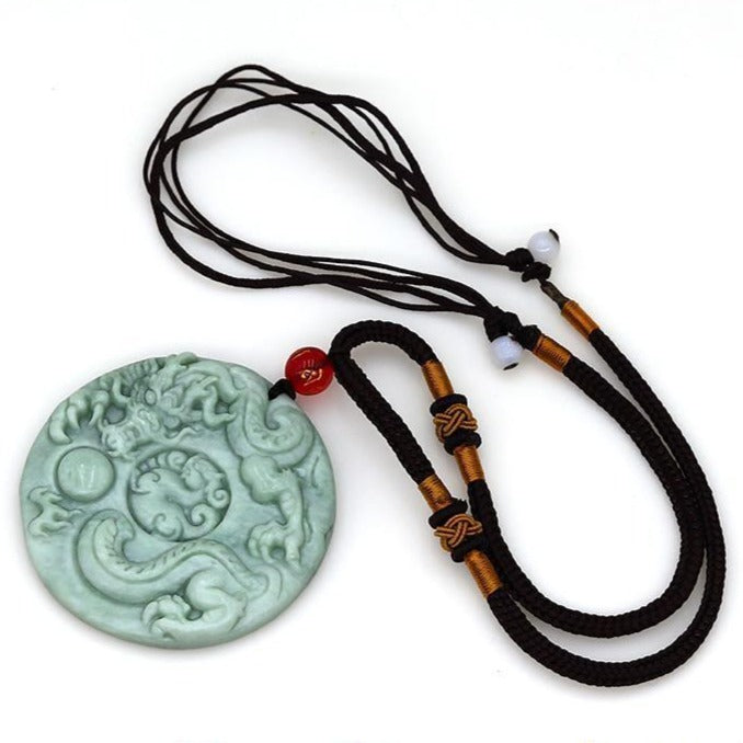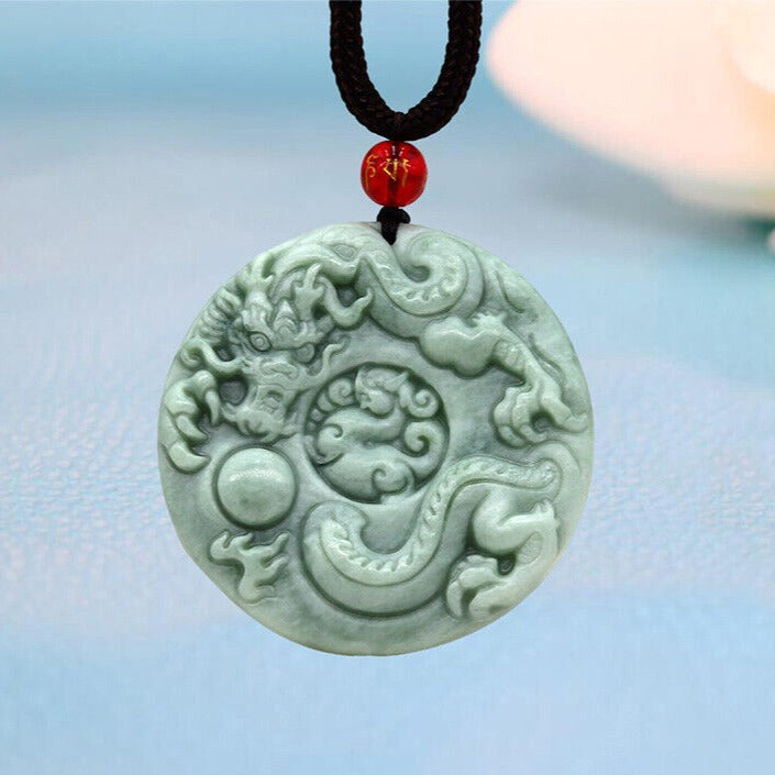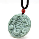 Jade Dragon Chasing the Flaming Pearl Pendant Necklace