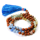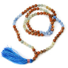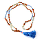 Jasper and Aquamarine 8mm Knotted Mala with Silk Tassel #97