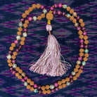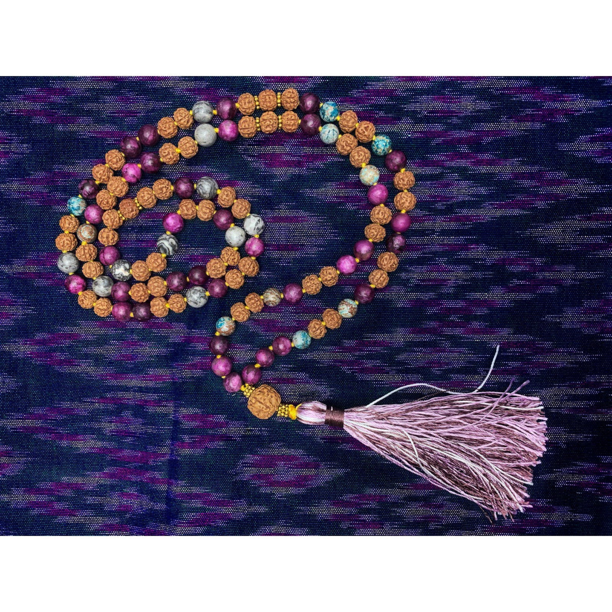 - Jasper and Rudraksha 8mm Knotted Mala with Silk Tassel
