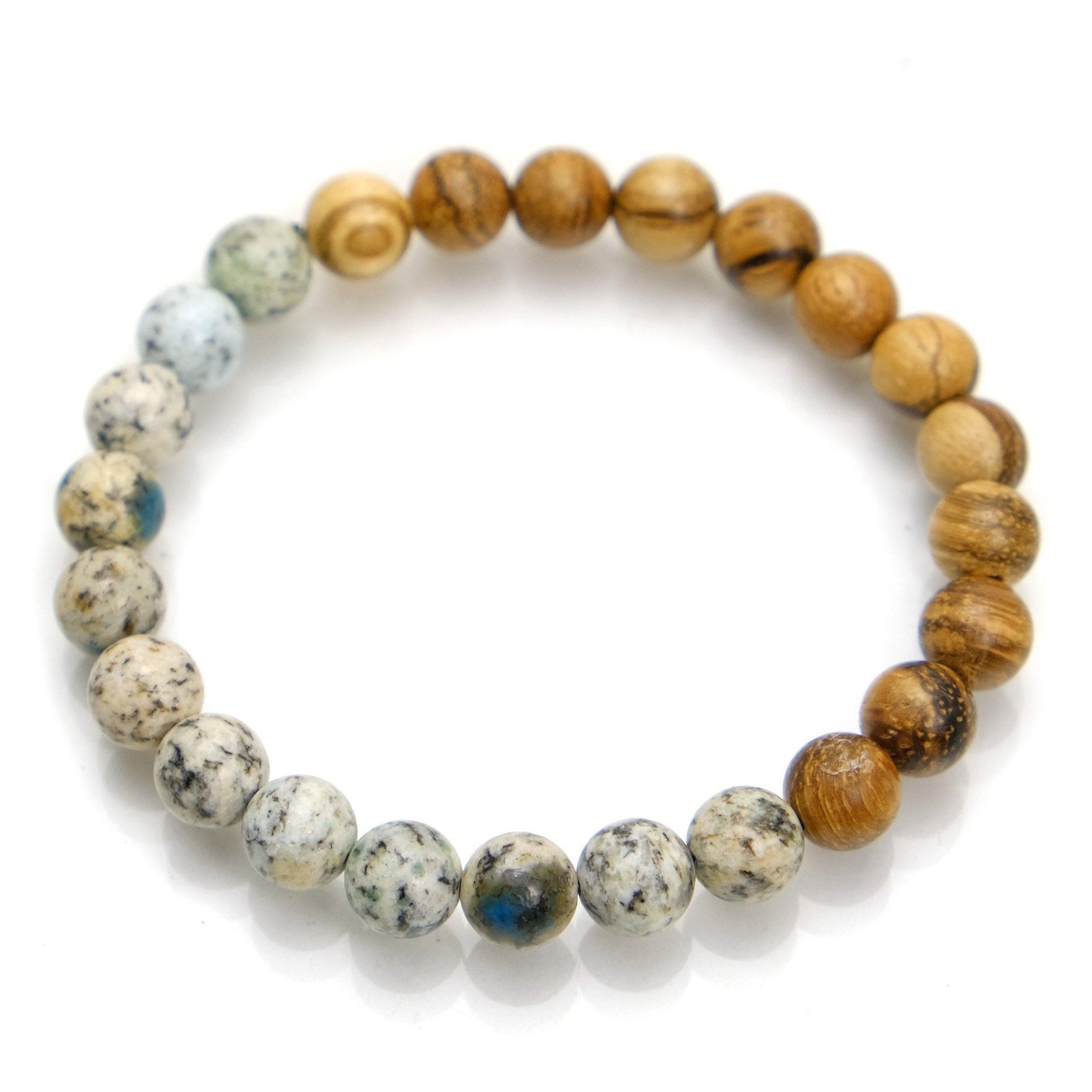 K2 Granite with Azurite + Banded Sandalwood Stretch Bracelet #2