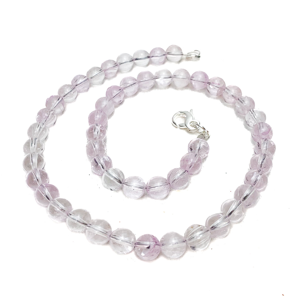 Kunzite 8mm Necklace with Sterling Silver Trigger Clasp