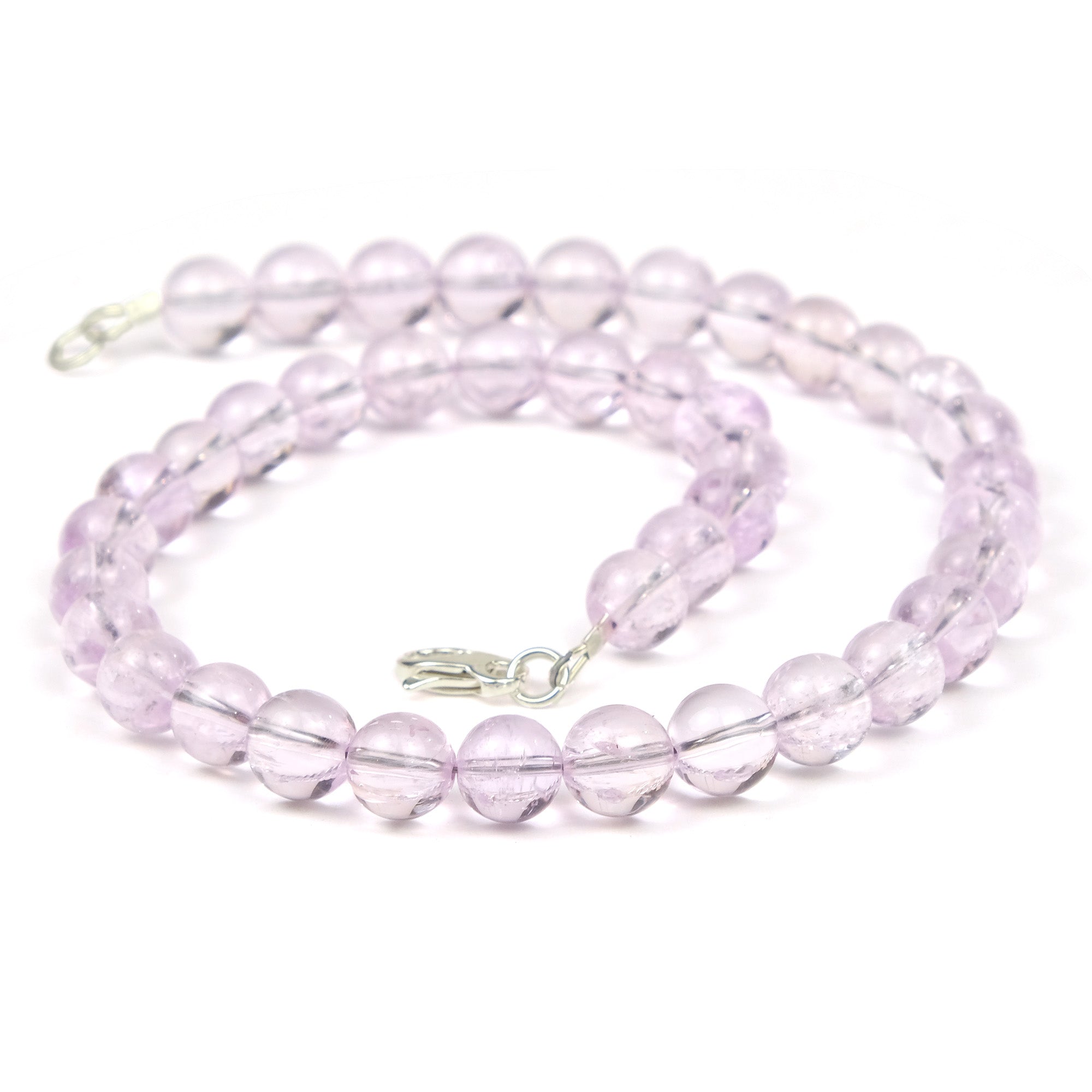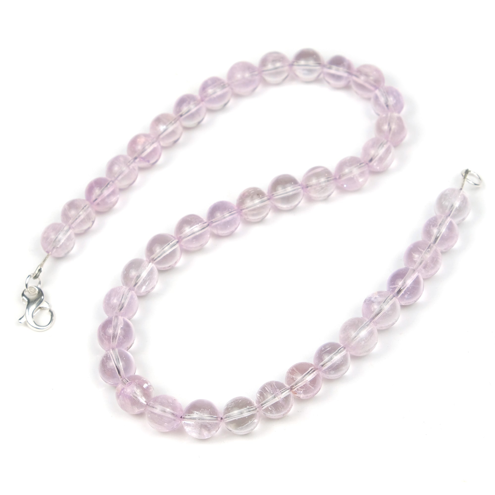 Kunzite 10mm Necklace with Sterling Silver Trigger Clasp