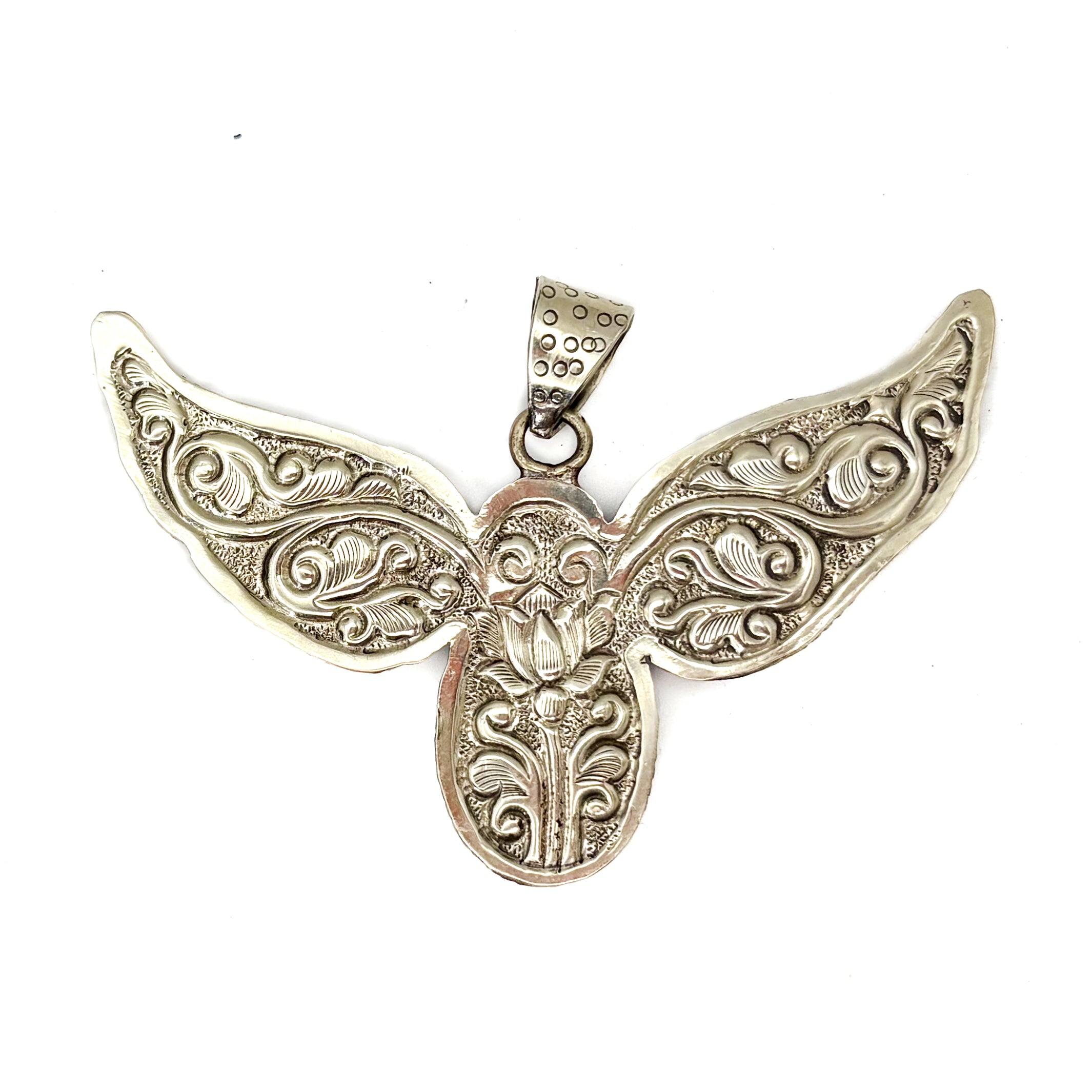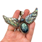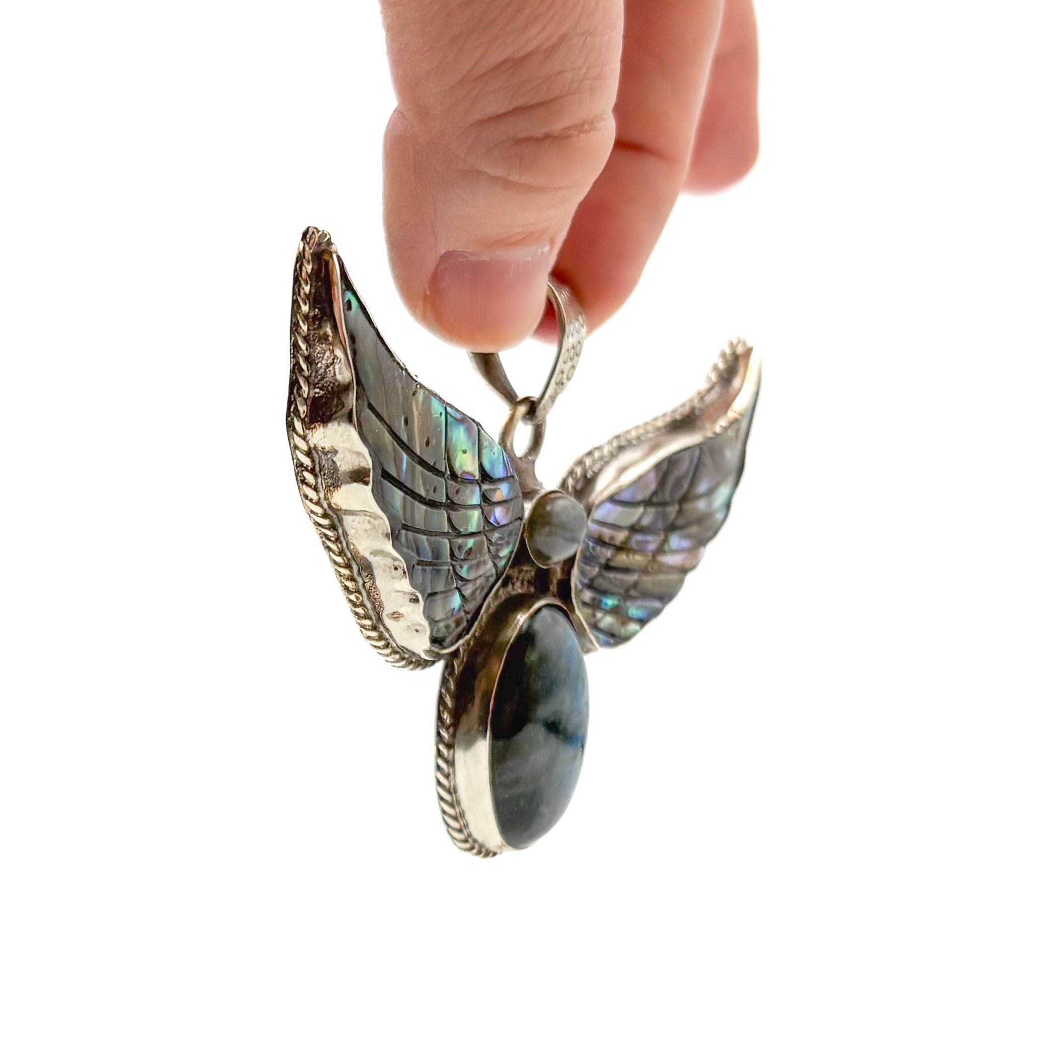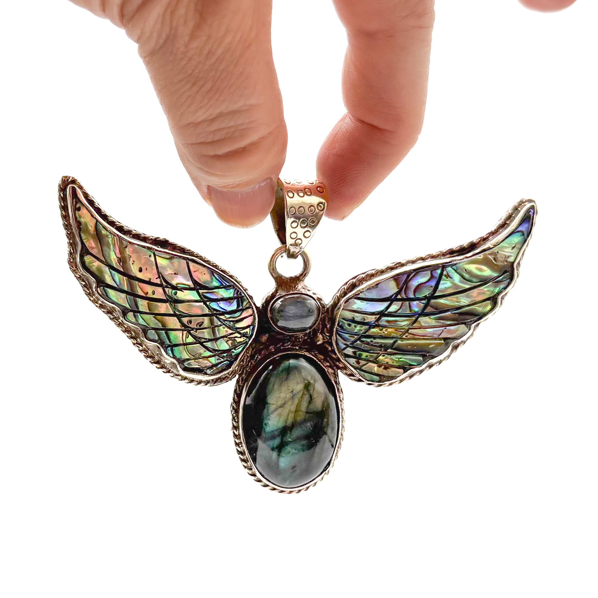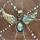 Labradorite and Abalone Brass Winged Pendant Amulet