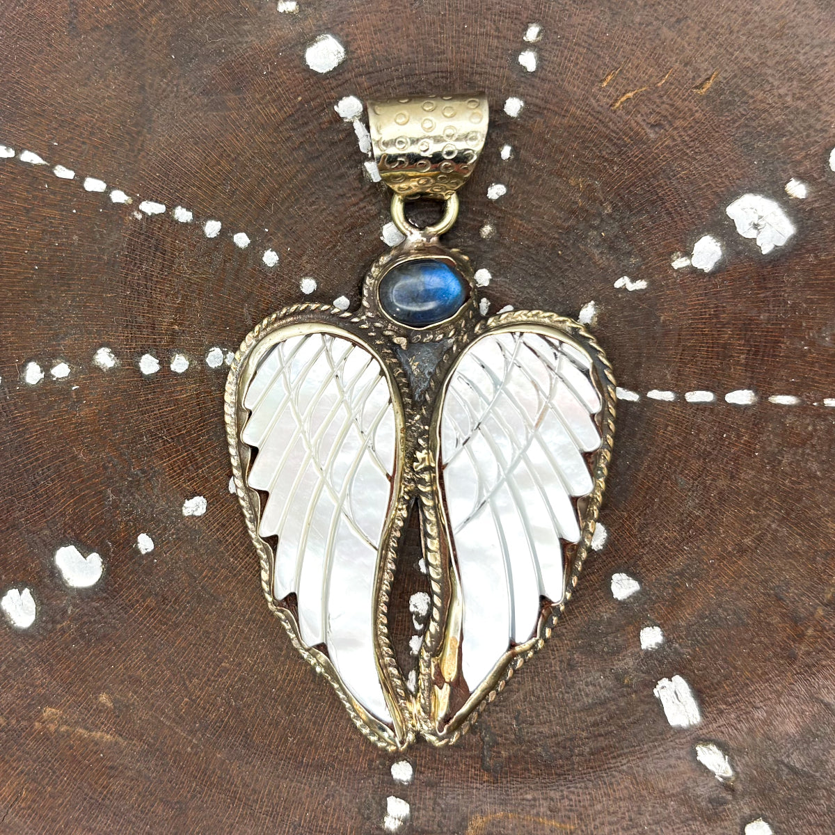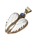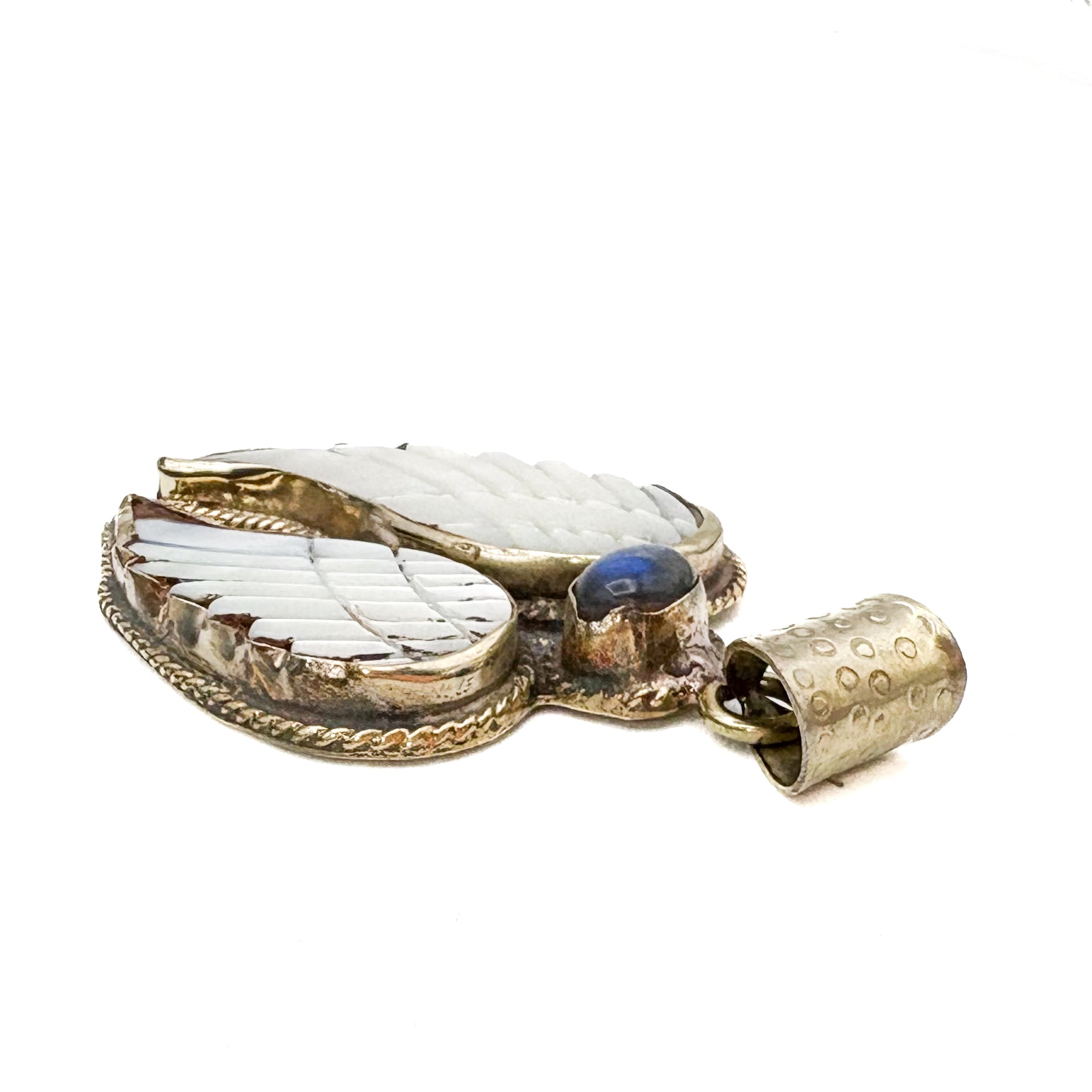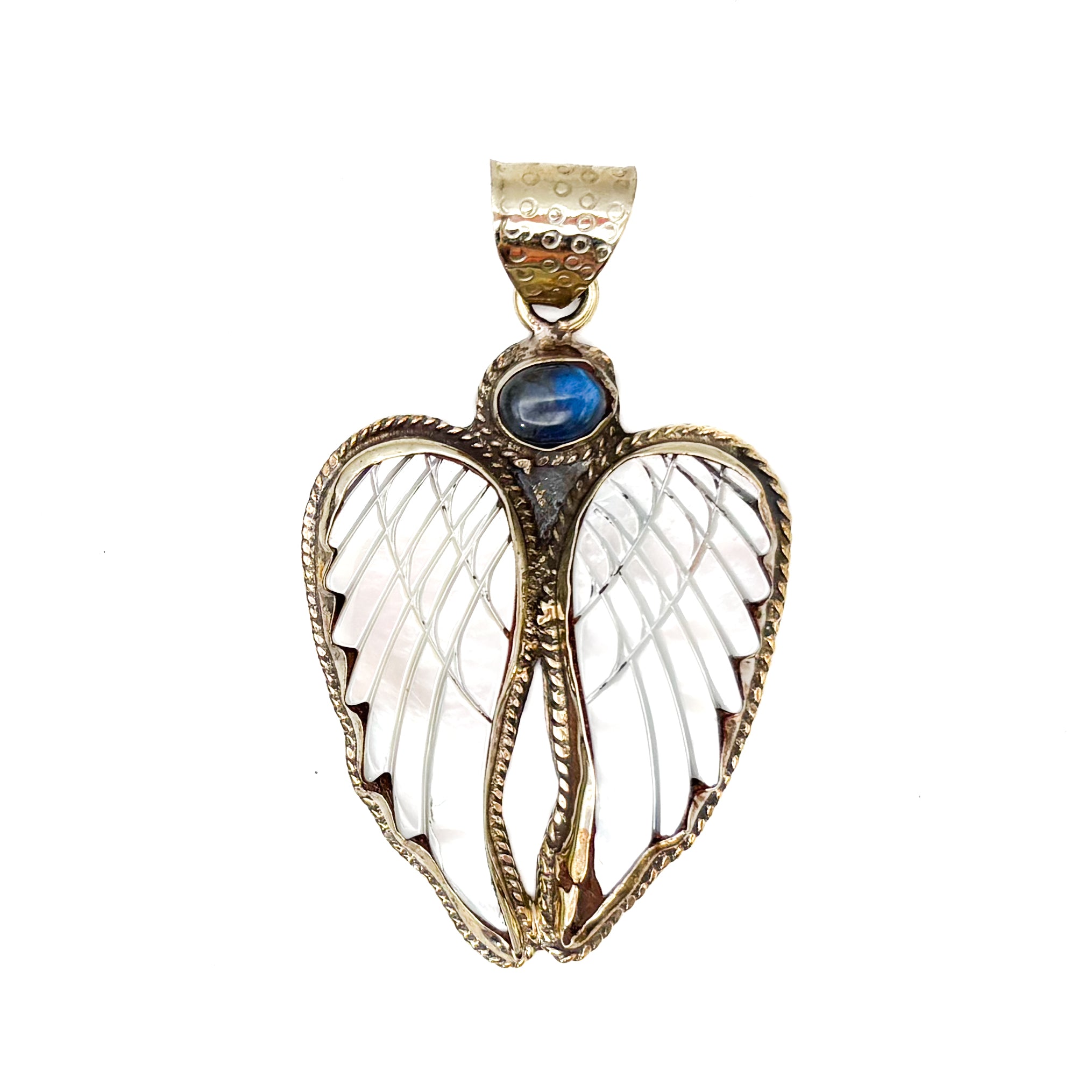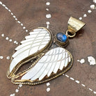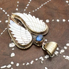 Labradorite and Mother-of-Pearl Brass Winged Pendant Amulet