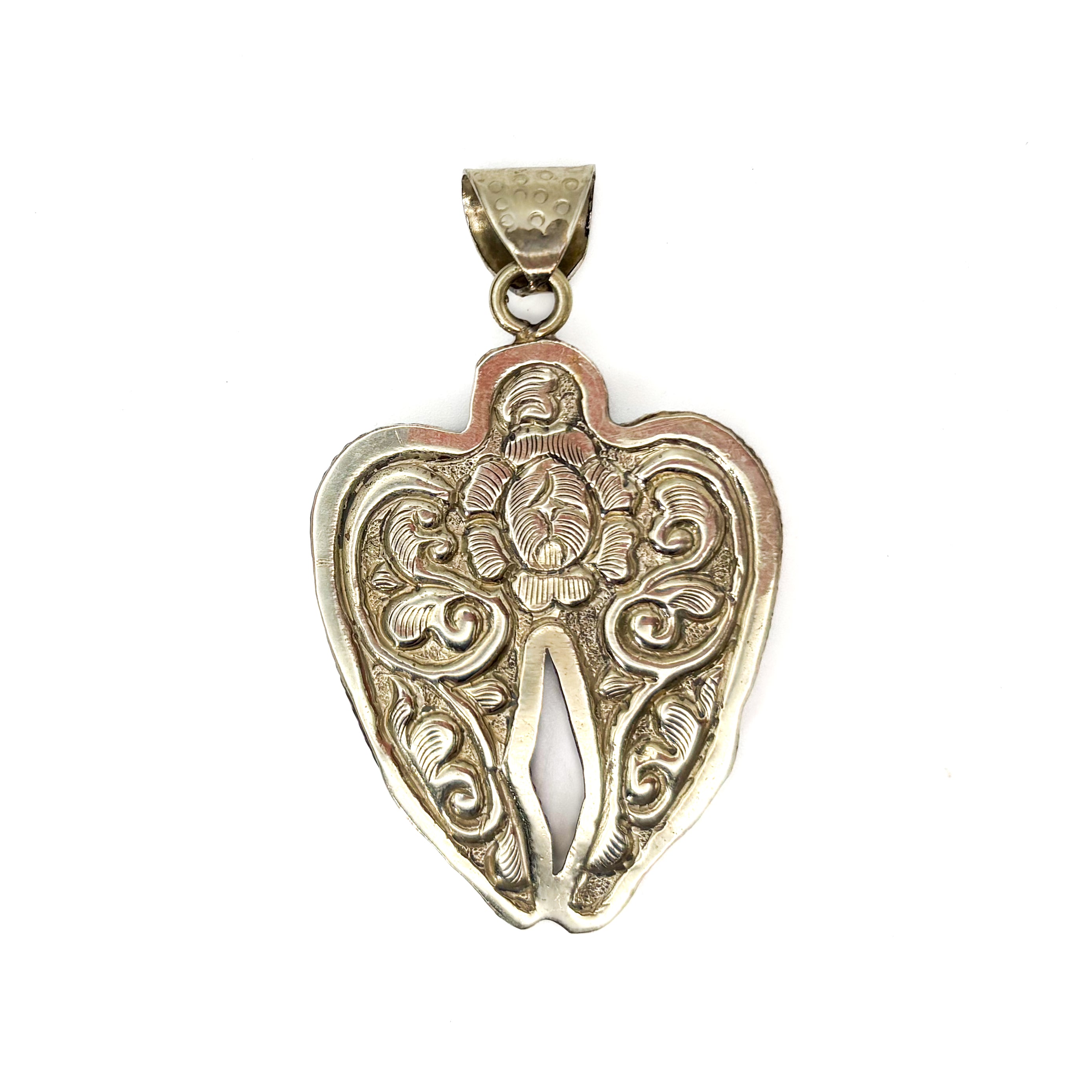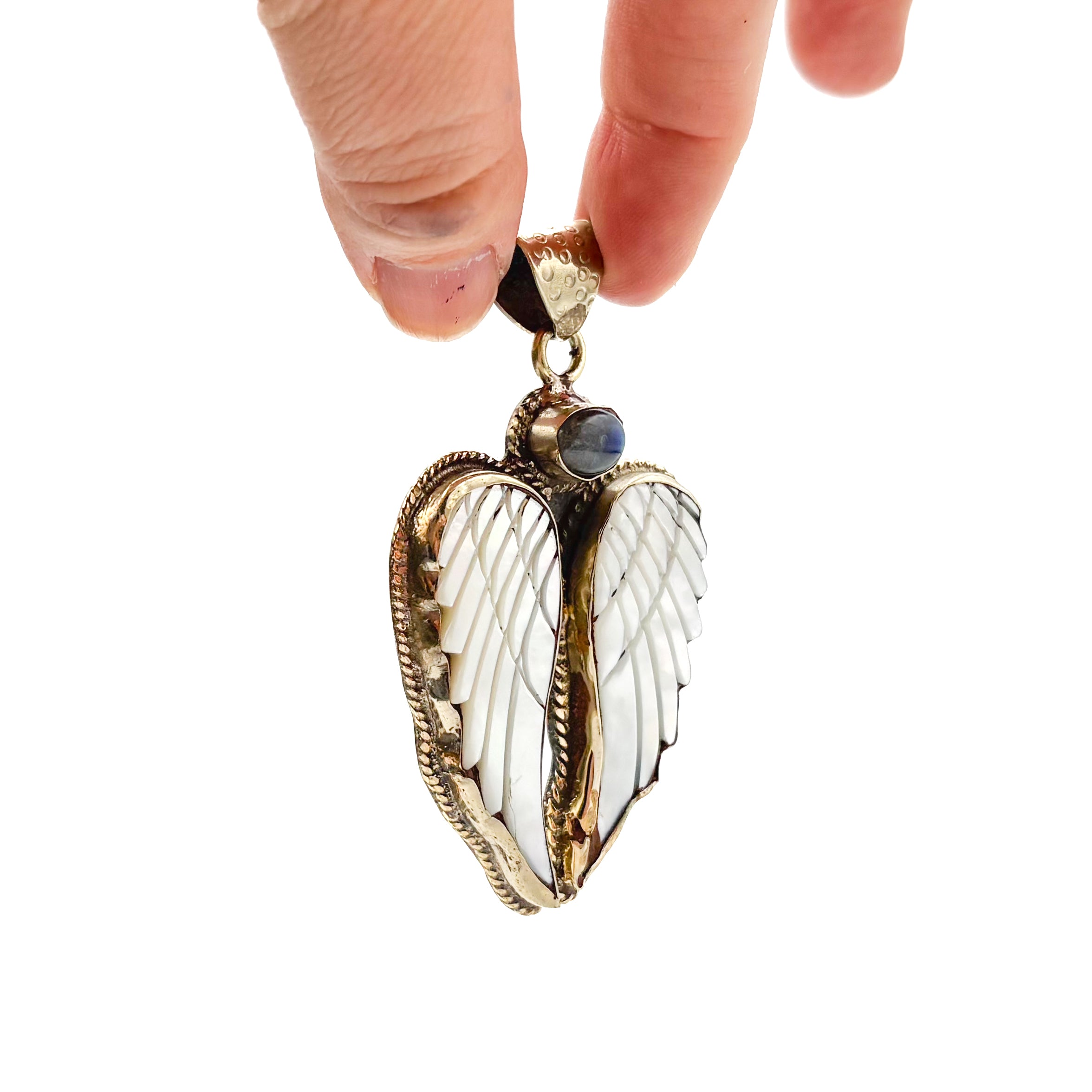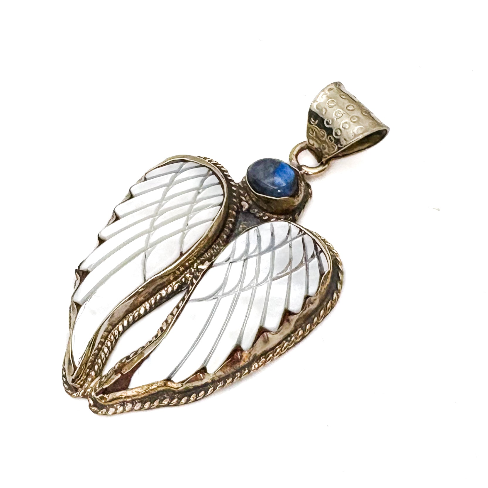 Labradorite and Mother-of-Pearl Brass Winged Pendant Amulet