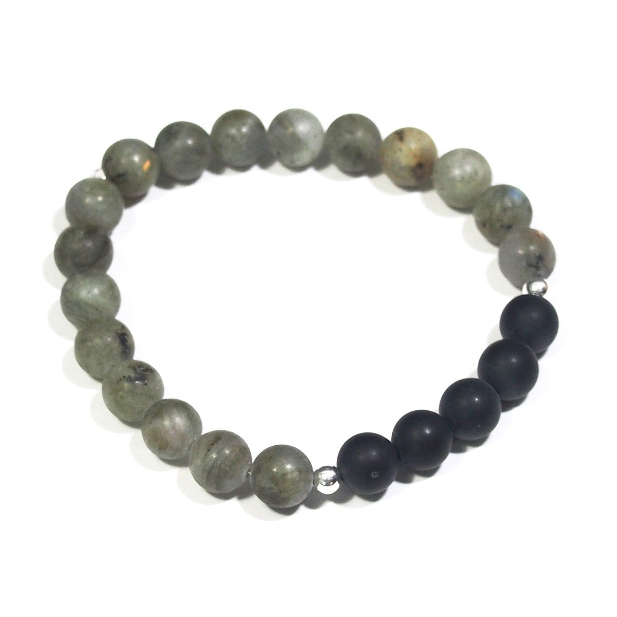 Labradorite and Onyx Stretch Bracelet with Matte Finish