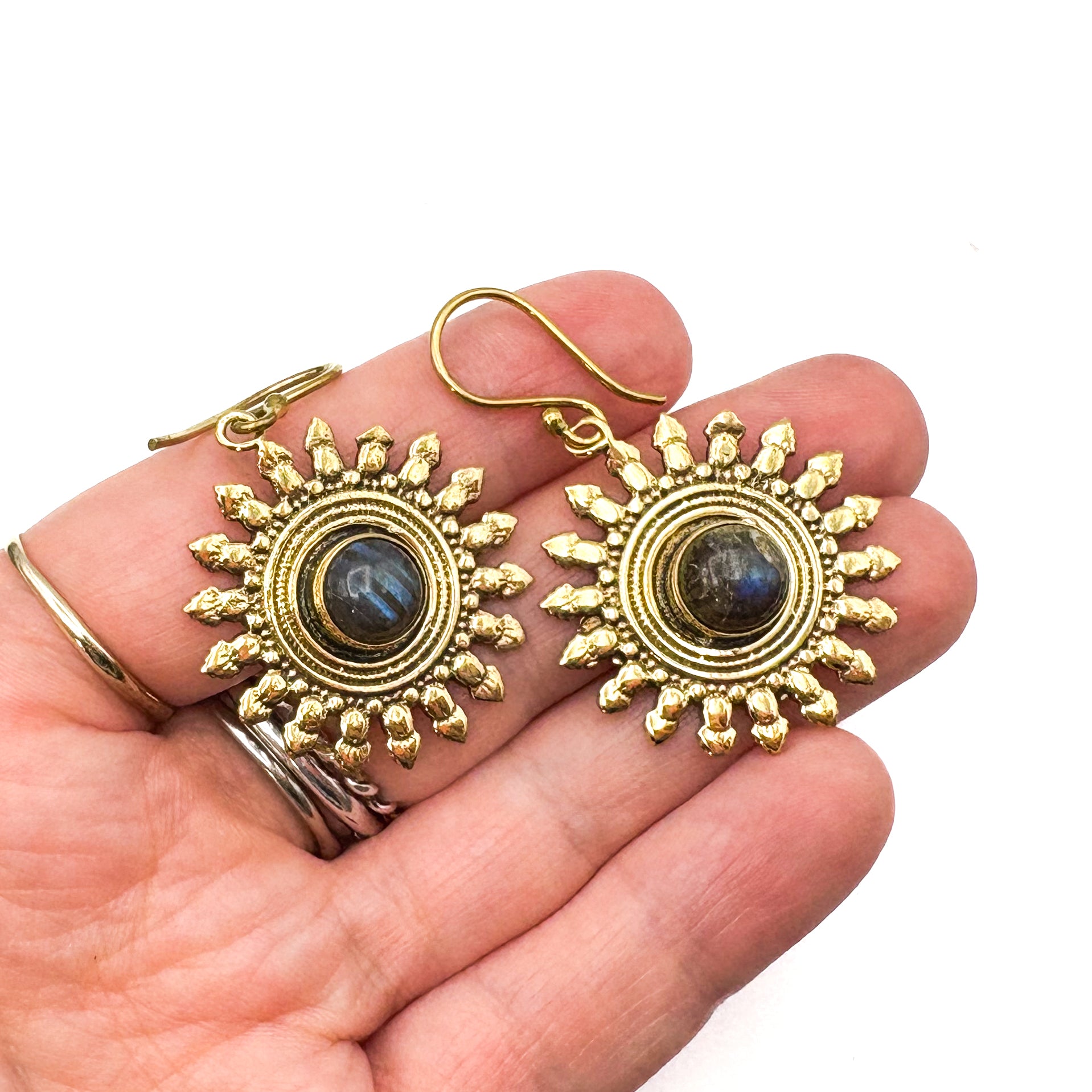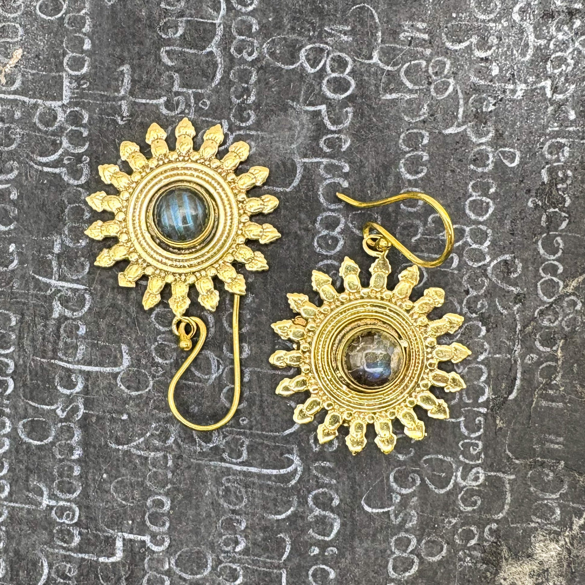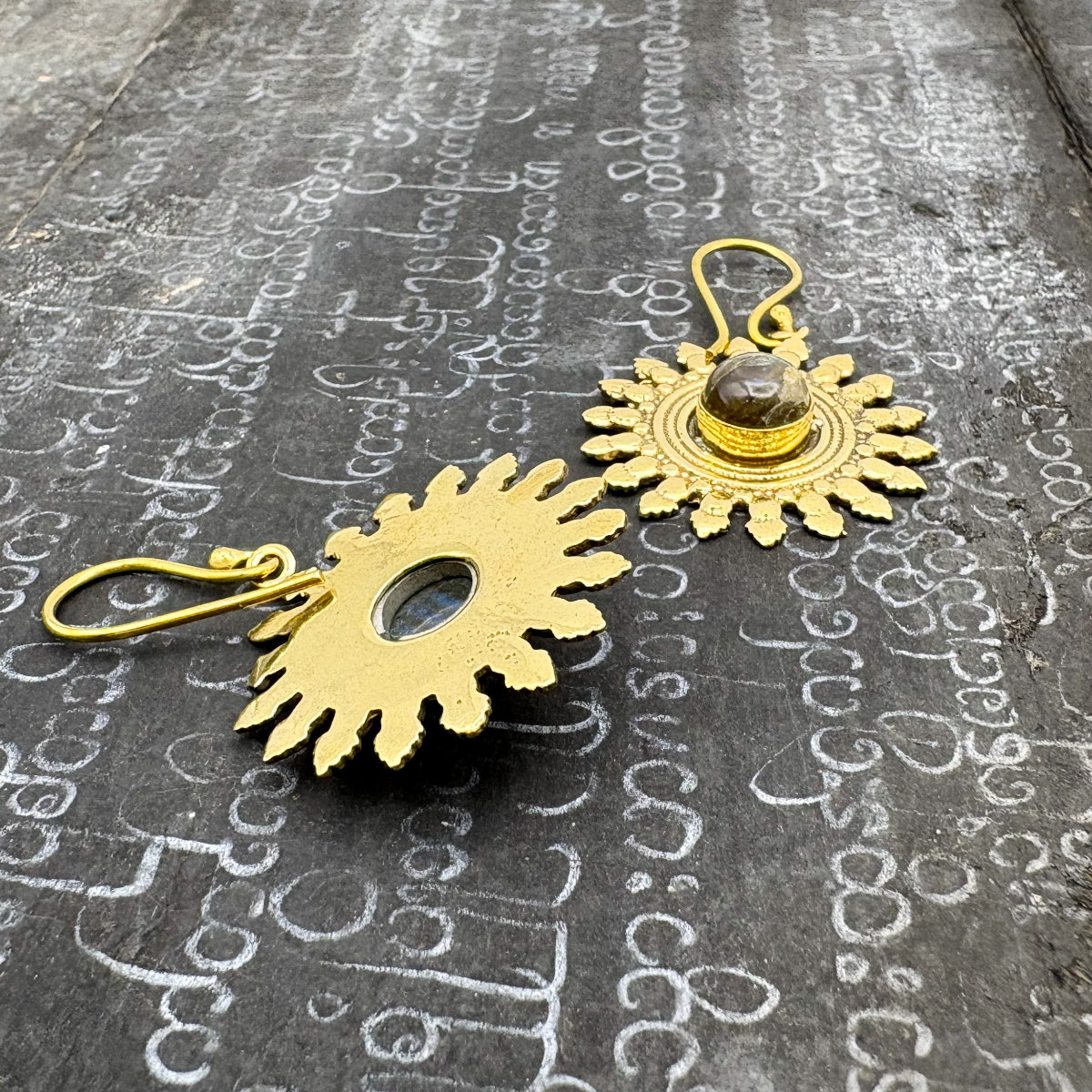 Labradorite (Dark) All The Suns Rays Brass Earrings