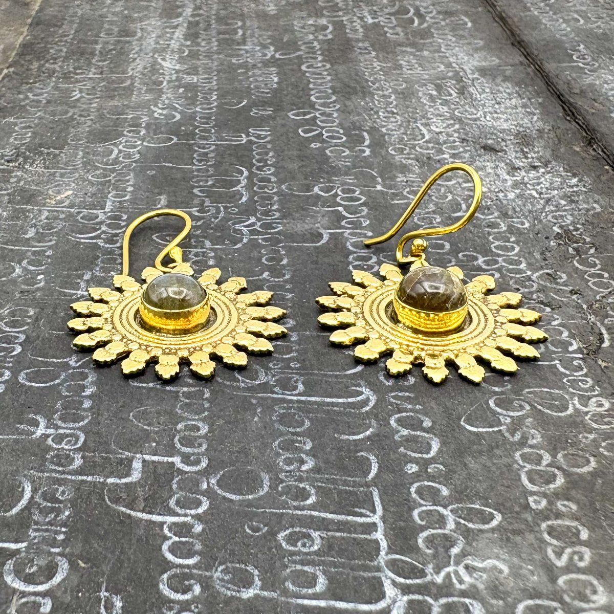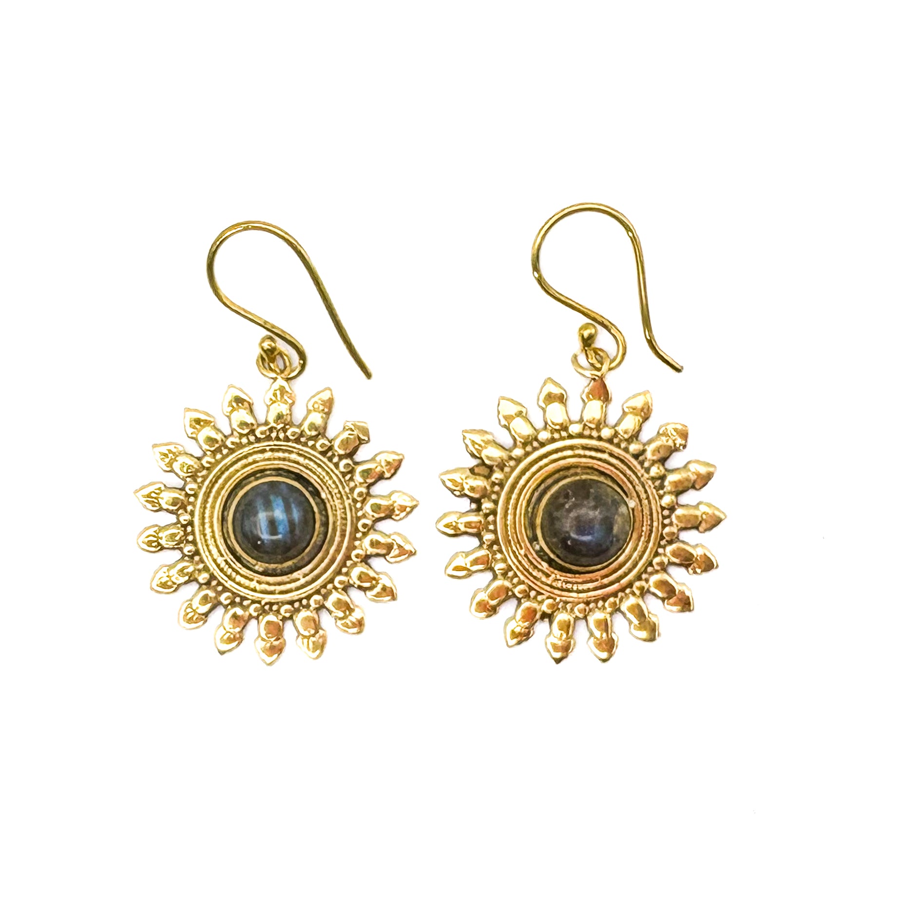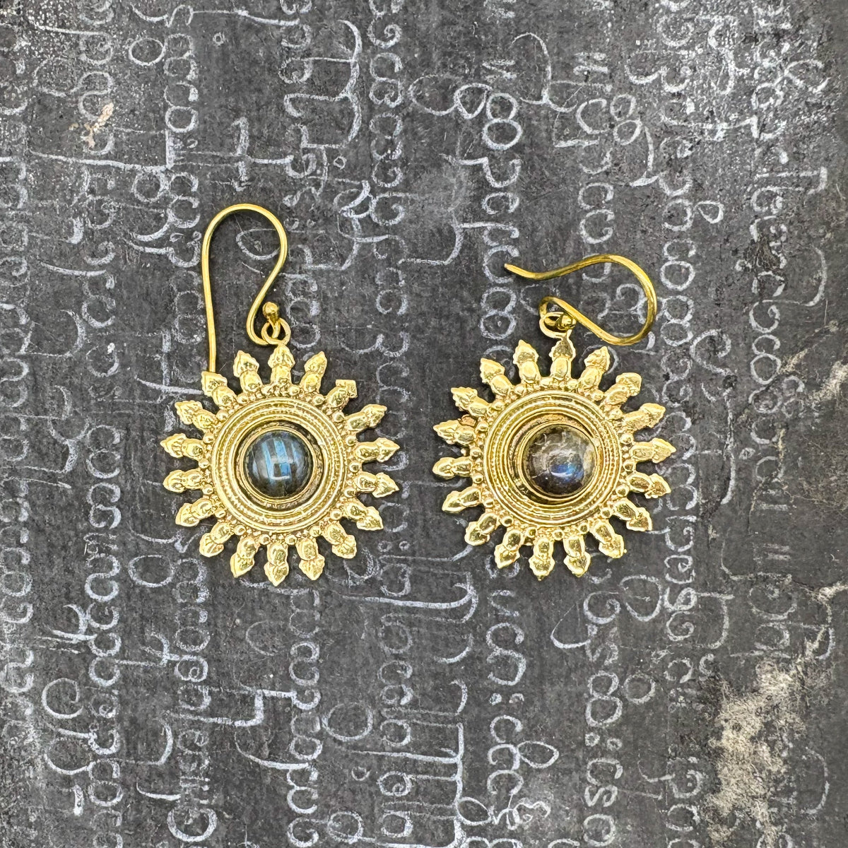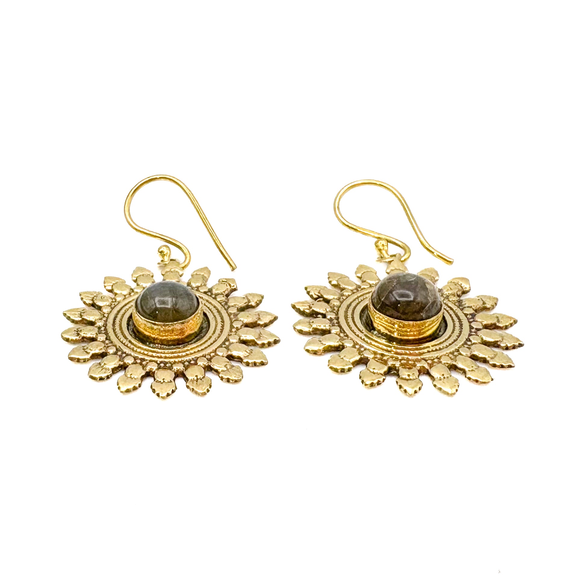 Labradorite (Dark) All The Suns Rays Brass Earrings