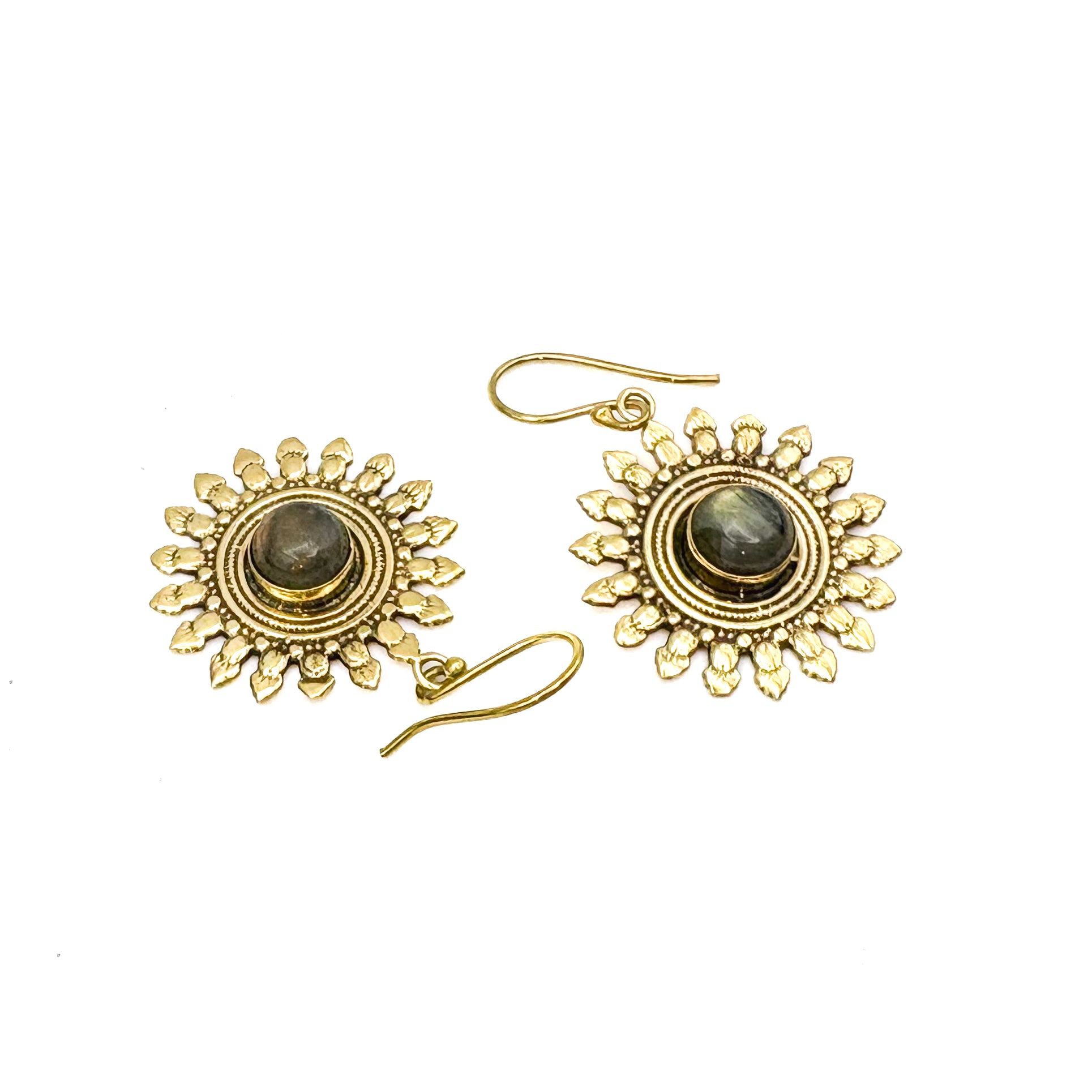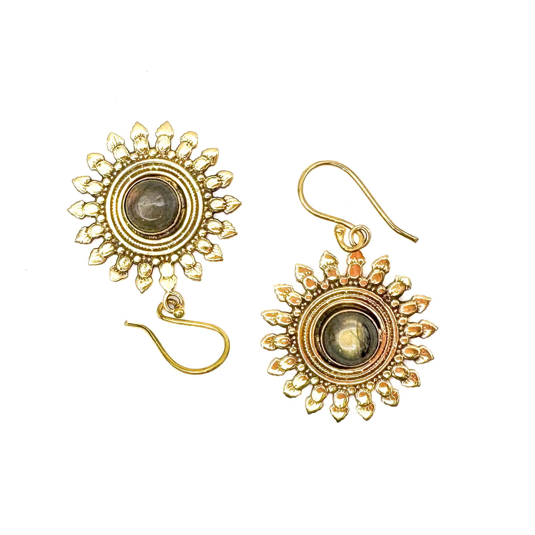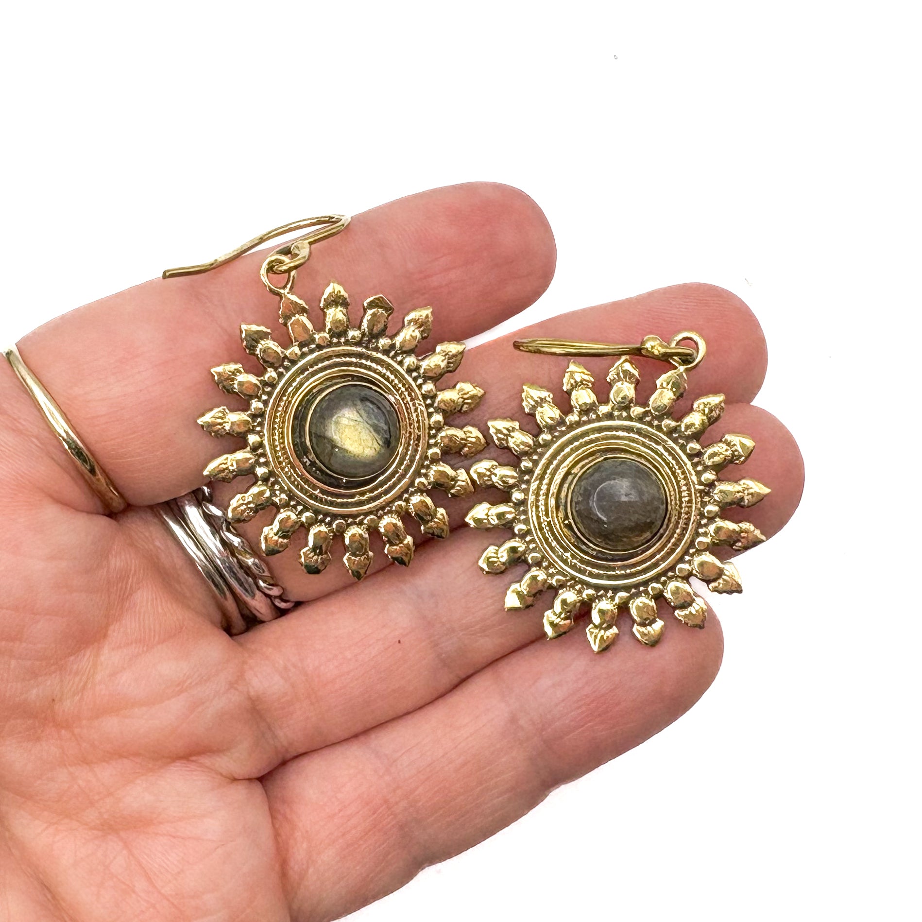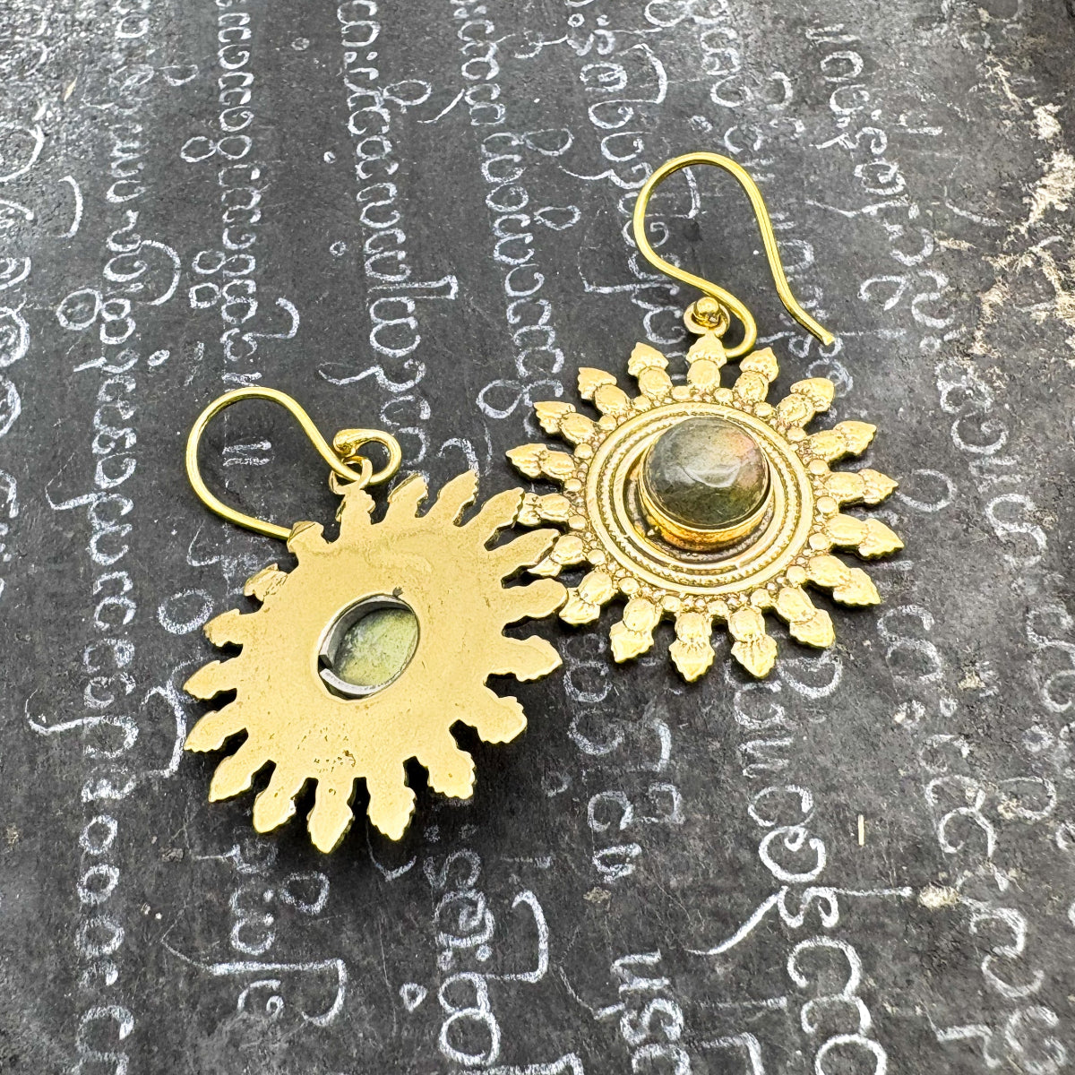 Labradorite (Light) All The Suns Rays Brass Earrings