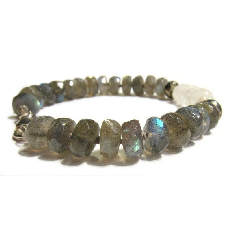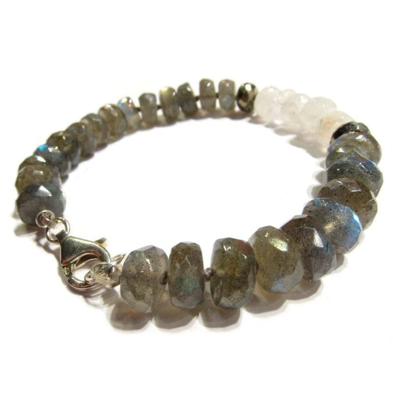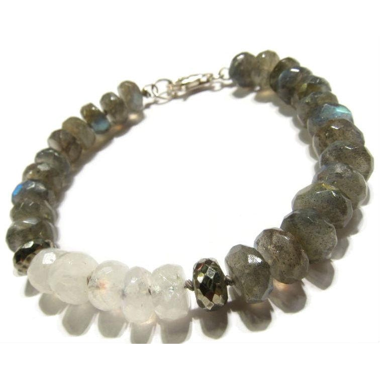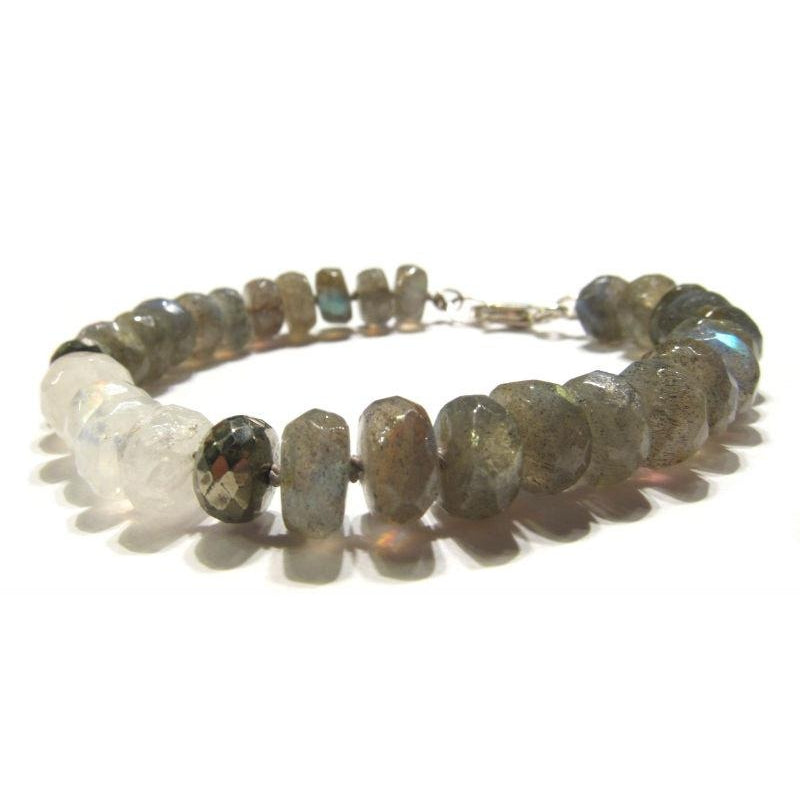 Labradorite, Pyrite and Moonstone Knotted Bracelet with Sterling Silver Trigger Clasp