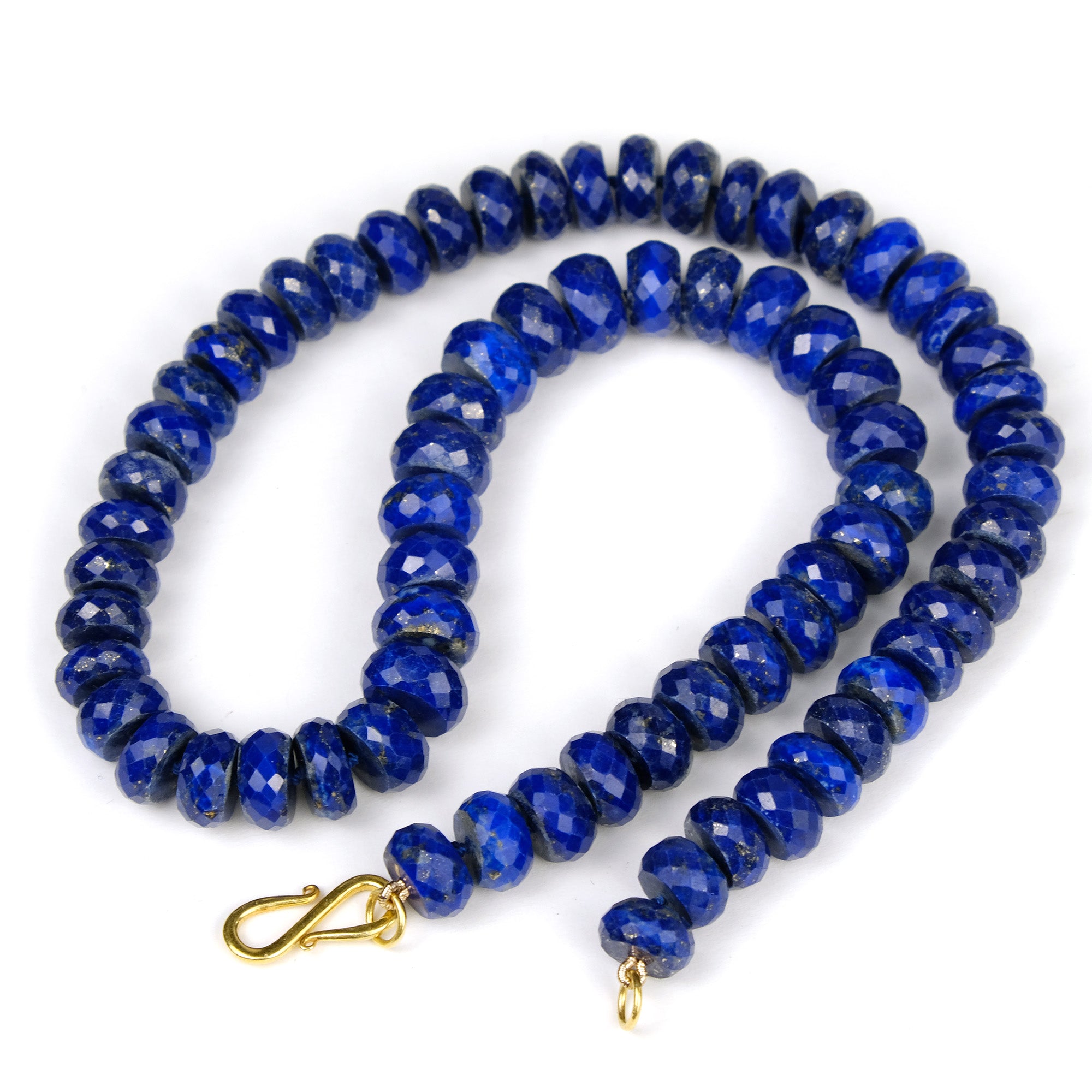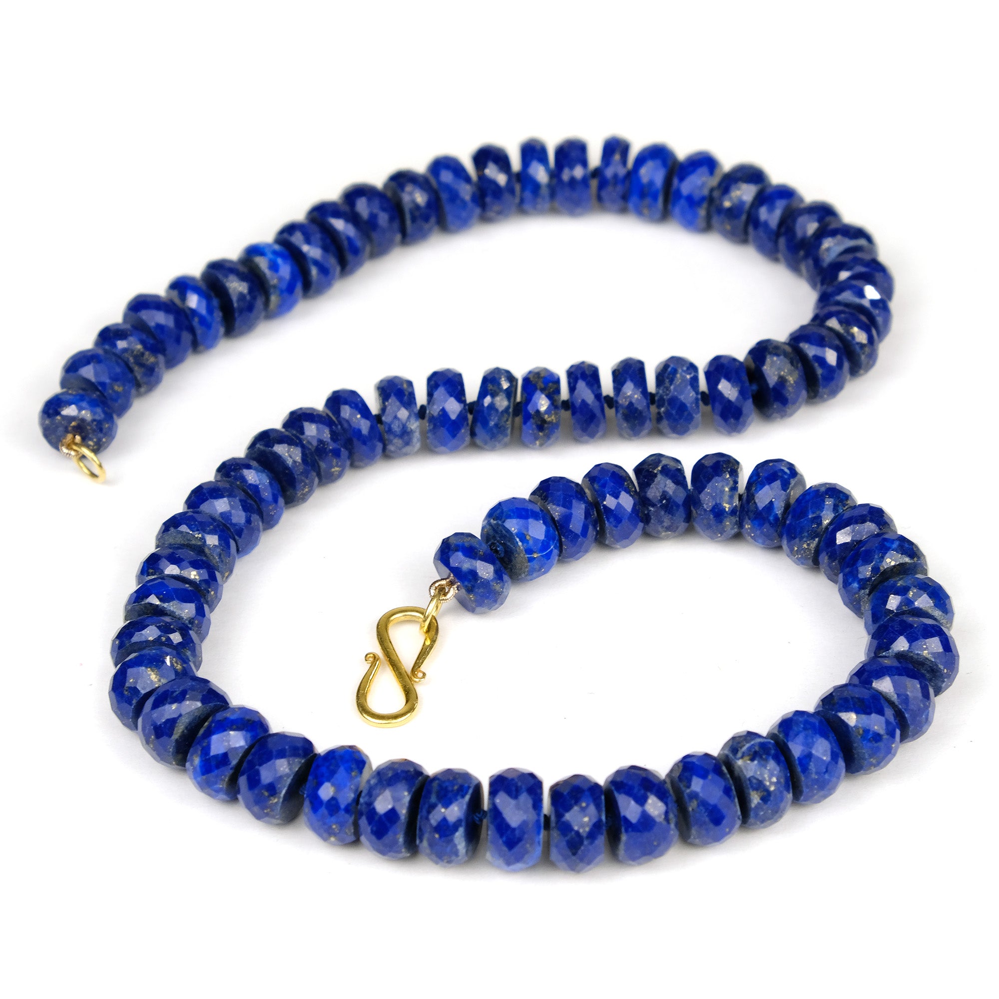 Lapis Lazuli 10mm Faceted Rondelle Knotted Necklace with Gold Plated S Hook Clasp
