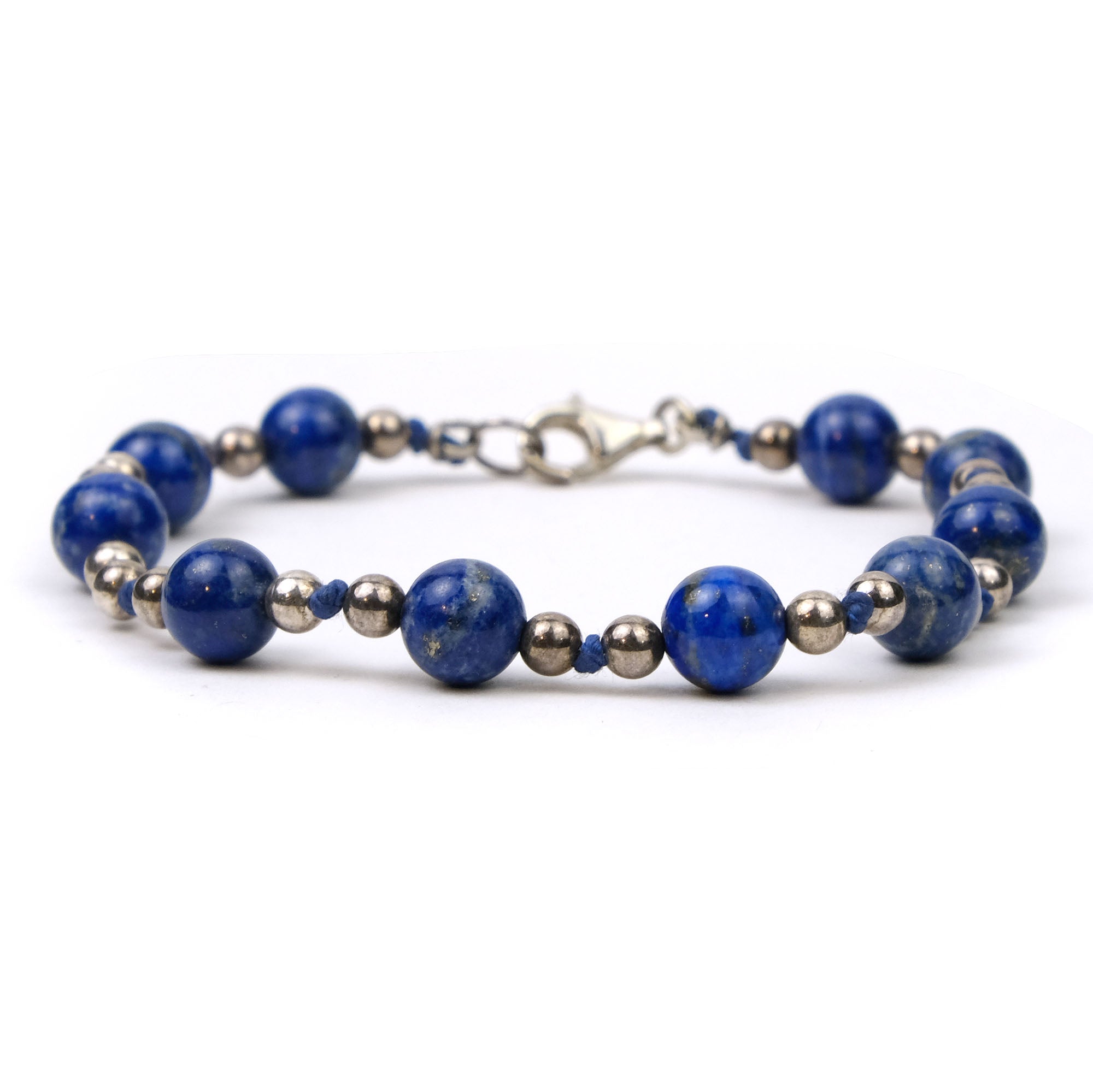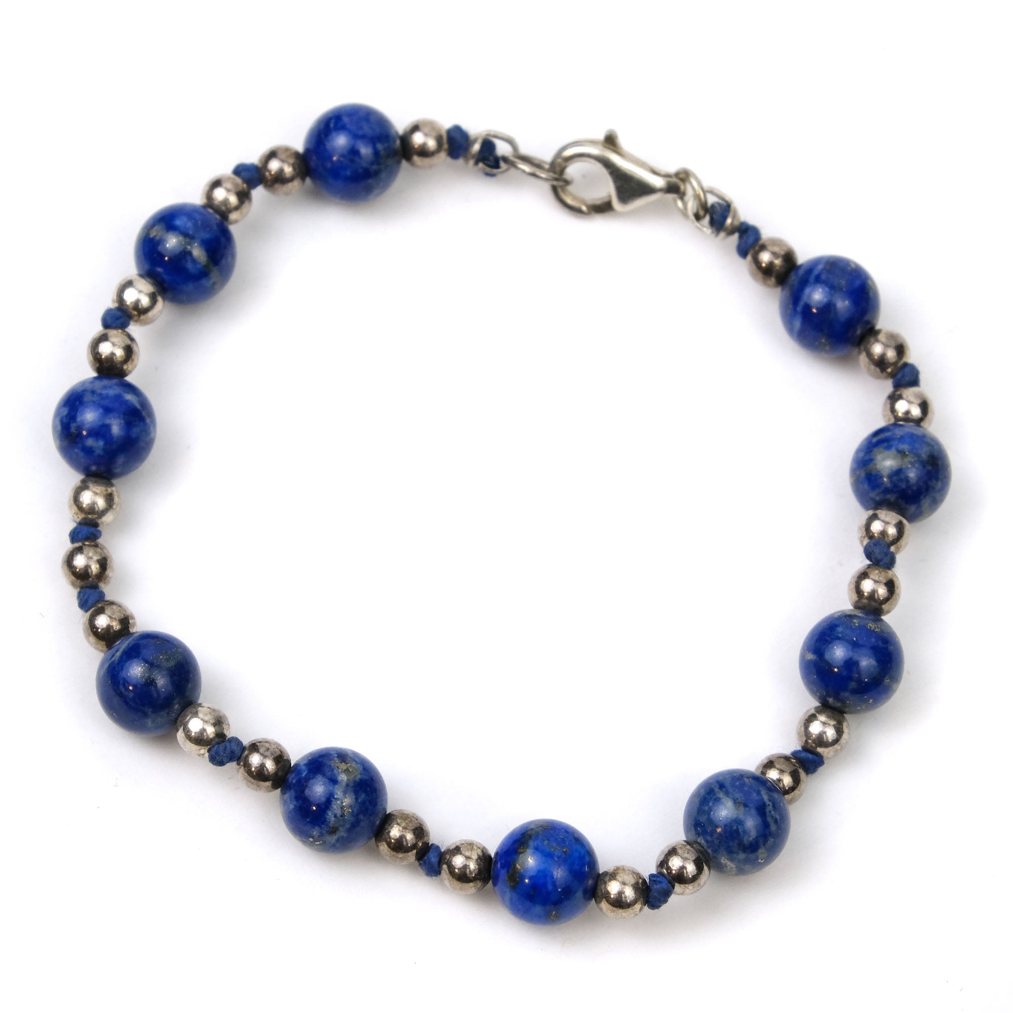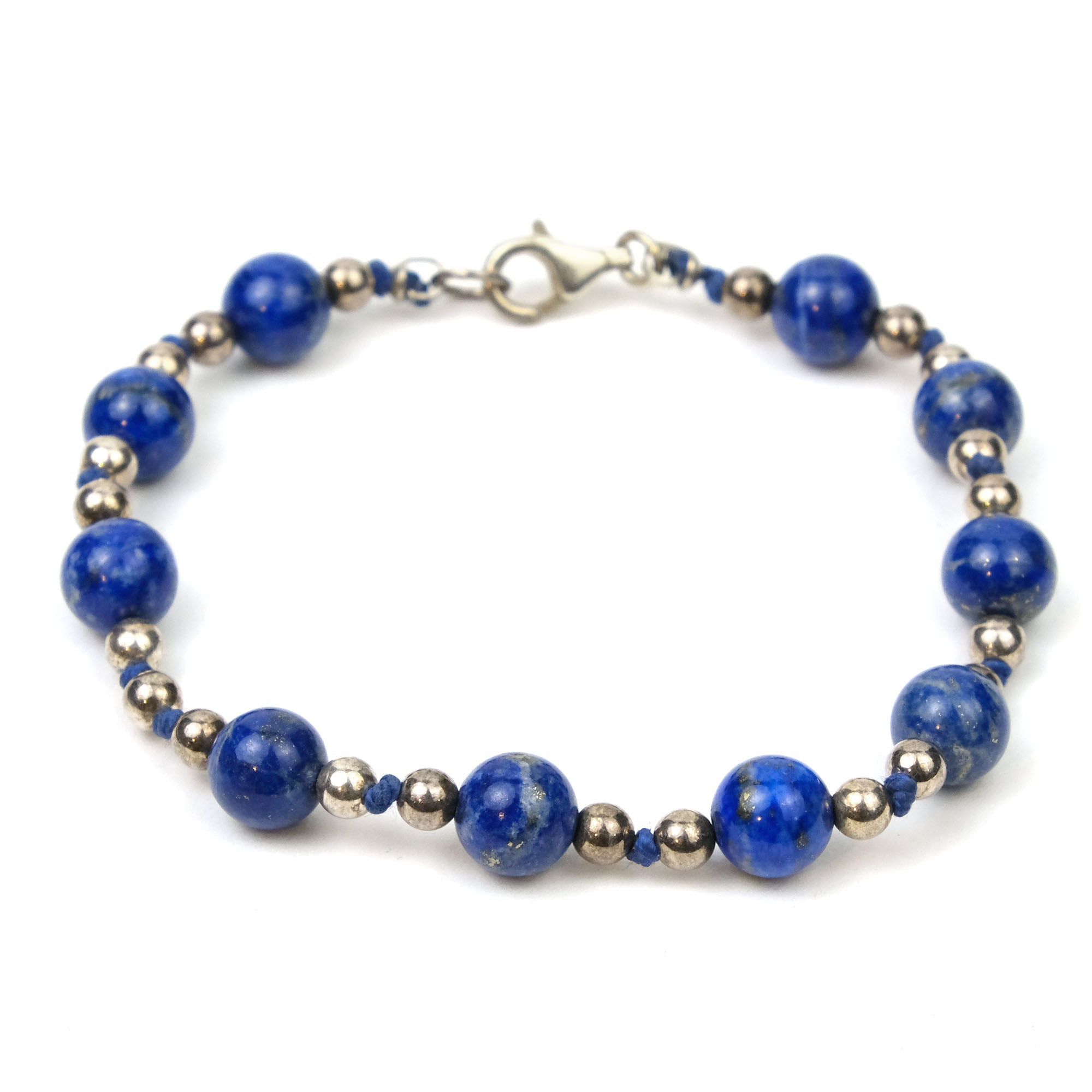 Lapis Lazuli and Sterling Silver Knotted Bracelet with Sterling Silver Trigger Clasp