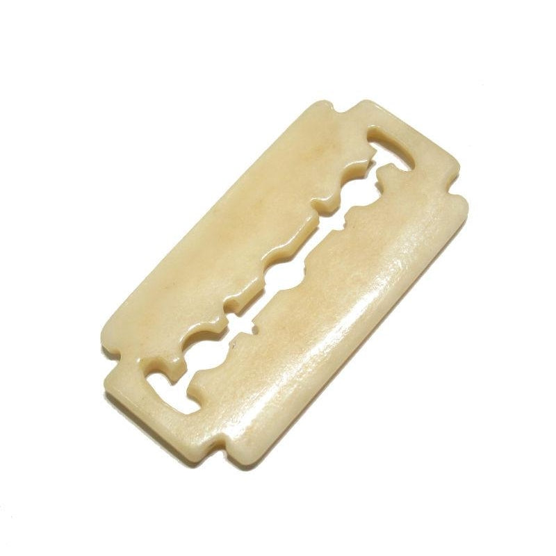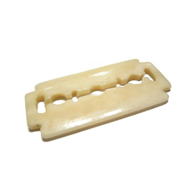 "A Non-Hazardous" Safety Razor Blade Hand Carved Cow Bone Bead Pendant