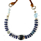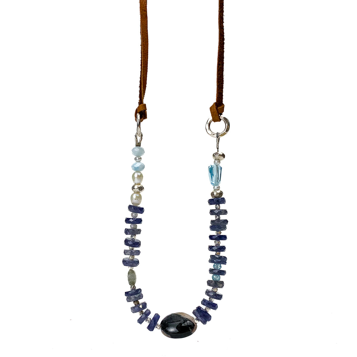 Iolite, Chaorite, Aquamarine, Larimar, Freshwater Pearl Leather Necklace #2