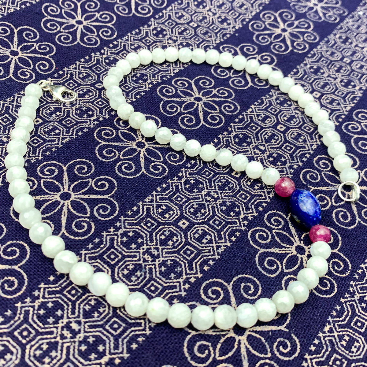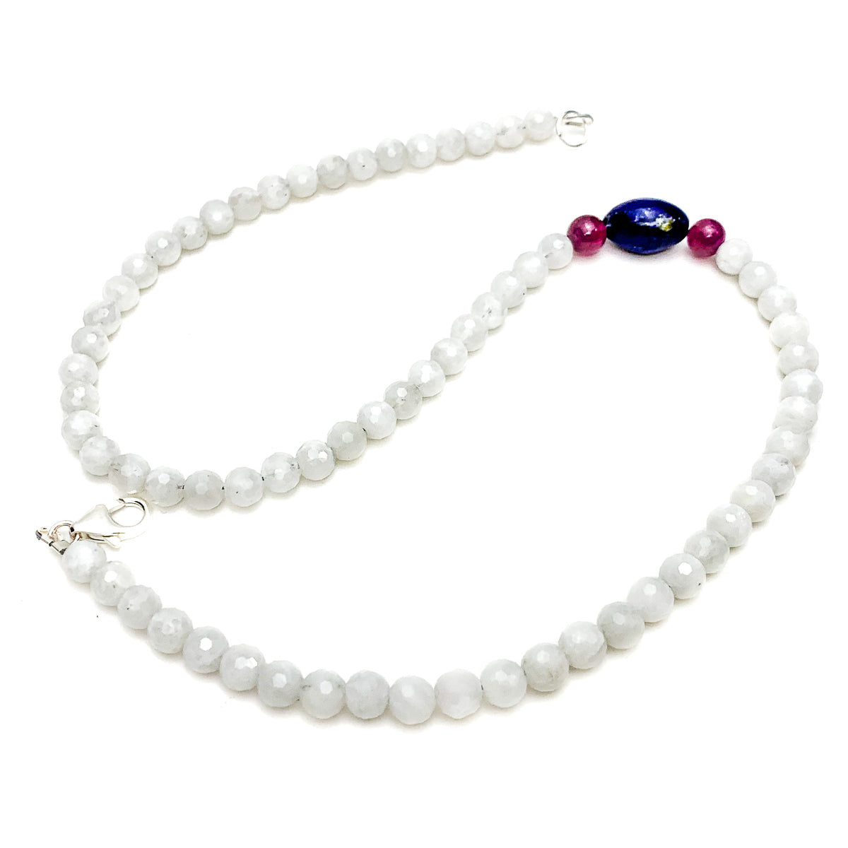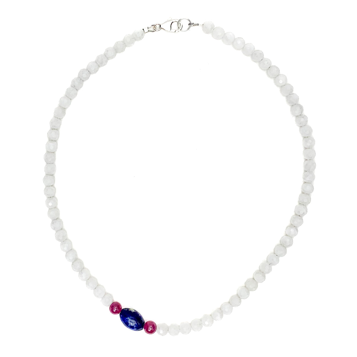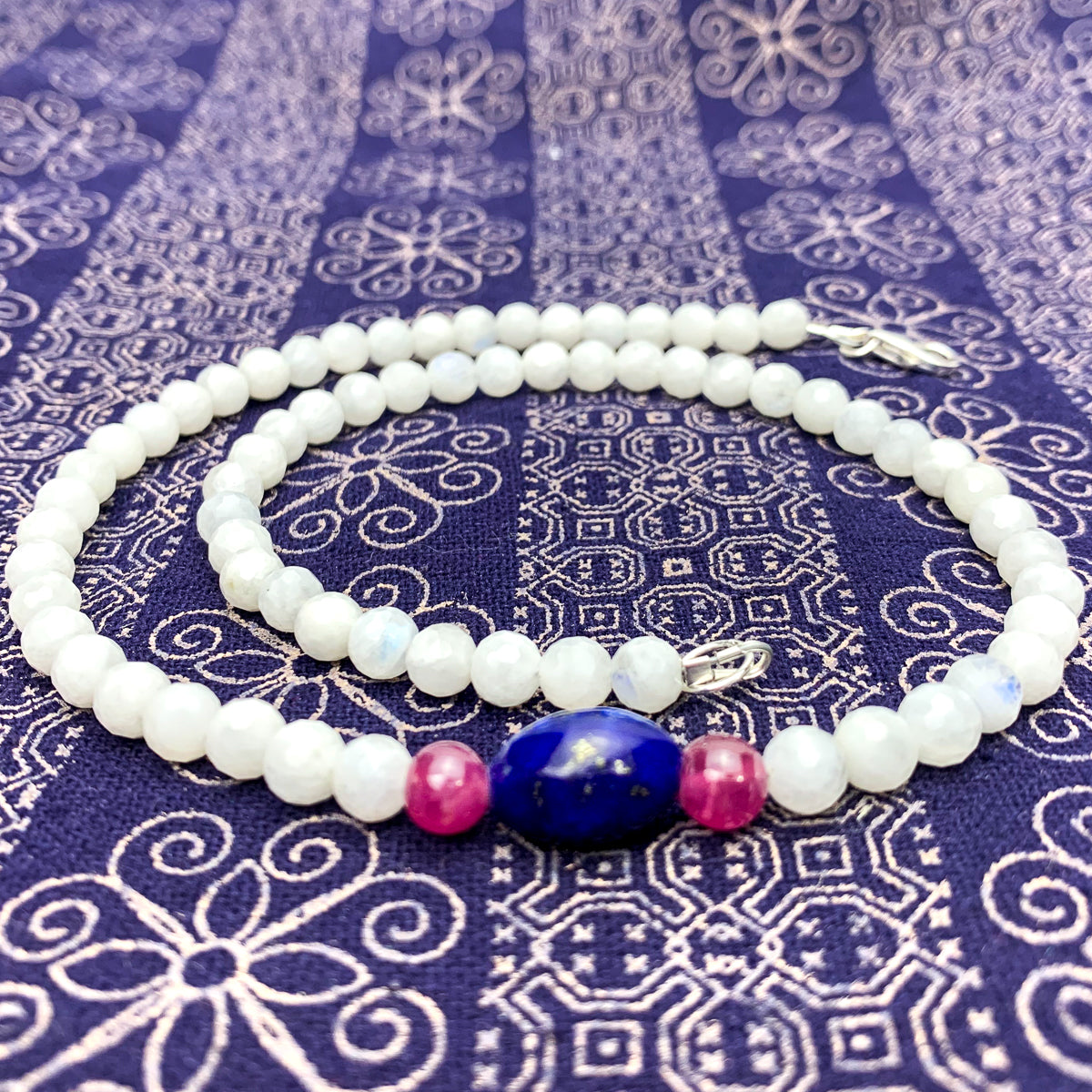 Moonstone, Lapis Lazuli and Pink Sapphire Necklace With Sterling Silver Trigger Clasp