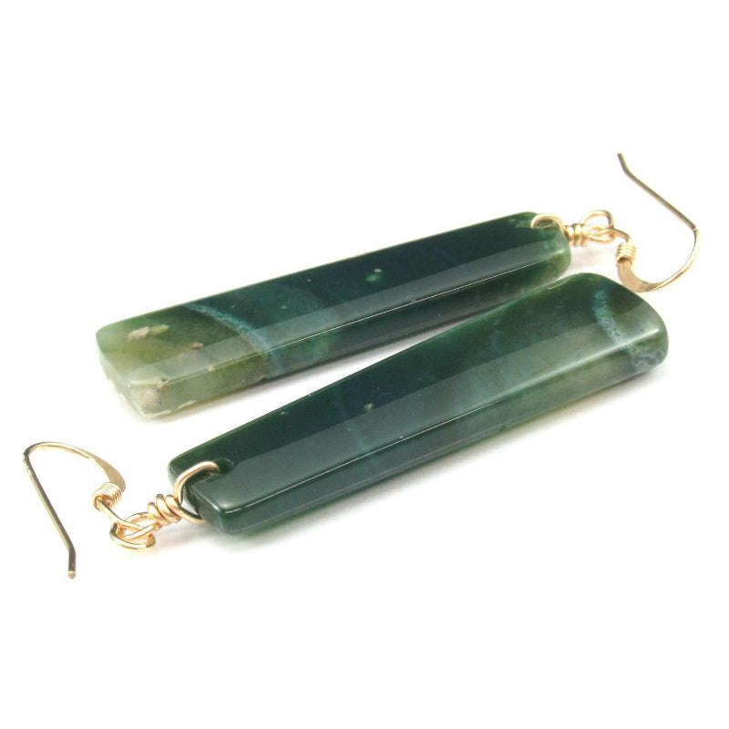 Moss Agate Earrings with Gold Filled French Ear Wires