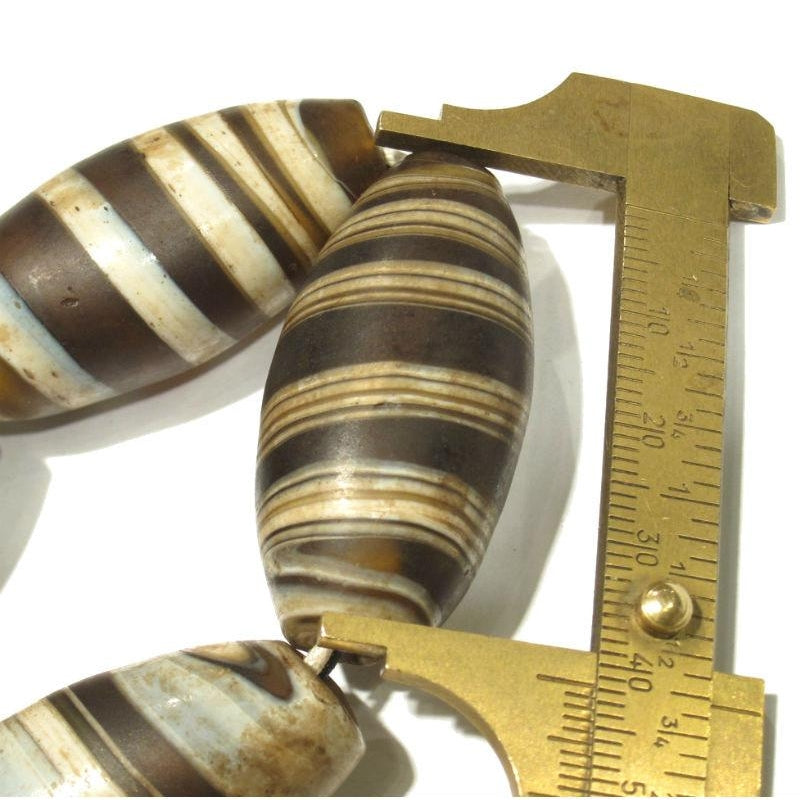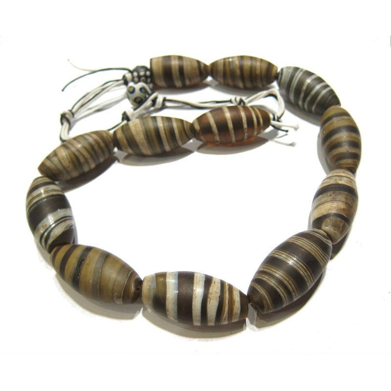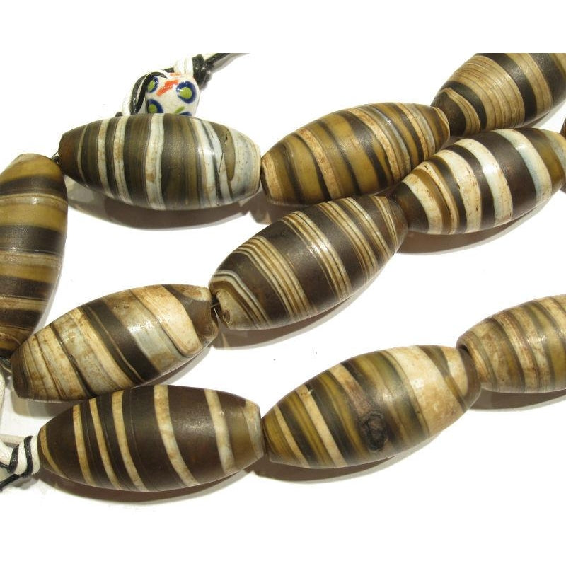 Glass "Dzi Style Banded Agate" Honey Toned Barrel Beads / Necklace