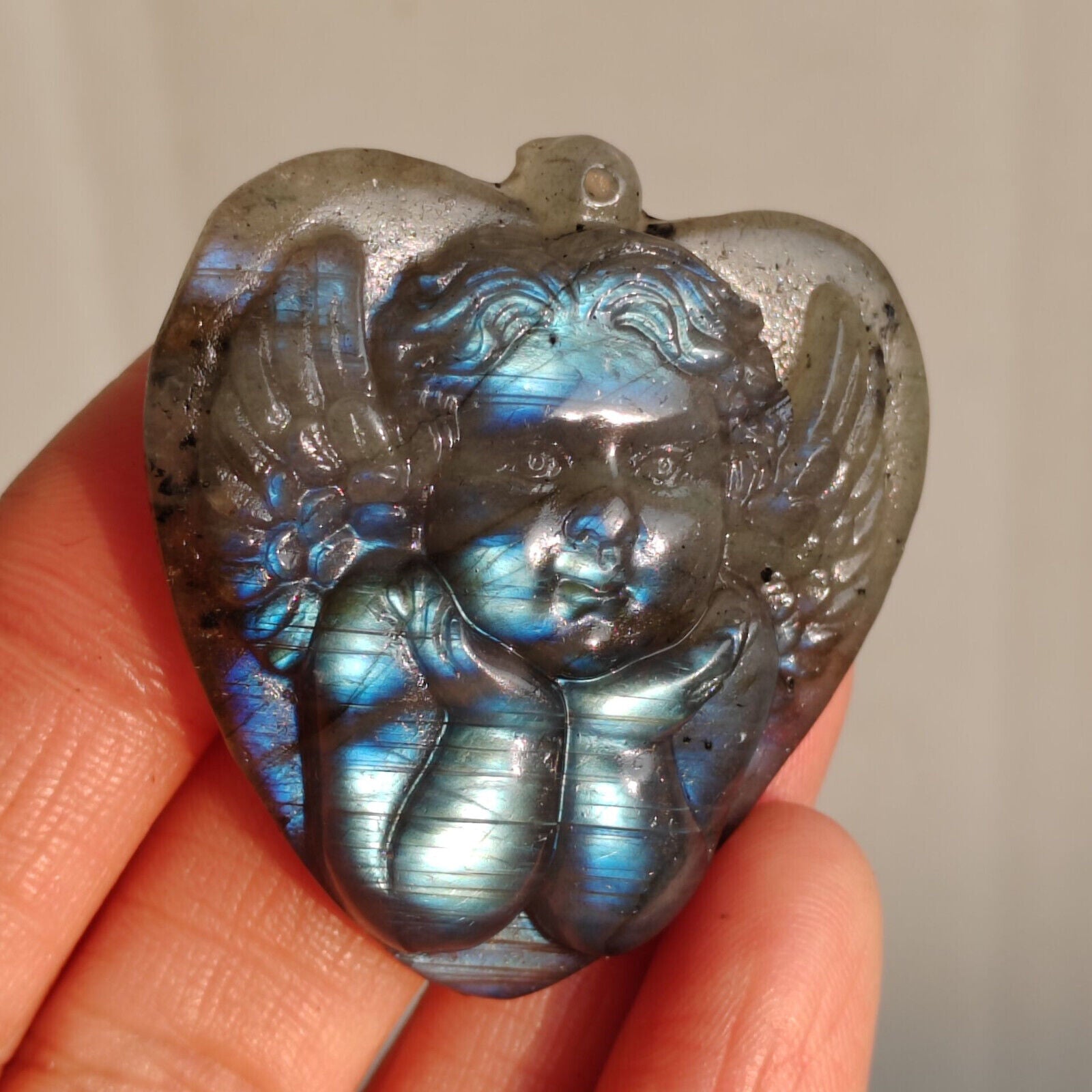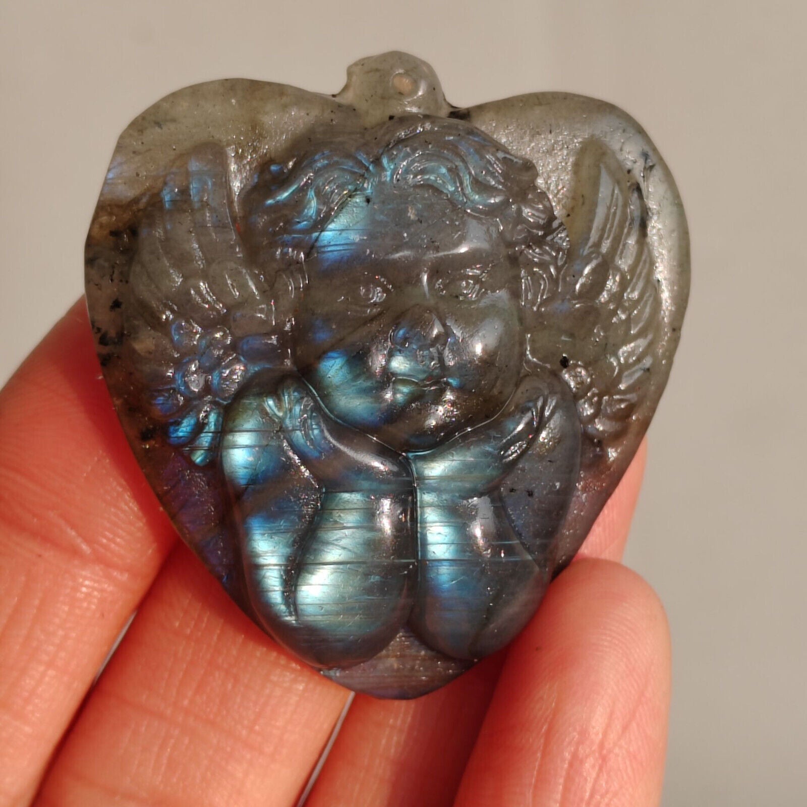 • Natural Crystal Labradorite Handmade Sculpture Angel