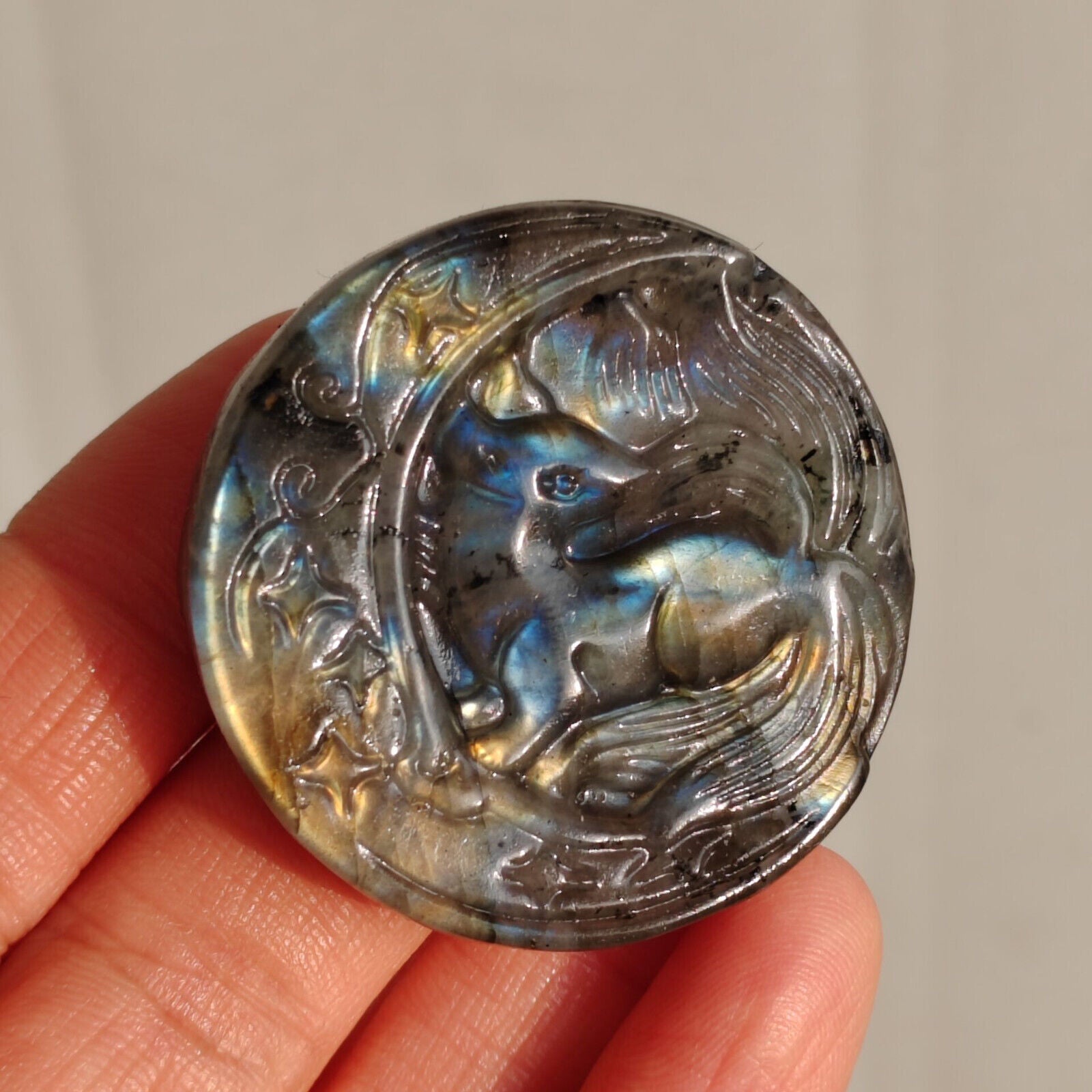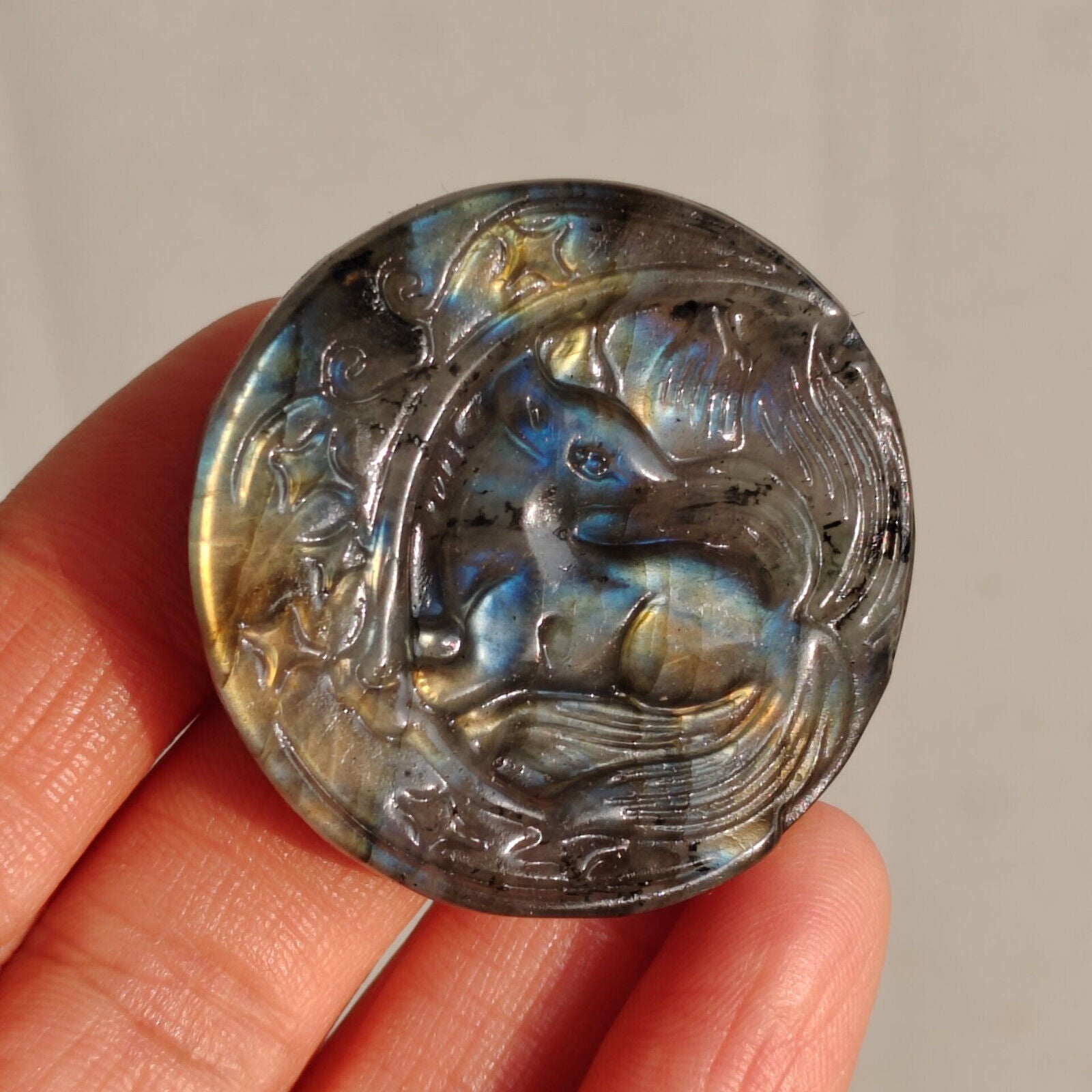 • Natural Crystal Labradorite Handmade Sculpture Fox