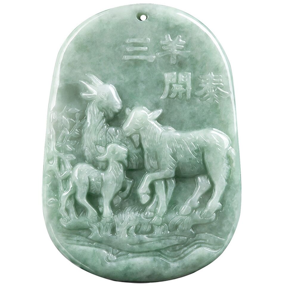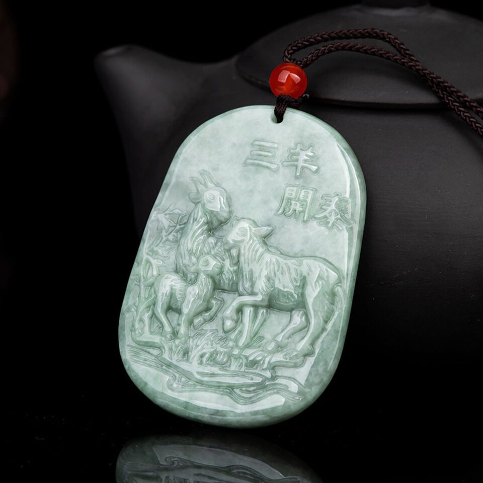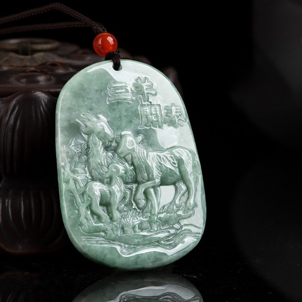 Natural Grade A Jade Jadeite Men Women Gift Lucky Zodiac Three Sheep Pendant
