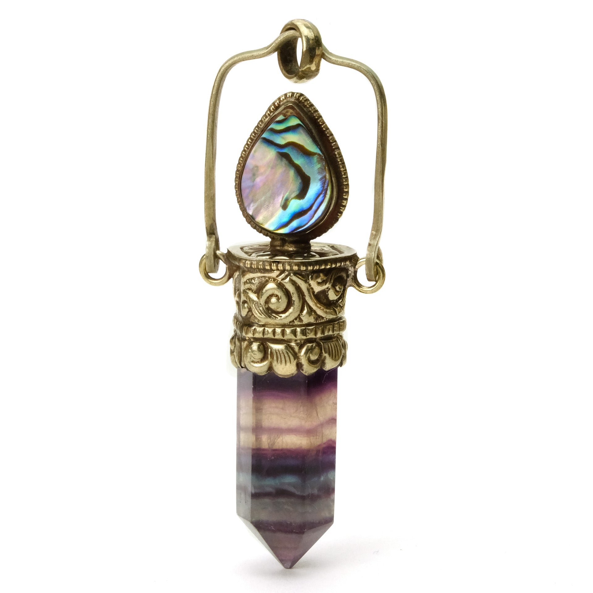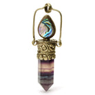 Fluorite Rainbow Obelisk Swing Pendant with Fine Abalone Cabochon # 76 -1