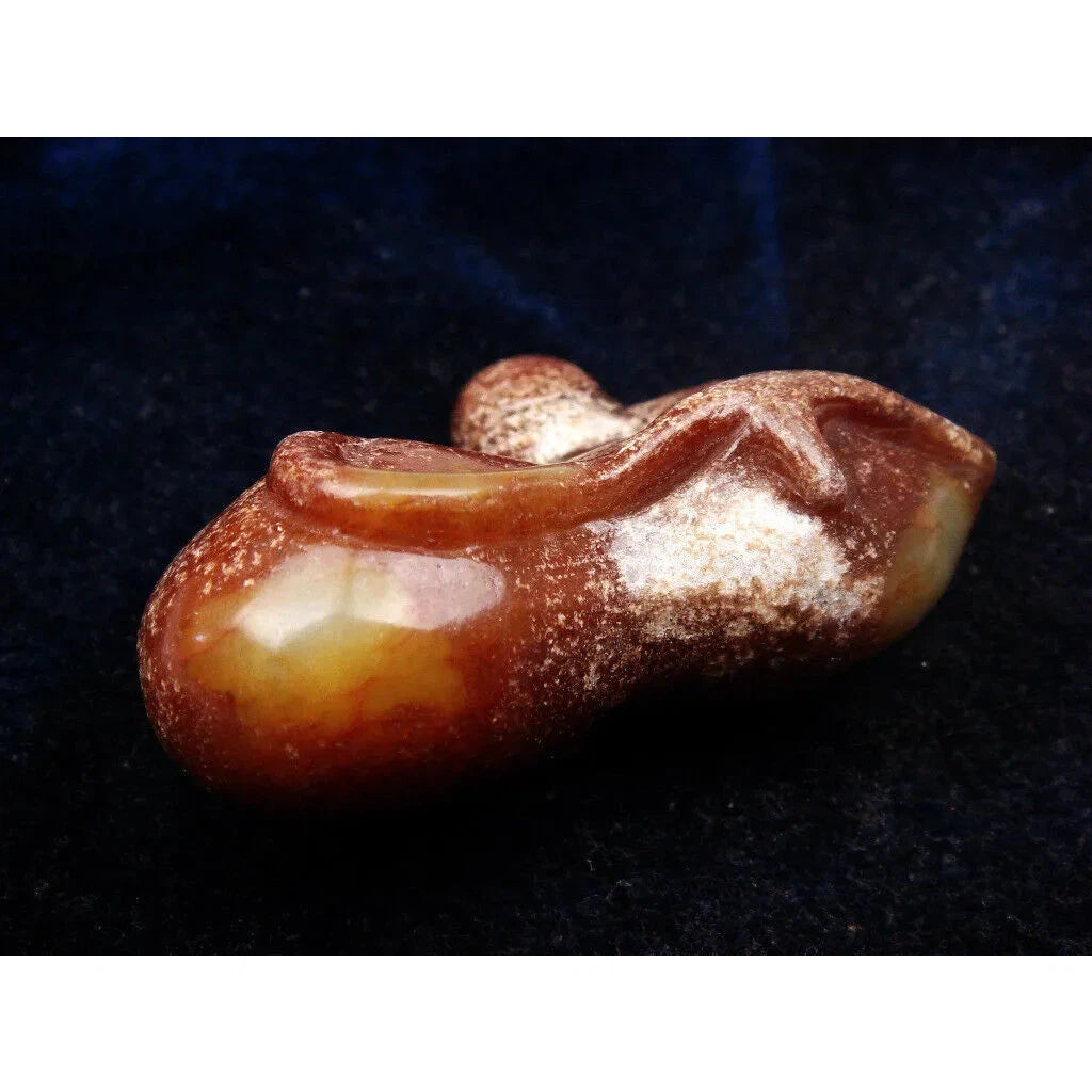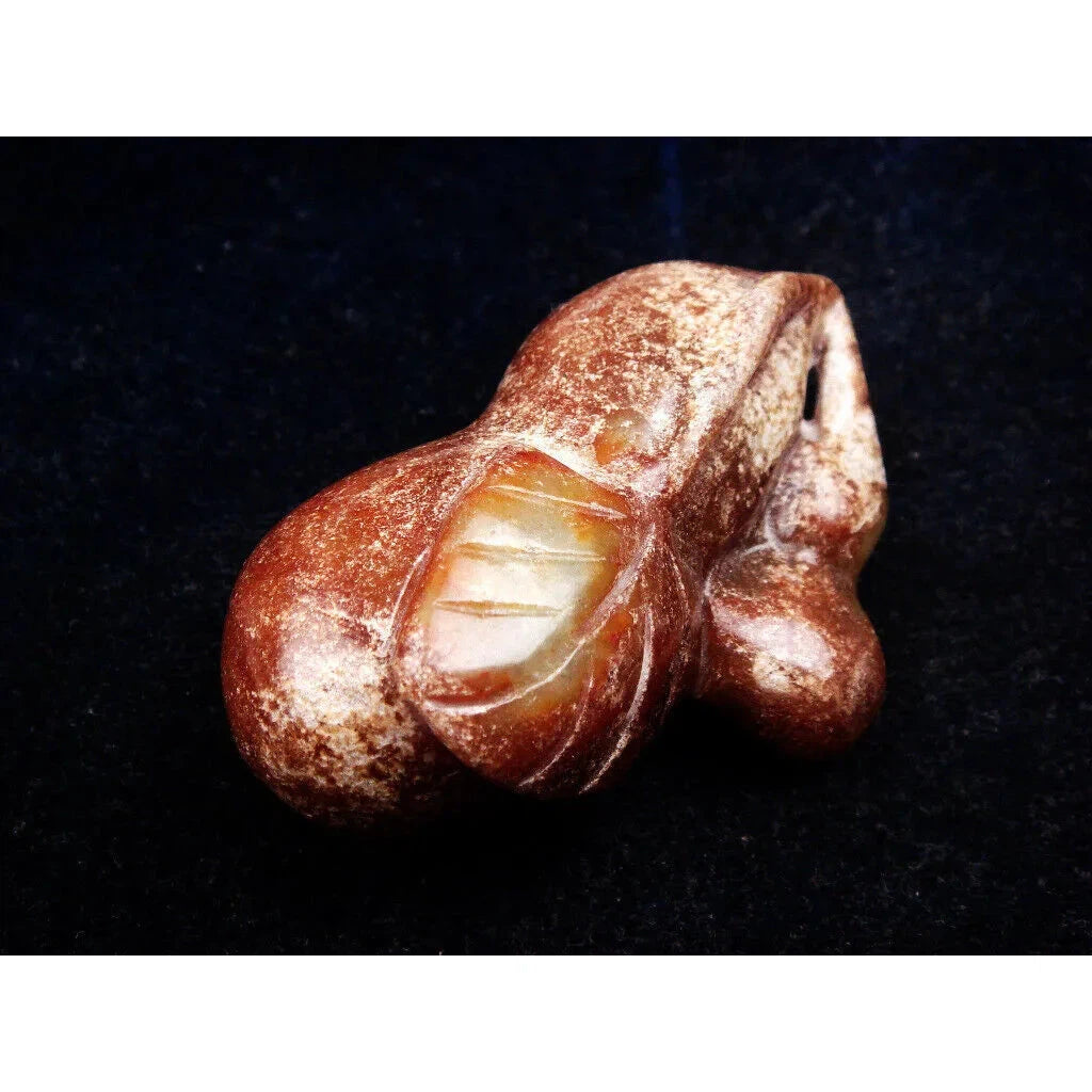 Old Nephrite Jade Carved Bottle Gourd & Baby Gourd w/ Leaf