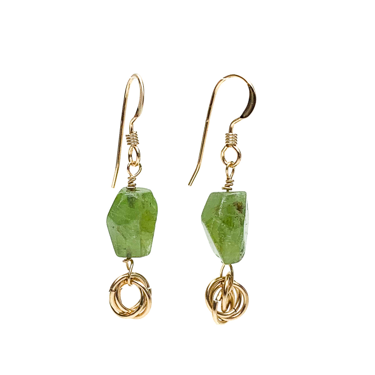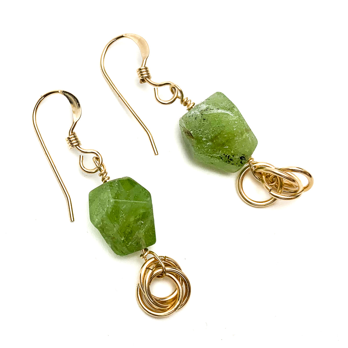 • Peridot Faceted Chunk Drop Earrings with Gold Filled Ear Wires