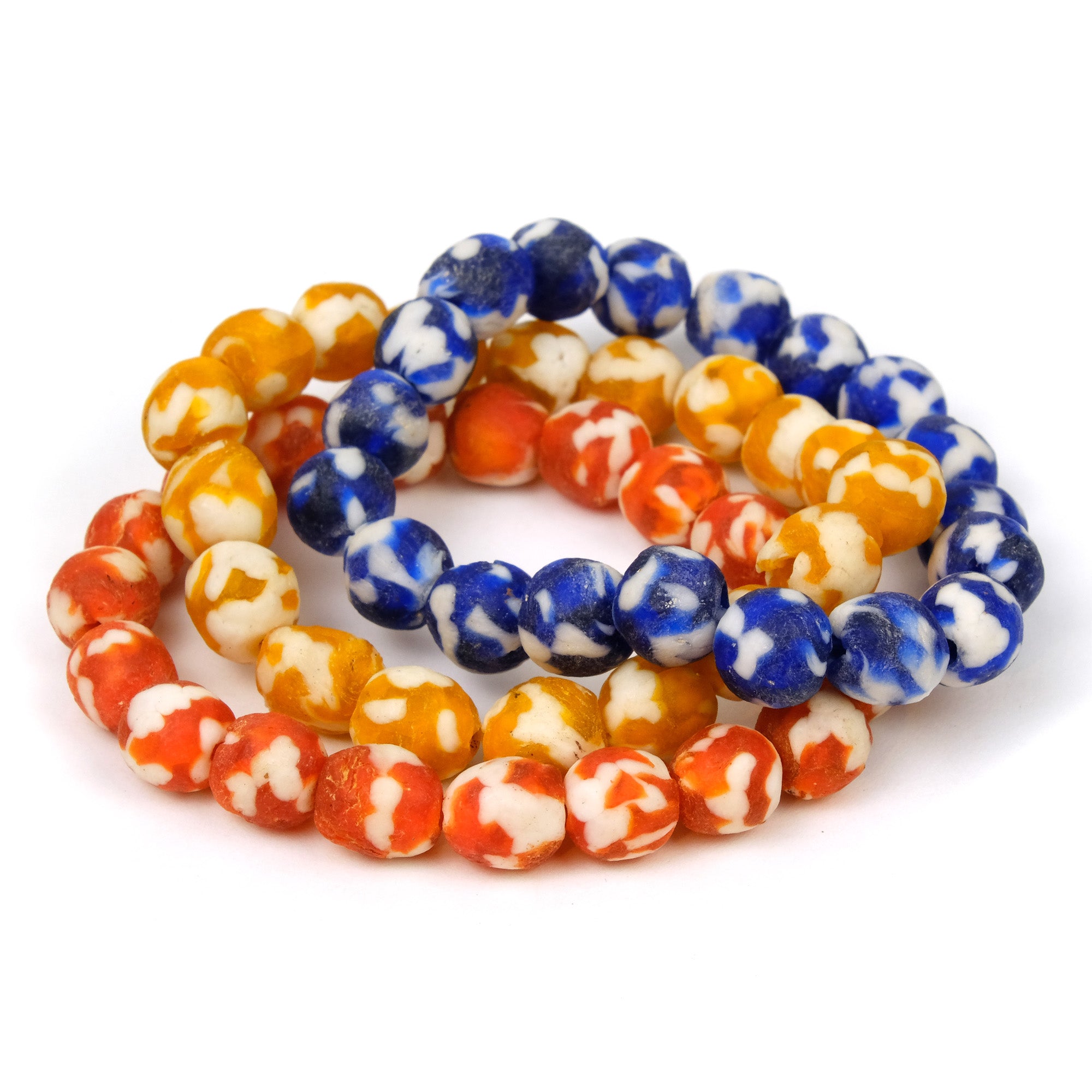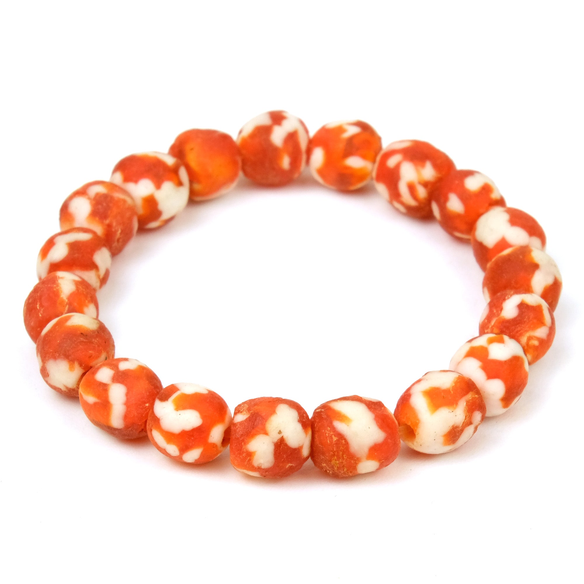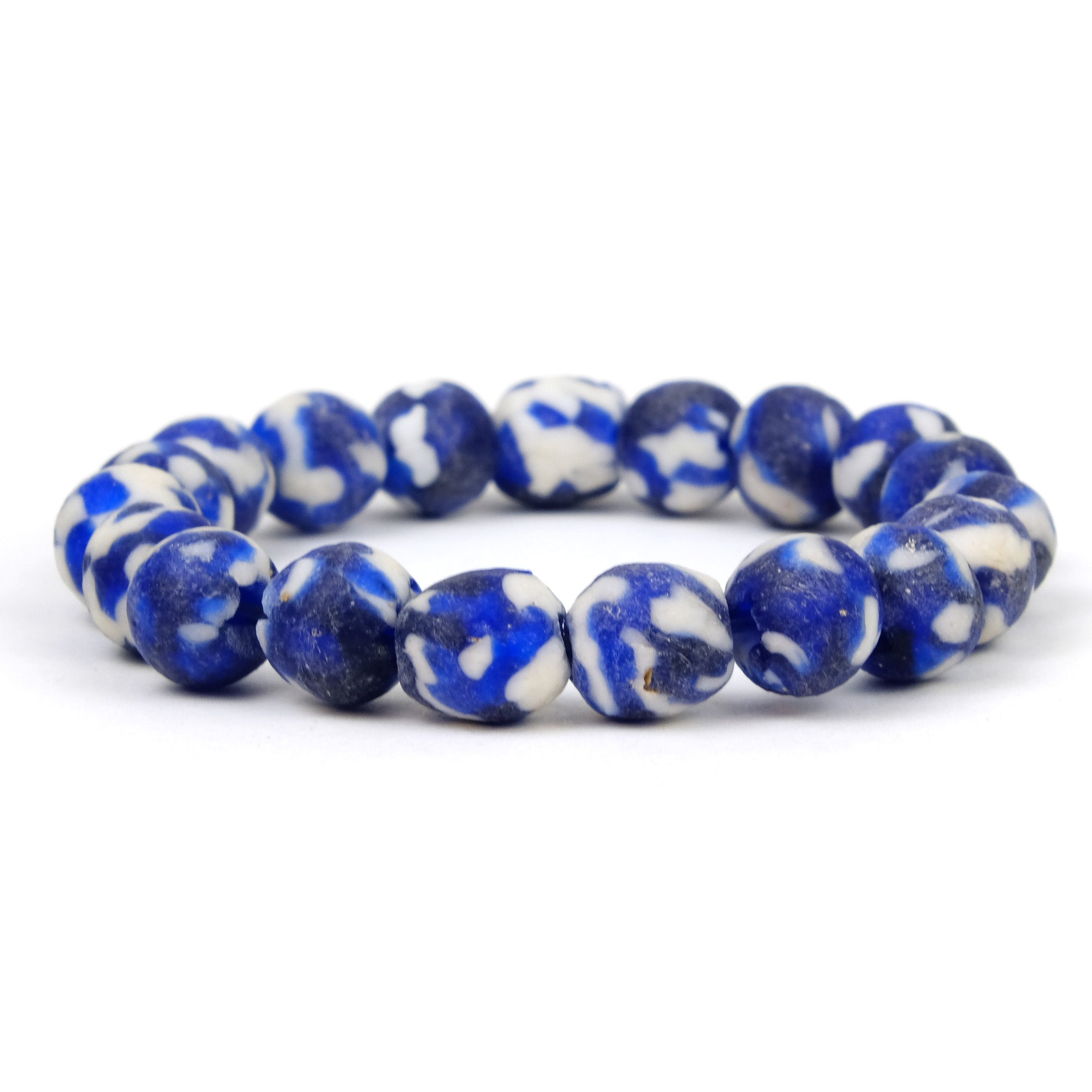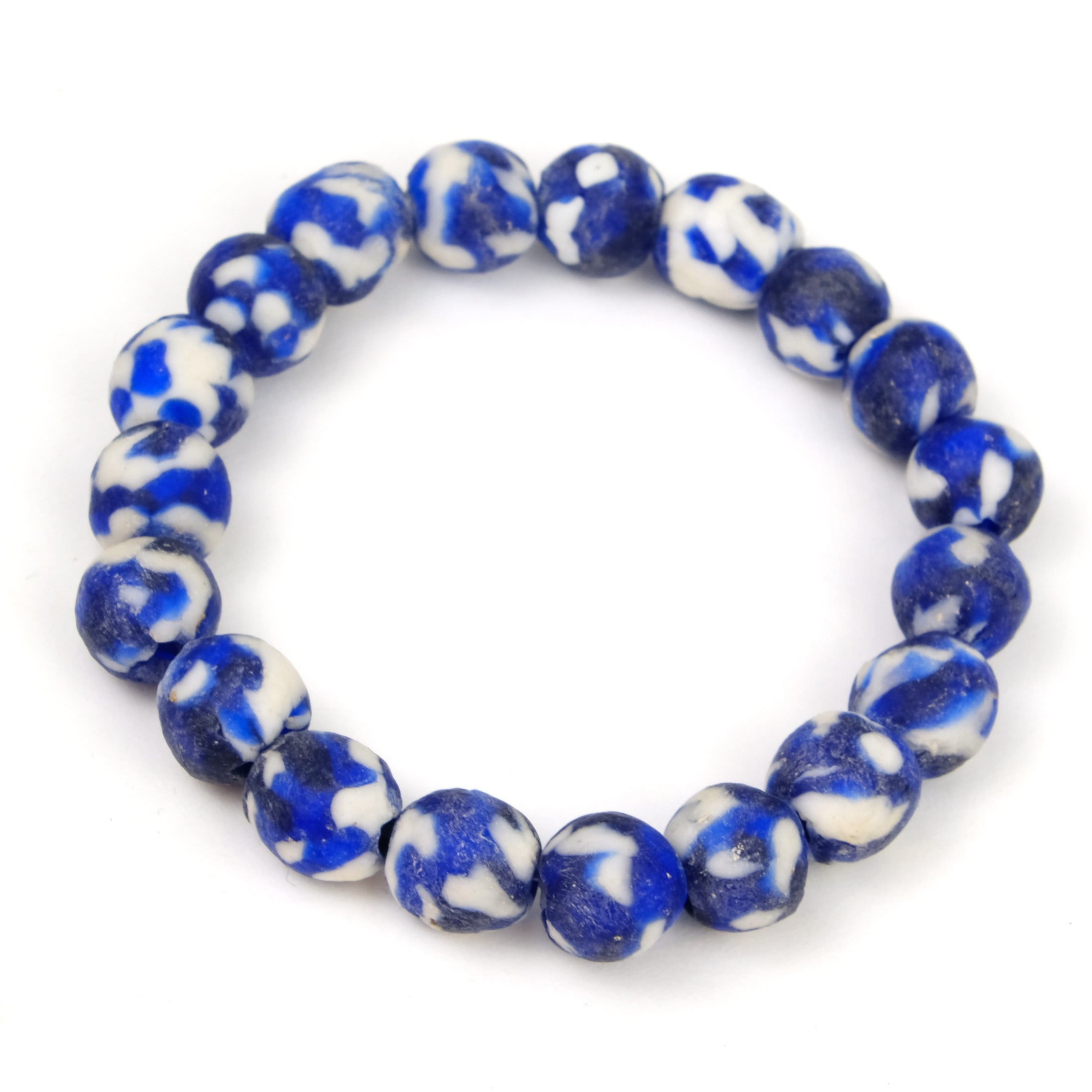 Hand Cast Marbled Powder Glass Bead Stretch Bracelet