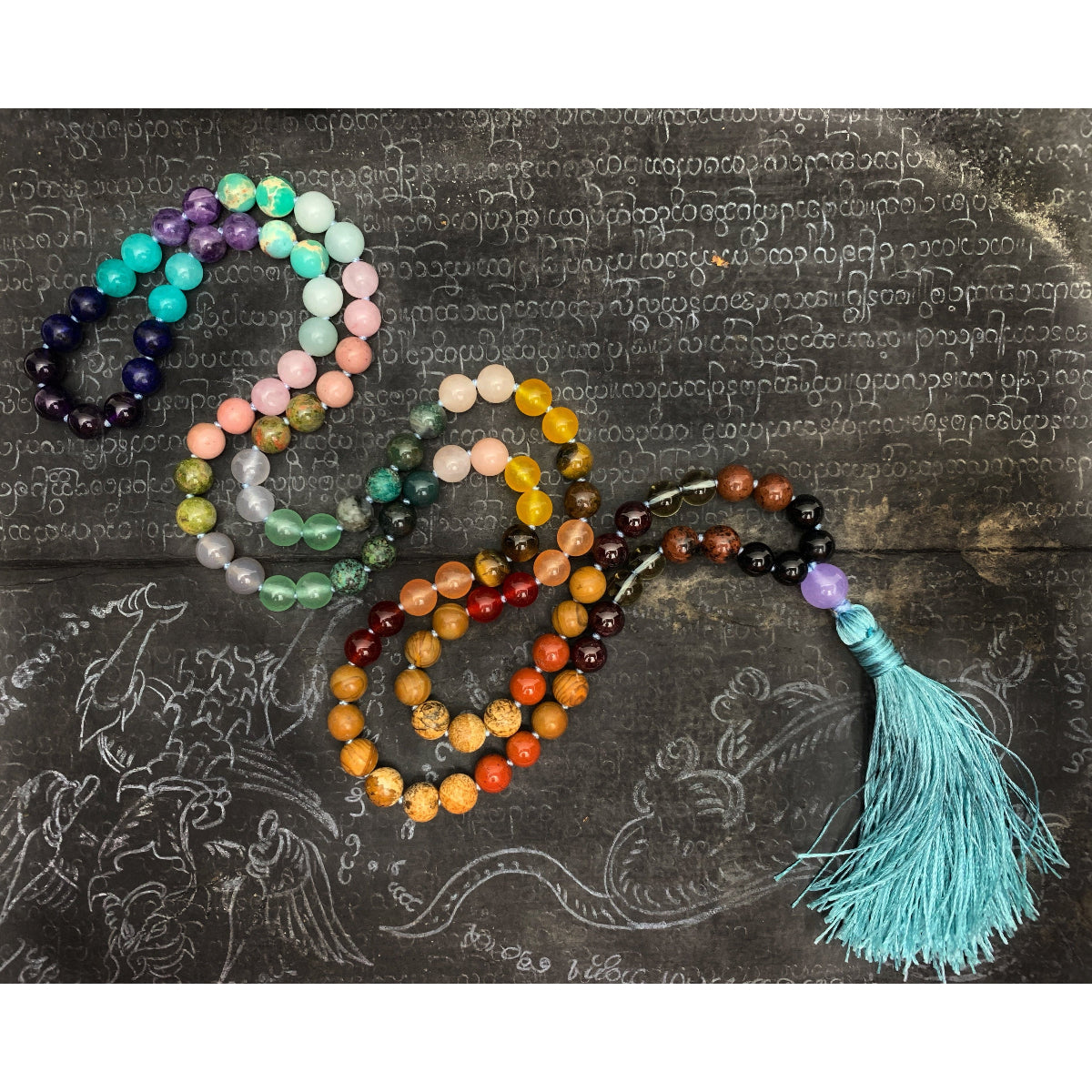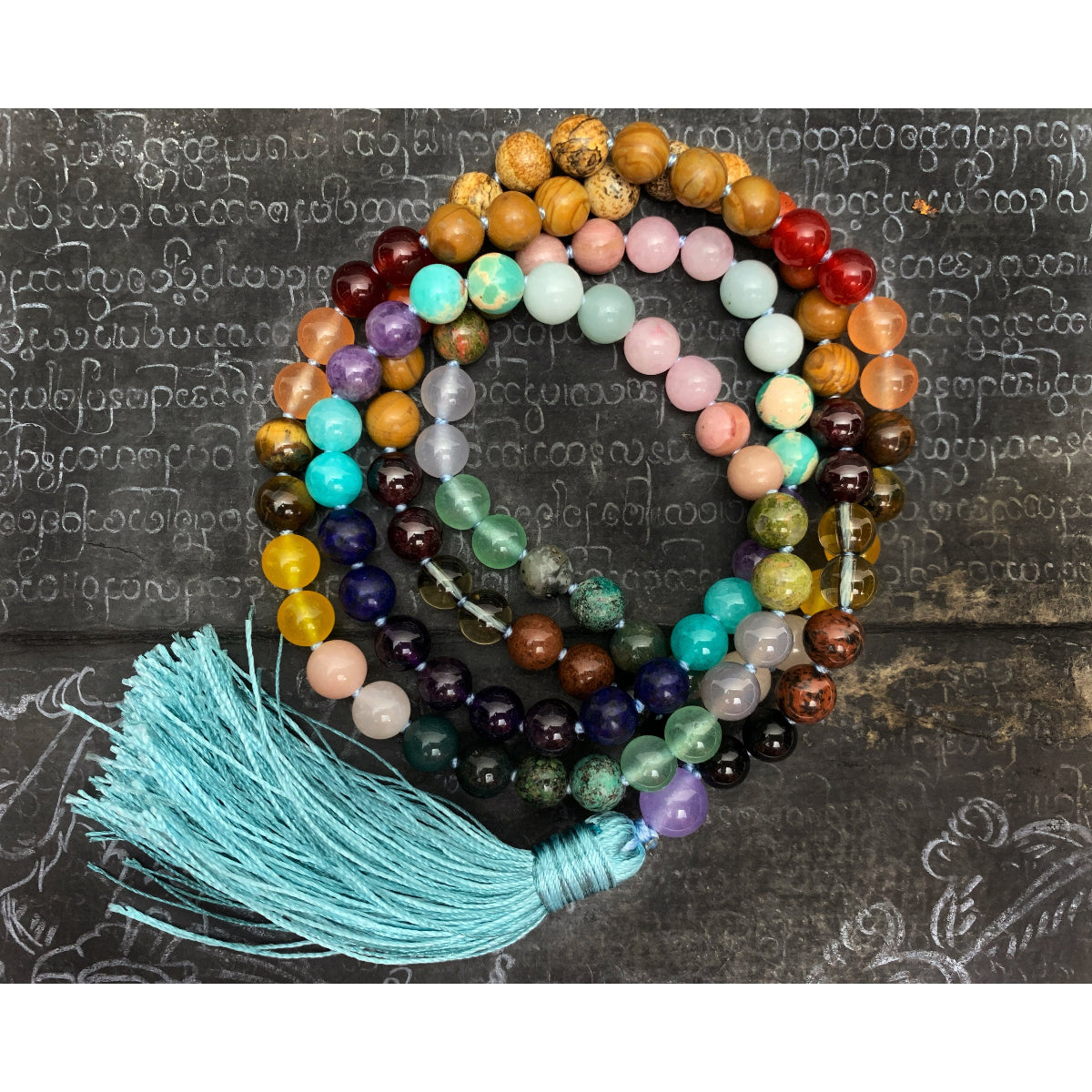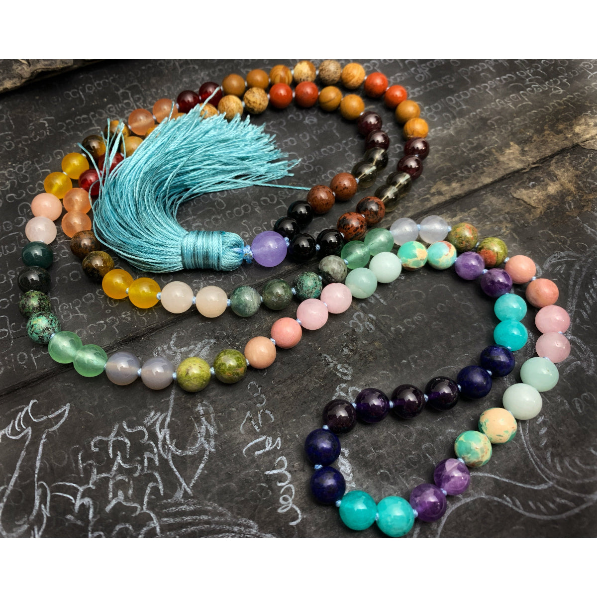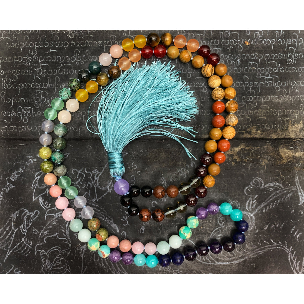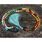 Rainbow Gemstone 8mm Knotted Mala with Silk Tassel # 64