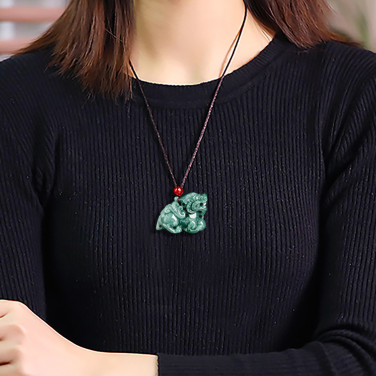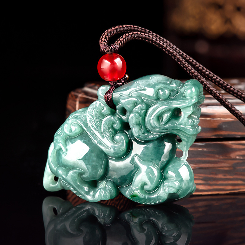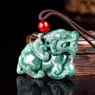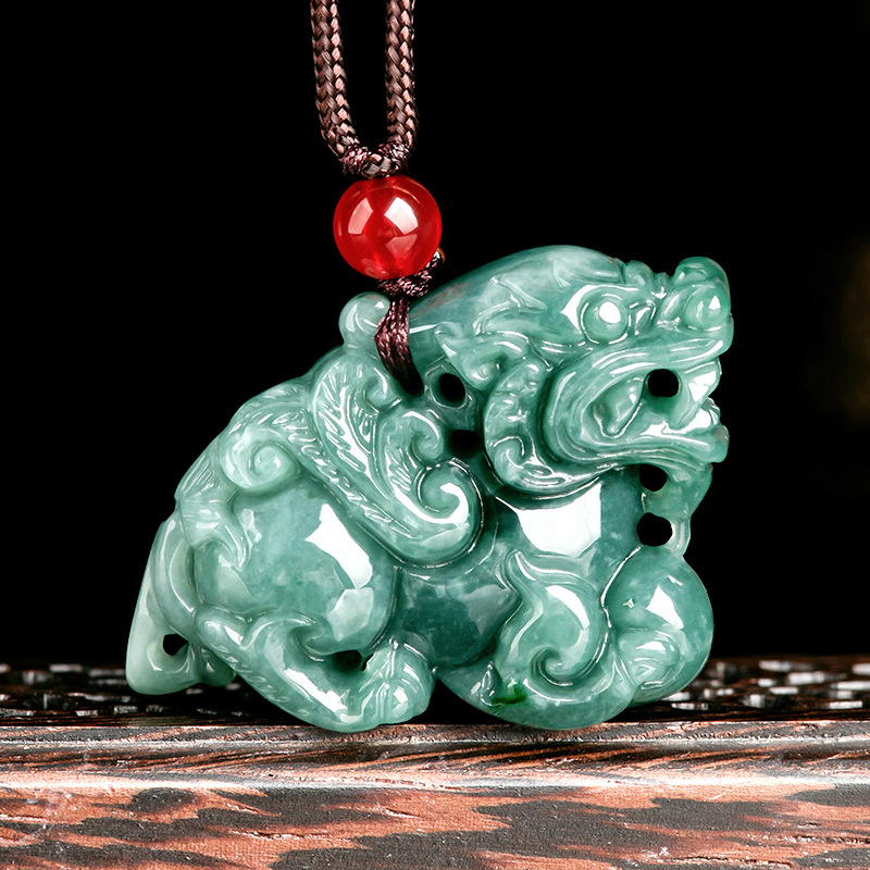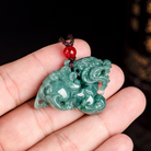 Real Grade A Natural Full Green Jade Jadeite Lucky Dragon Son Pixiu Pendant