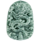 Real Grade A Natural Green Jade Jadeite Engraved Dragon Oblong 2 Sided Pendant Necklace