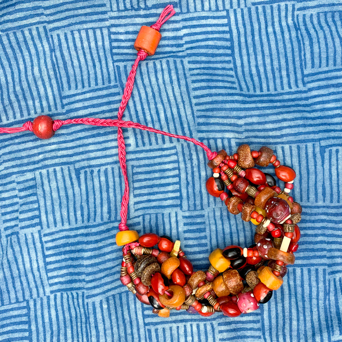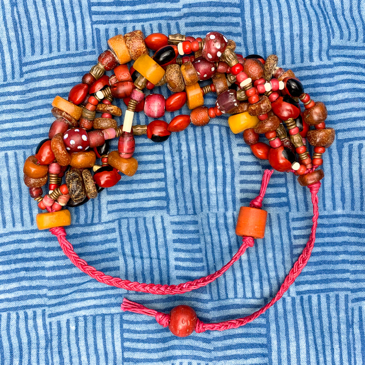- 18th Century Baltic Amber with 19th Century Venetian White Heart Trade Bead Multi Strand Tie Bracelet