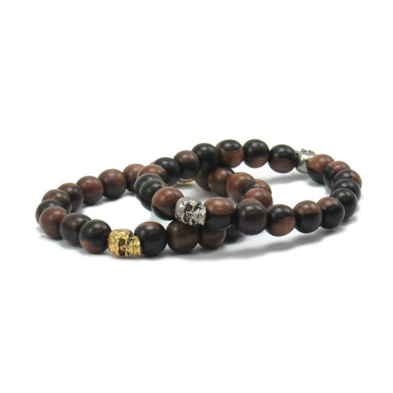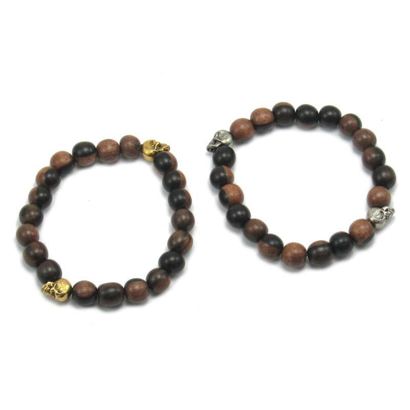Robles Wood Stretch Bracelet with Metal Skull Beads