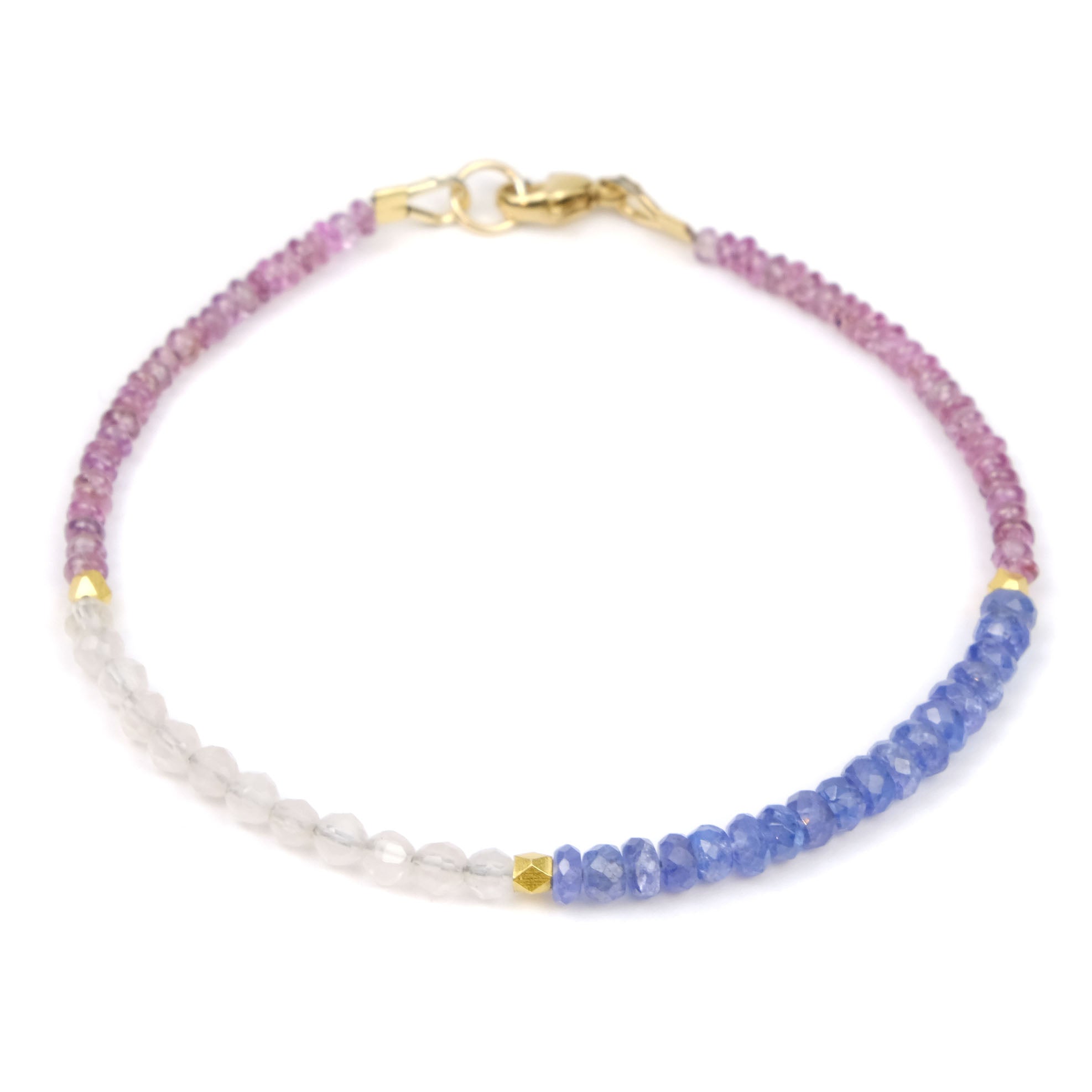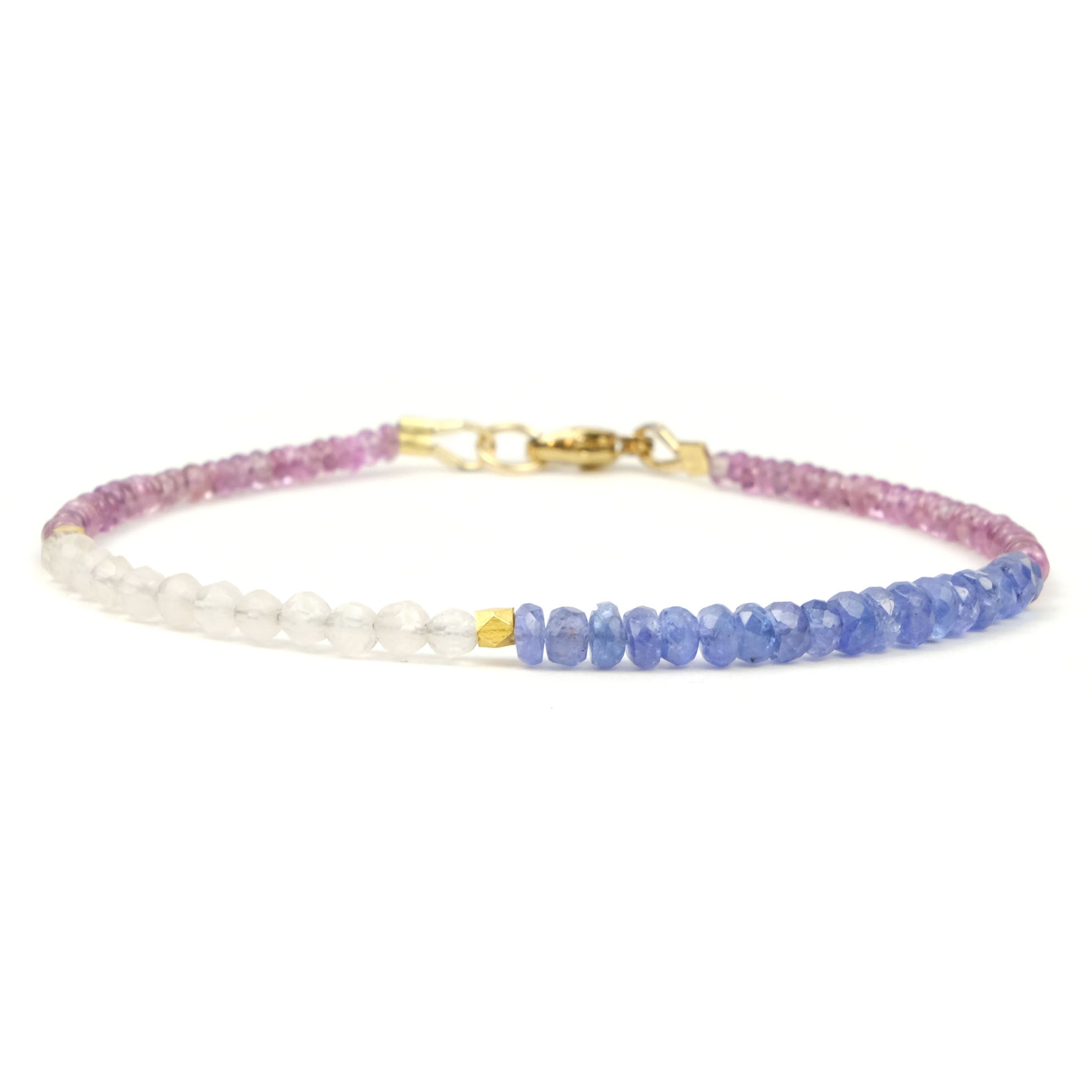 Sapphire + Moonstone + Tanzanite Bracelet with Gold Filled Trigger Clasp