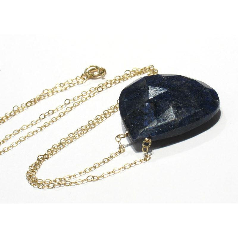 Sapphire Pendant Chain Necklace with Gold Filled Spring Clasp